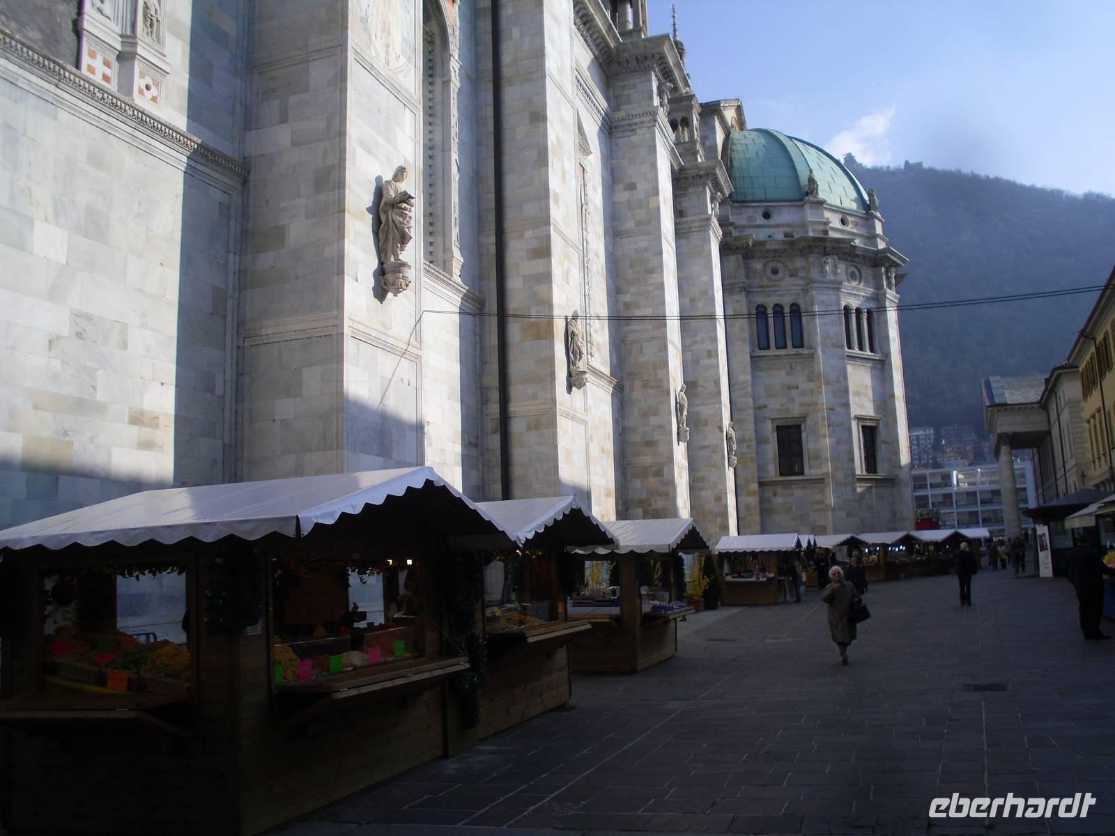 Nach einem reichhaltigen Frühstücksbuffet stand heute ein Ausflug zum Comer und Luganer See auf dem Programm. Zuerst besuchten wir Como mit seinem herrlichen Dom, dem wichtigsten Baudenkmal der Stadt. Er steht sehr zentral, nahe am Ufer des Comer Sees, im südlichen Abschnitt der Fußgängerzone. Die Ausgestaltung seiner Fassade ist bemerkenswert. Der Bau des Doms begann 1398 in der Zeit der Gotik. Obwohl die Fassade erst Ende des 15. Jahrhunderts - in der Renaissance - fertiggestellt wurde, zeigt sie deutlich gotische Züge. Die damalige enge politische und kulturelle Beziehung zu den Langobarden könnte die Comasker bewegt haben, beim Dombau Althergebrachtes zu bevorzugen. Das Wetter war heute herrlich und so stand auch einer Schifffahrt auf dem Comer See nichts im Wege - einfach toll! Weiter ging es dem Westufer des Comer Sees entlang nach Lugano, der größten Stadt im italienisch-sprachigen Teil der Schweiz. Die Stadt liegt in der Südschweiz am Luganersee und ist umgeben vom Monte Brè und dem Monte San Salvatore. Der Name der Stadt ist vom lateinischen Wort "lucus" ("heiliger Wald") abgeleitet. Gemäß archäologischen Funden war das Gebiet um Lugano bereits von Etruskern und Galliern besiedelt. Zwischen dem frühen 14. und 16. Jahrhundert war Lugano abwechslungsweise unter Mailänder, französischer und Schweizer Herrschaft. Seit 1513 gehört Lugano definitiv zur Schweiz. Als die Franzosen 1798 in die Schweiz einmarschierten schufen sie den Kanton Lugano, der 1803 in Kanton Tessin umbenannt wurde. Wir besuchten unter anderem die Kirche Santa Maria degli Angioli in Lugano. In dieser 1500 fertiggebauten Kirche findet man die schönsten Fresken der Meister der Renaissance. Die Darstellungen «Kreuzigung Christi», «Das Abendmahl» und «Die Muttergottes mit Kind» im Innern der Kirche wurden von Bernardino Luini, einem Schüler Da Vincis, gemalt. Am späten Nachmittag hatten wir noch einen Besuch im Schokoladenmuseum "Alprose" in Caslano geplant. Hier bekamen wir einen Einblick in die Schokoladenherstellung und konnten an einer Verkostung teilnehmen - übrigens sehr lecker! Das Abendessen nahmen wir heute im Grotto "Scalinata" in Tenero ein. Seit 1922 führt hier die Familie Balemi mit Begeisterung dieses typisch Tessiner Lokal, in welchem die Gäste mit den Spezialitäten der Region verwöhnt werden - heute gab es für uns unter anderem Kalbshaxe mit Reis.