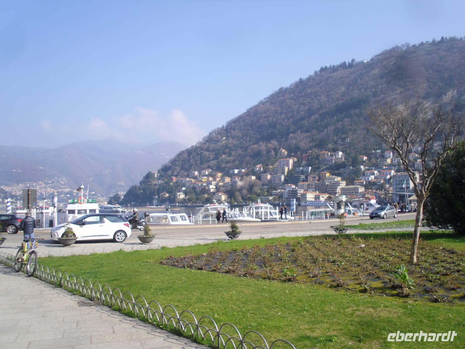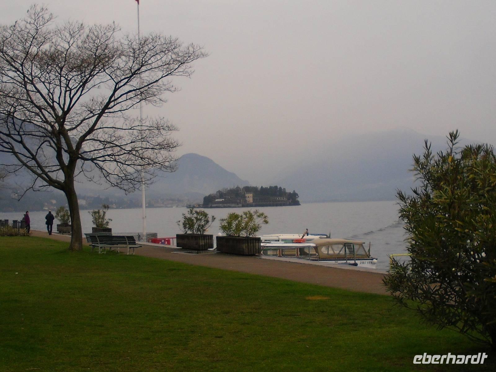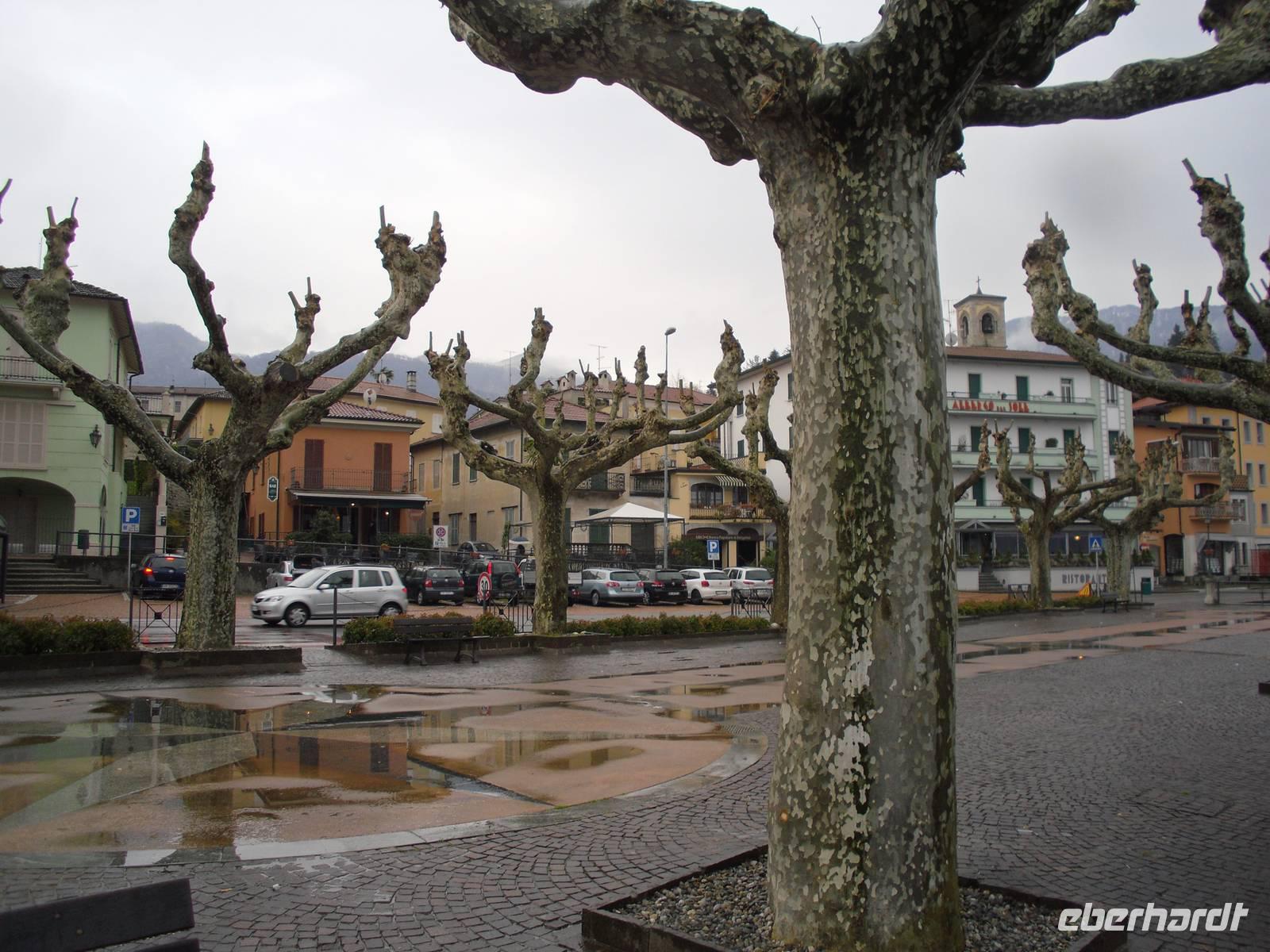 Leider machte uns am Morgen der Wettergott einen Strich durch die Rechnung - es regnete! Das sollte uns allerdings nicht davon abhalten, auf eine Rundfahrt um den Lago Maggiore aufzubrechen. Zuerst ging es entlang des Nordostufers bis nach Porto Valtravaglia, wo wir einen ersten kleinen Halt einlegten. Es ist ein schönes Städtchen direkt am Seeufer zwischen Luino und Laveno. Hier mussten wir feststellen, dass wir aufgrund einer Straßensperrung vorerst nicht am Seeufer weiter fahren konnten. Kein Problem, denn unsere Fahrt führte uns somit durch das herrliche Hinterland des Lago Maggiore - wir gelangten durch zwei wunderschöne Täler, das Val Travaglia und das Val Cuvia bis nach Laveno, wo wir letztendlich in der Hauptstadt des Fremdenverkehrs am östlichen Seeufer angekommen waren. Direkt am Auto-Fähranleger planten wir einen weiteren kurzen Aufenthalt, zum Glück ohne Regen! Weiter ging es über Sesto Calende auf die Westuferseite des Sees nach Arona, um das Denkmal des heiligen Carlo Borromeo zu besuchen. Der aus Arona stammende Carlo Borromeo war ein ganzer Kerl, als Familienoberhaupt vergrößerte er im 16. Jahrhundert das Vermögen seines Clans zwischen dem Lago Maggiore und der östlichen Lombardei. Als Kardinal und Erzbischof von Mailand spielte er eine Hauptrolle bei der Gegenreformation und als Held setzte er sein Leben bei der großen Pest 1576 aufs Spiel, als er den Kontakt mit den Kranken nicht scheute. Für all das zusammen wurde er von der römischen Kirche heiliggesprochen. Die Stadt Arona baute ihm daraufhin ein Denkmal, eine Kolossalstatue. Die Statue war vor ihrer Fertigstellung im Jahr 1698 bis zum Bau der Freiheitsstatue in New York im Jahr 1886 sogar für fast 200 Jahre die größte Statue der Welt! Am Nachmittag kamen wir in Stresa an, um dort bei einem ausgiebigen Spaziergang in der Altstadt oder entlang der Seepromenade ein bischen vom bezaubernden Flair der sogenannten "Perle des Lago Maggiore" einzufangen. Die einmalige Landschaft zog schon früh Dichter und Maler in seinen Bann. Namen wie Ernest Hemingway und Charles Dickens verhalfen dem Ort zu weltweitem Ruhm. Von Stresa aus hat man übrigens auch einen wunderbaren Blick über den Borromäischen Golf mit seinen Inseln. Am späten Nachmittag fuhren wir entlang der Westuferstraße des Lago Maggiores bzw. über Verbania und Cannobio nach Ascona zurück.