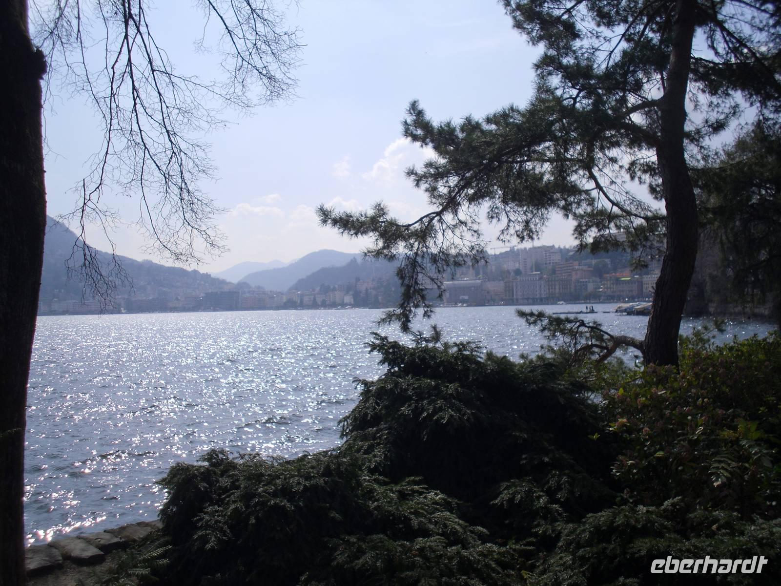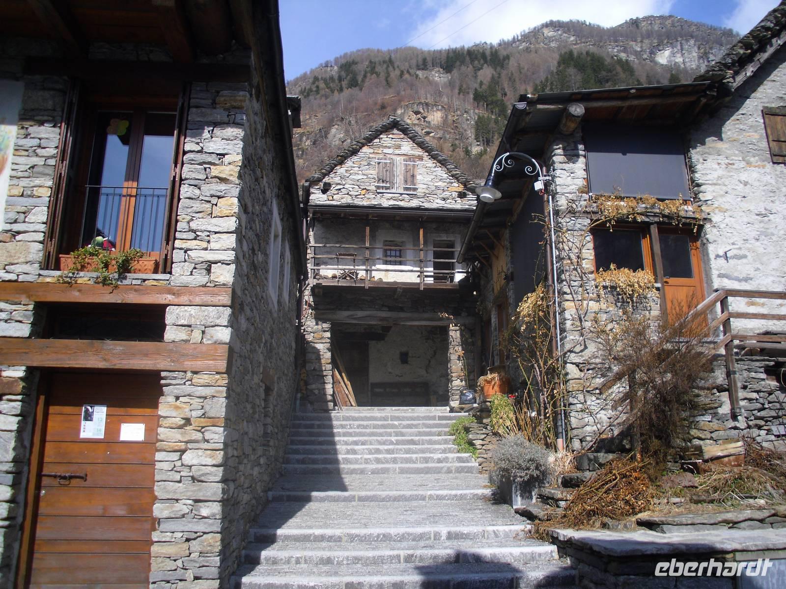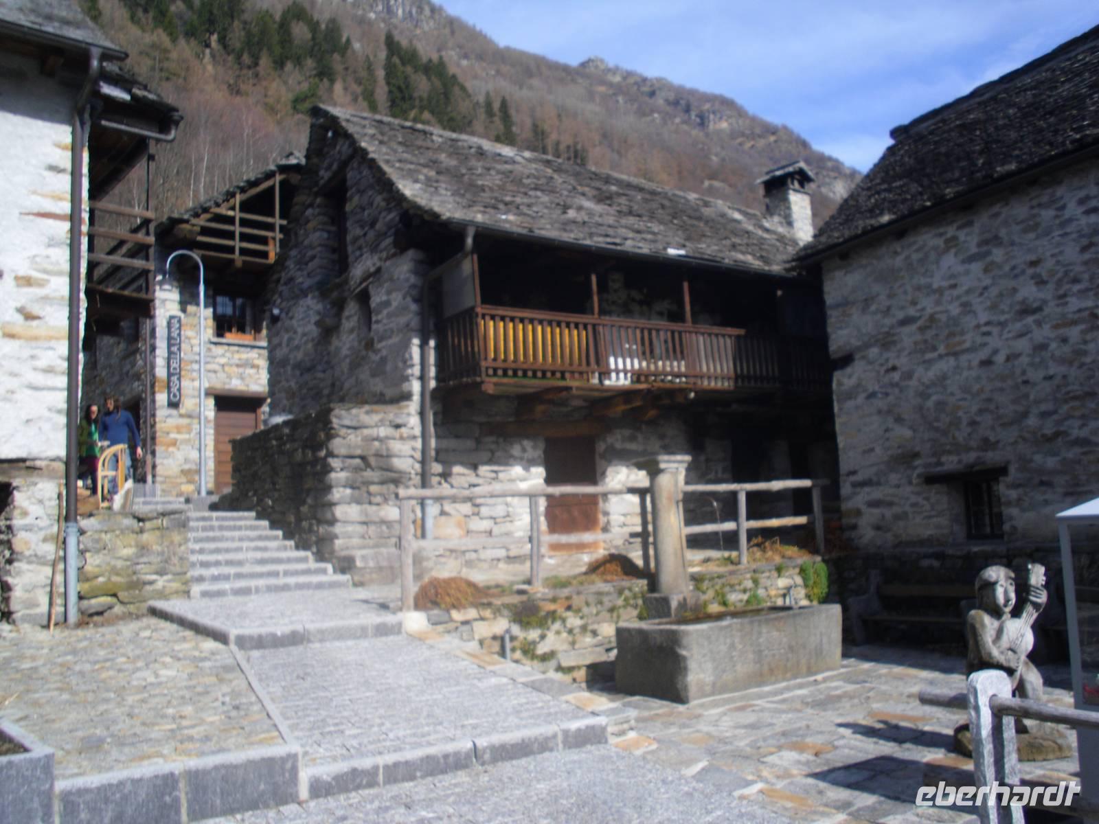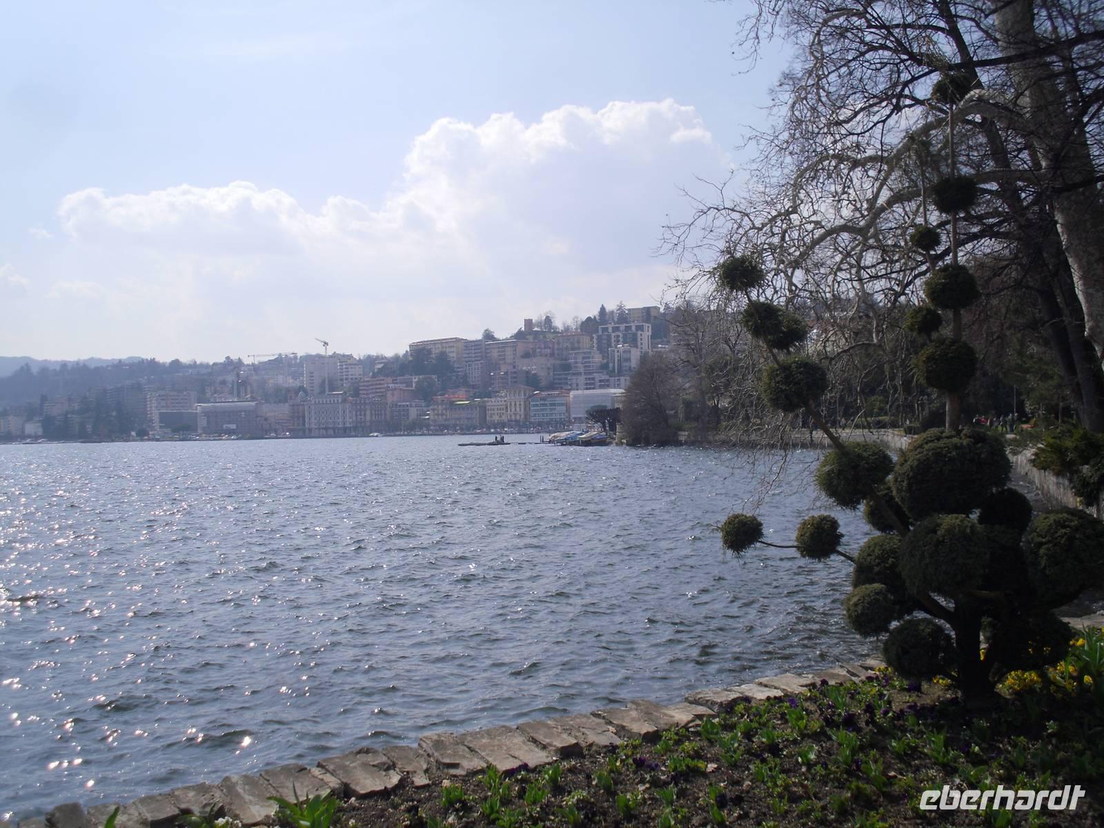 Am heutigen Vormittag stand ein weiterer Höhepunkt unserer Traumreise an. Der Landschaftswechsel auf dieser kurzen Strecke ins Verzascatal hinein ist einfach unglaublich! Von den lieblichen Ufern des Lago Maggiore steigt die Straße, zuerst zwischen herrlichen Weinbergen bis hinauf zum Verzasca-Stausee, welcher den höchsten Staudamm Europas aufweist (220 m). Von dort, dem See entlang fahrend, erreichten wir Vogorno. Gegenüber, hoch am Hang gelegen, sahen wir Corippo, das kleine typische Dorf, das infolge seiner architektonischen Einheit unter Denkmalschutz gestellt wurde. Auf der Strecke zwischen Corippo und Lavertezzo erfreute uns immer wieder der Anblick des Verzasca-Flusses, der hier seine ganze Schönheit entfaltet. Zwischen steilen, von der Erosionskraft polierten Steinen, die wunderbares Geäder aufweisen, strömt der Fluss in seiner unbeschreiblich grünen Farbe, die dem Tal den Namen gegeben hat (Verzasca, abgeleitet von "verde acqua" - grünes Wasser). Imposante, über 2.000 Meter hohe Berge umrahmen das ganze Tal. Typisch sind die Verzasca-Häuser aus grauem Stein mit weißen Umrandungen an den Fenstern und Steinplattendächern. Die vielen Kapellen entlang der Wege, zeugen vom tiefreligiösen Glauben der Talbewohner. Sehr bemerkenswert im Tal ist die doppelwölbige Brücke "Ponte dei Salti", wo wir einen Fotostopp einlegten. Schließlich erreichten wir den Ort Sonogno, am Ende des Tales gelegen. Hier gab es im Anschluss an einen kleinen Rundgang ein fürstliches Picknick für alle Gäste - natürlich im Namen von "Eberhardt TRAVEL", na dann "Guten Appetit!" Wir ließen uns verschiedene Spezialitäten der Region - wie Käse, Salami und Schinken - schmecken, dazu gab es frisch gebackenes Brot und selbstverständlich auch Wein! Gut gelaunt und gestärkt kamen wir nach diesem ausgiebigen Mittagsimbiss in Locarno an - die Stadt erfreut sich außergewöhnlich günstiger klimatischer Bedingungen. Es liegt in der Region mit den meisten Sonnenstunden der Schweiz. Die durchschnittliche Jahrestemperatur liegt bei 11 Grad Celsius, außerdem dämpft der nahe See die Temperaturschwankungen und trägt zu einer erhöhten Luftfeuchtigkeit bei. Das Ausbleiben längerer Frostzeiten und der saure Boden sind weitere Faktoren, die hier zum kräftigen Gedeihen einer einmaligen, spontan wachsenden, dekorativen und variantenreichen Flora beitragen. Viele Gärten der Villen und Hotels aus dem 19. Jahrhundert sind erhalten geblieben. Sie wurden dank reichen Leuten angelegt, die sich hier niedergelassen haben, begünstigt durch die beneidenswerten klimatischen Bedingungen. Wir besuchten den Kamelienpark von Locarno, eine herrliche Parkanlage direkt am See, wo man interessante und besonders große Kameliensträucher bewundern kann, die hier ideale Wachstumsvoraussetzungen haben. Die meisten Kamelienarten blühten gerade jetzt im April, was natürlich ein besonderes Glück für uns war.