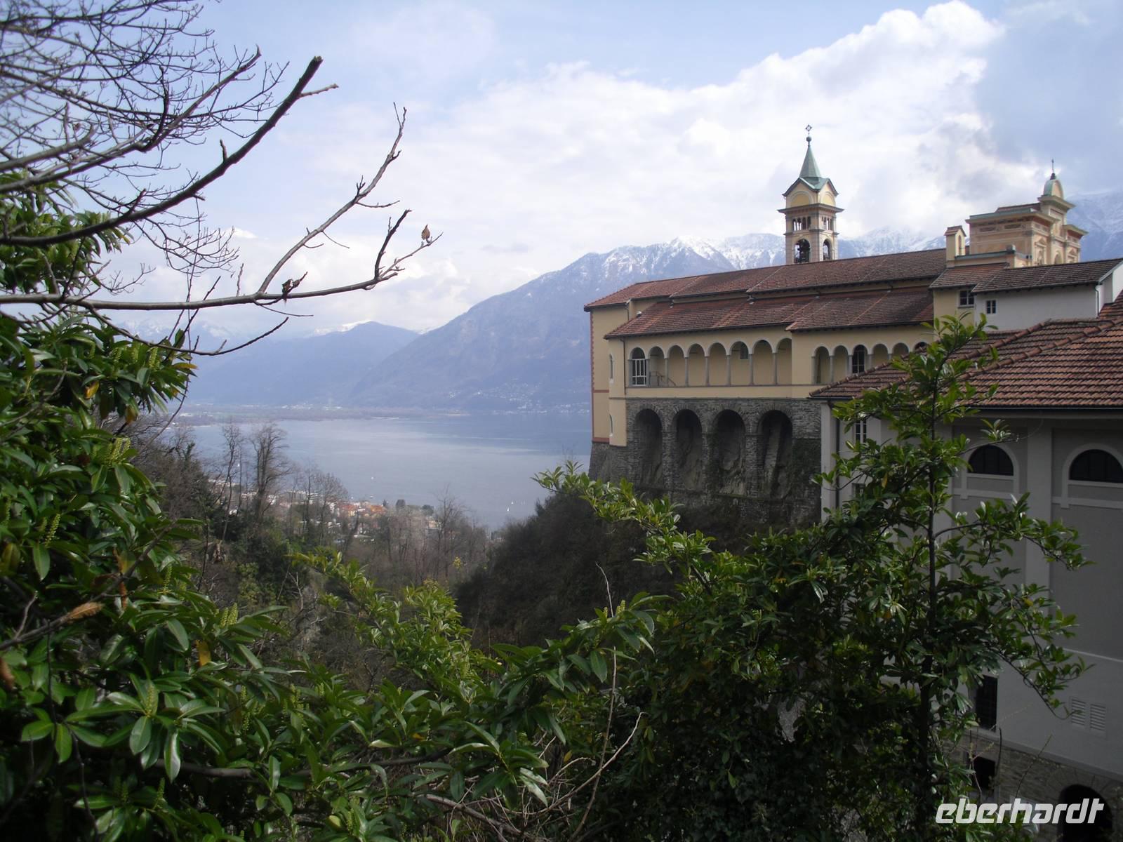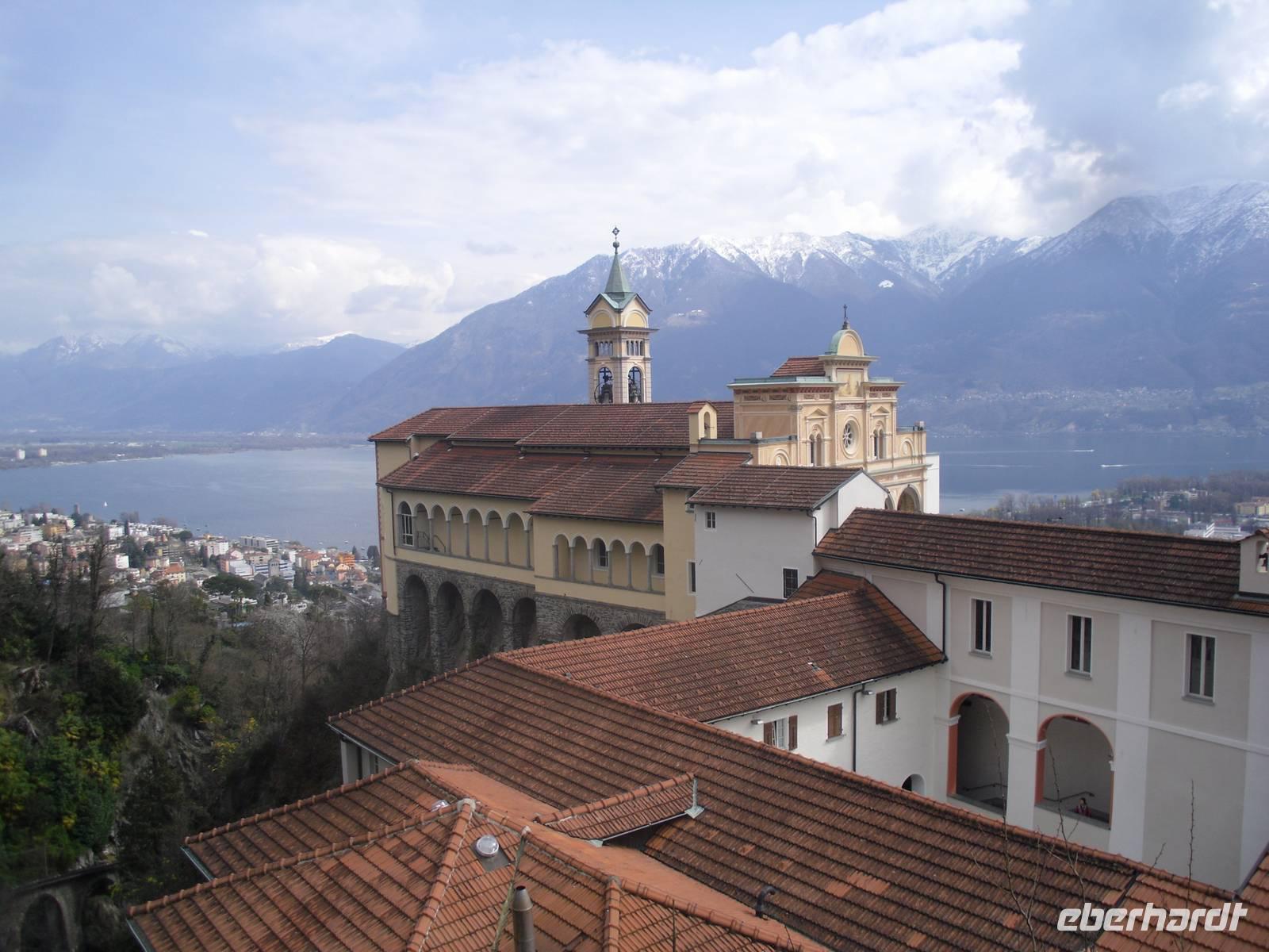 Den weiteren Nachmittag verbrachten wir im Zentrum Locarnos und bummelten durch die Stadt. Die meisten unserer Gäste fuhren mit einer Standseilbahn zur Wallfahrtskirche Madonna del Sasso. Diese schöne Kirche thront weithin sichtbar 150 Meter über Locarno. Sie gilt als Wahrzeichen der Stadt - hier soll einst einem Franziskanermönch die Mutter Gottes erschienen sein. Ursprünglich eine schlichte Kapelle aus dem Jahre 1487, entstand im 16. Jahrhundert die prächtige Kirche.