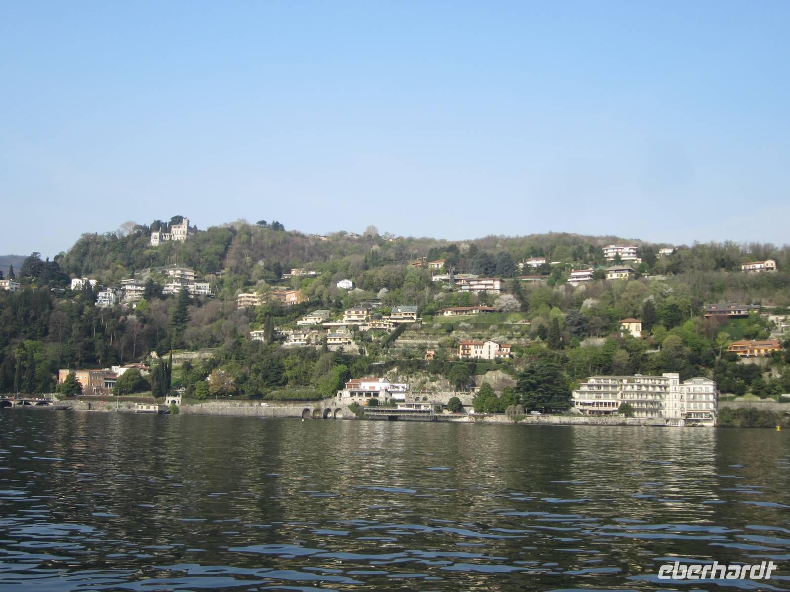 Unsere Fahrt um den See, der rund 20% zur Schweiz und 80% zu Italien gehört, beginnt am Ostufer. Man liest oft, dass es sich um die magere Seite des Sees handelt. Die Westseite ist das "üppige" Ufer.Am Ostufer hat der Mensch weniger in die Natur eingegriffen und somit empfindet man hier die um so stärker den Zauber der ursprünglichen Landschaft. Wir fahren den Grenzübergang in Ponte Tresa und weiter entlang der SS 394 nach Laveno. Nach einer Pause setzen wir unsere Fahrt fort. Entlang des Lago Maggiore fahren wir über Ispra nach Arona (SP 69). Hier lassen wir uns eine Sehenswürdigkeit nicht entgehen. Die Kolossalstatur des heiligen Karl Borromäus (Mailänder Erzbischof). Die Statur soll die größte begehbare Statur Europas sein. Das Denkmal ist einzigartig und der Ausblick auf den See herrlich. Weiter führt uns unsere Fahrt entlang der SP 33 nach Stresa.