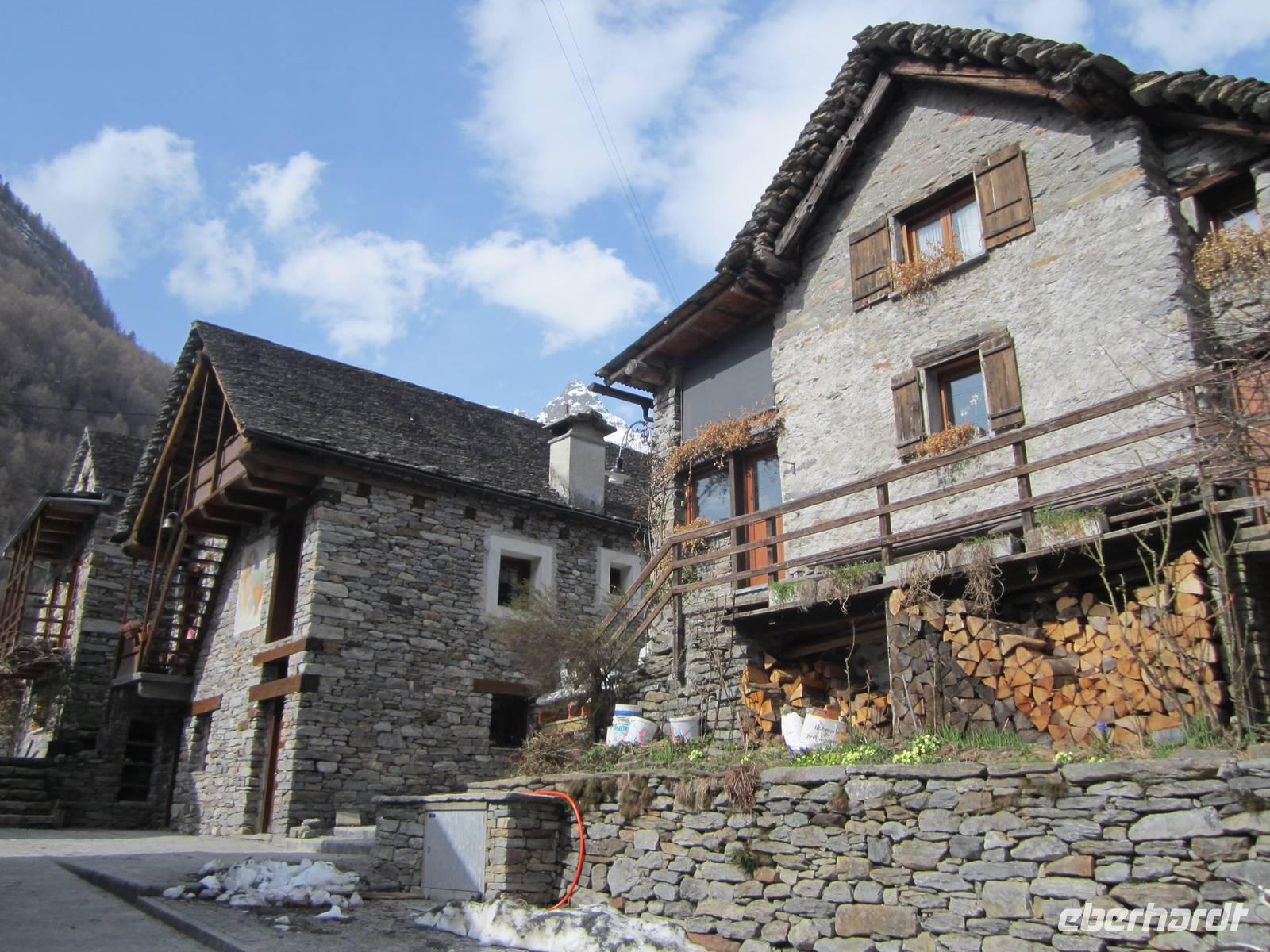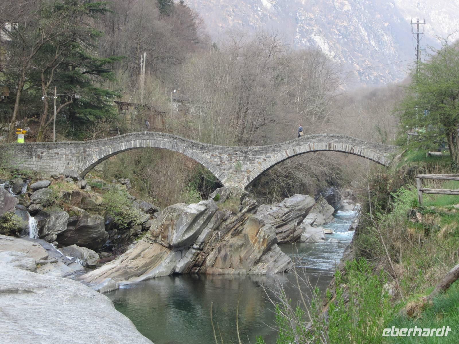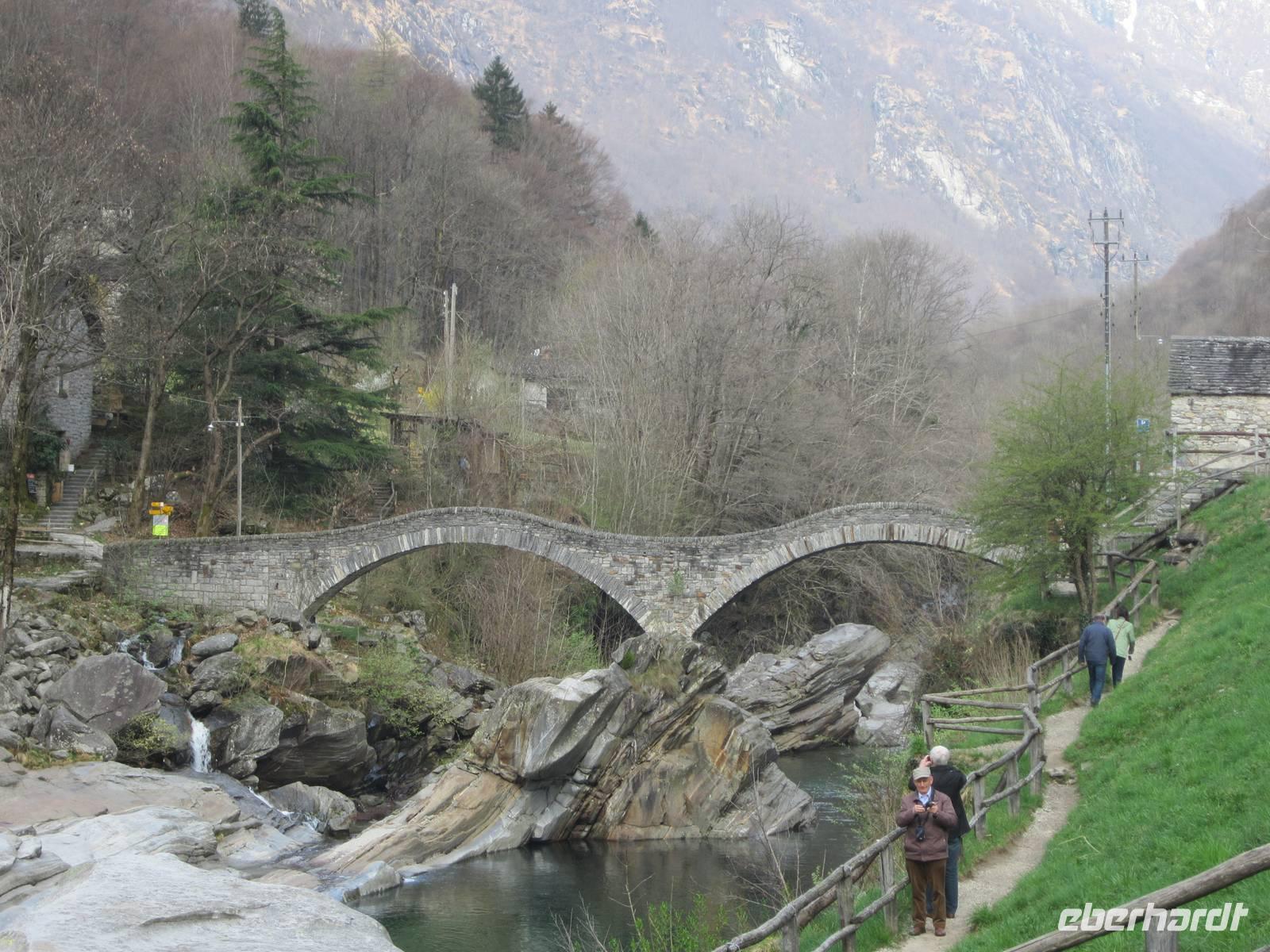 Locarno und das Verzascatal stehen heute auf dem Programm. Wir drehen das Programm und fahren bereits am frühen Morgen in das Tal. Wir möchten es möglichst für uns allein. Es gelingt uns. Die Straße ist frei. Das Valle Verzasca ist ein wildes Tal mit steilen Hängen und unzähligen Wasserfällen. Die Verzascahäuser (Rustici) aus grauem Stein mit weißen Umrandungen an den Fenstern und schweren Steinplattendächern. Die vielen Kapellen zeugen vom religiösen Glauben der Talbewohner. Einige Fotostopps planen wir, um die bezaubernden Momente festzuhalten. Wie z. B. an der Staumauer des Lago di Vogorno. James Bond war es, der im Film „Golden Eye" sich 220 m in die Tiefe stürzte und wer es möchte, kann es ihm nachtun. Ein Muss ist auch ein Fotostopp an der "Römerbrücke" Ponte die Salti in Lavertezzo, aber auch der Fluss Verzasca mit seinen grünem Wasser und den blankgeschliffenen Steinen. In Sonogno, am Ende des Tals haben wir eine längere Pause geplant. Einen Blick auf den Ort haben wir auf dem Gruppenbild. Viele heimische Produkte werden verkauft und geben einen Einblick in die Kultur des Tals. Wir probieren die Salami und Baguette als typische Produkte des Tals. Vielen Dank an die Firma für diese Überraschung.
