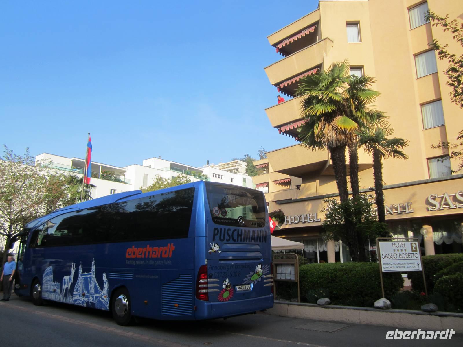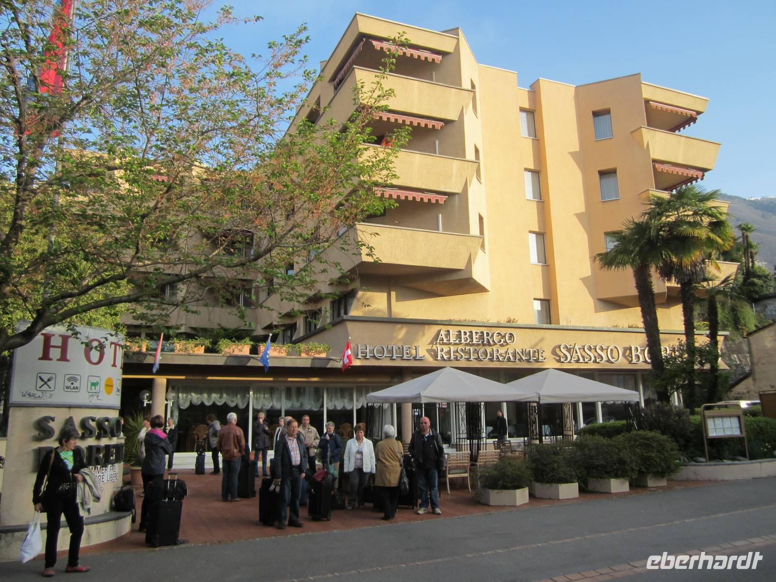 Weiter geht es durch Graubünden an Chur vorbei zum Pass San Bernardino. Auf dem Weg zum Pass haben wir eine herrliche Sicht auf die Berge und erreichen bei guten Straßenverhältnissen den San Bernardino Tunnel, der 6,6 km lang ist. Damit gelangen wir nicht nur in den „Süden", sondern haben mit durchqueren des Bergmassivs auch die Sprachgrenze Deutsch/Italienisch und auch eine Wetterscheide und Wasserscheide, hinter uns gelassen. Wir fahren (noch in Graubünden) die beeindruckende Passstraße in den Kanton Tessin (Ticino). Dabei haben wir einen Blick auf Bellinzona mit seinen drei Trutzburgen und der gewaltigen Murata (UNESCO-Weltkulturerbe). Dieser Anblick lässt erkennen, welch strategische Bedeutung die jetzige Hauptstadt des Tessin hatte. Einen ersten Blick haben wir auch noch auf Locarno, bevor wir in Ascona am Lago Maggiore gegen 18.30 Uhr ankommen. In unserem Hotel „Sasso Boretto" werden mit einem Apéro herzlich begrüßt. Anschließend probieren wir die gute Küche und lassen den Abend ganz entspannt ausklingen.