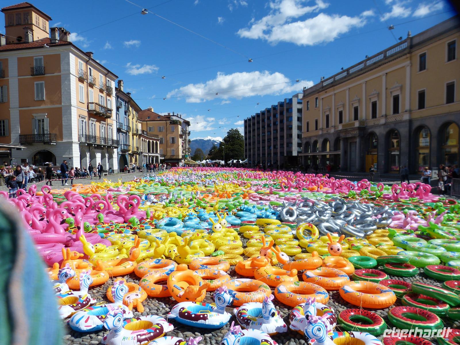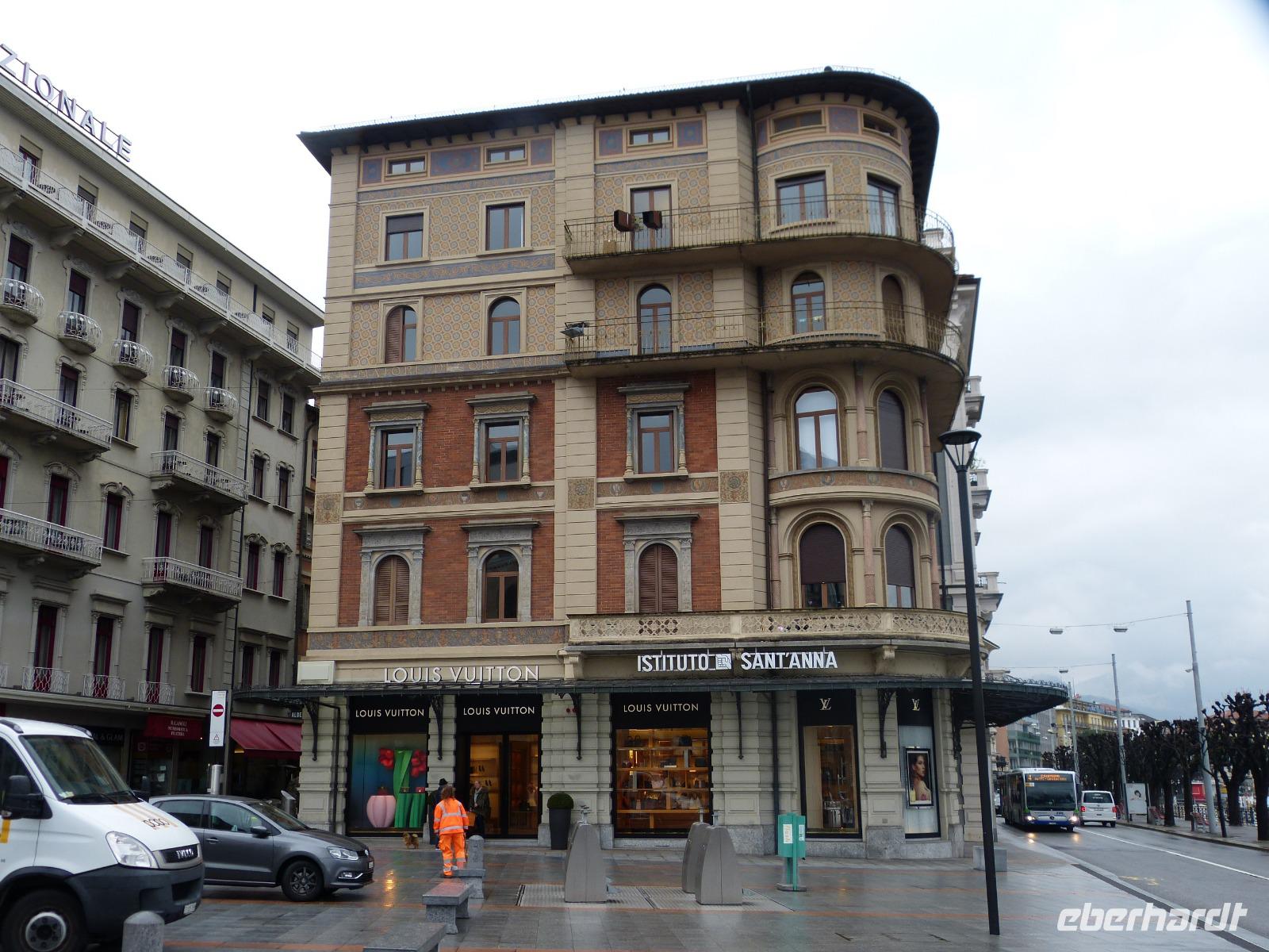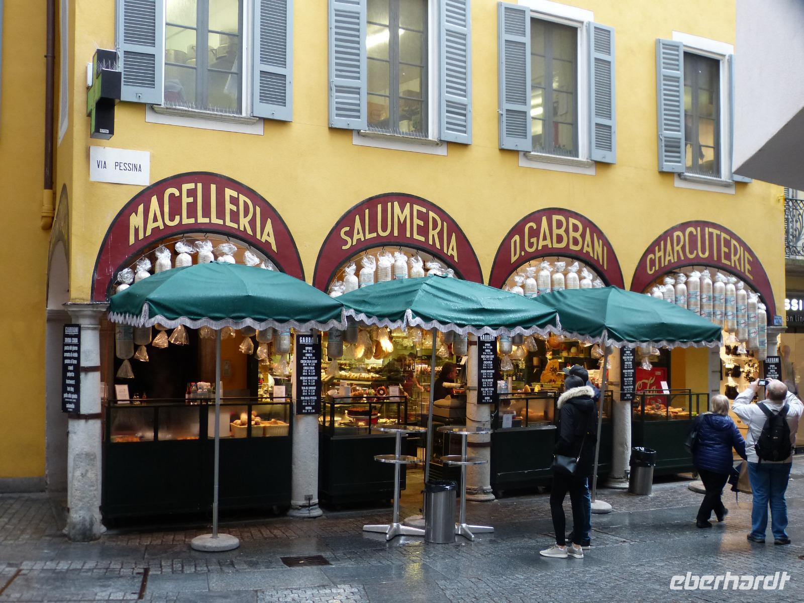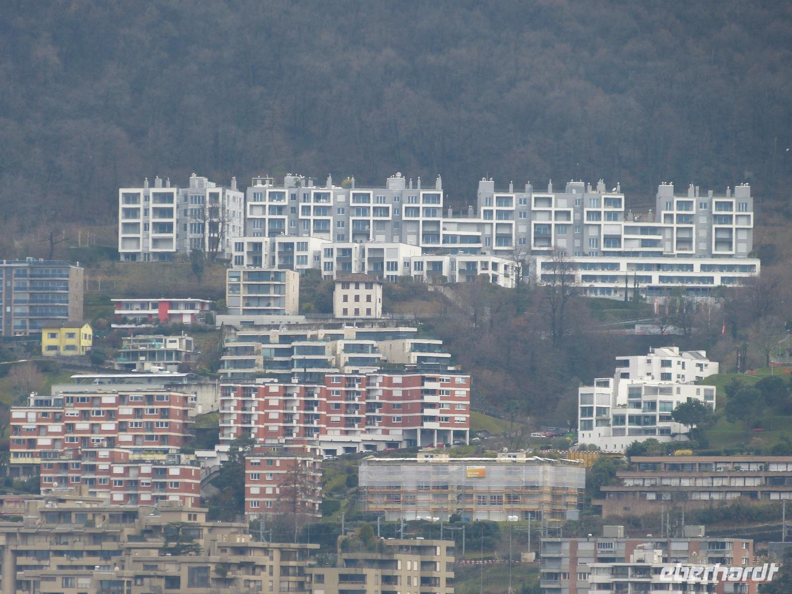 Unsere Stadtführerin führte uns dann zu Fuß durch ihre Stadt, vorbei an farbenfrohen Gebäuden der heimischen Architektur aber auch an modernen Glaspalästen, die den architektonischen Unterschied nicht größer werden lassen kann. Immer wieder wird auf den Stararchitekten von Tessin -Mario Botta- hingewiesen, der seine Handschrift an vielen Gebäuden hinterlassen hat.