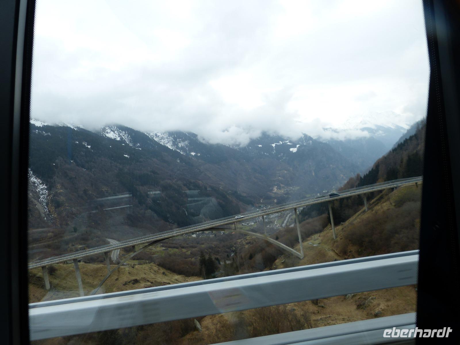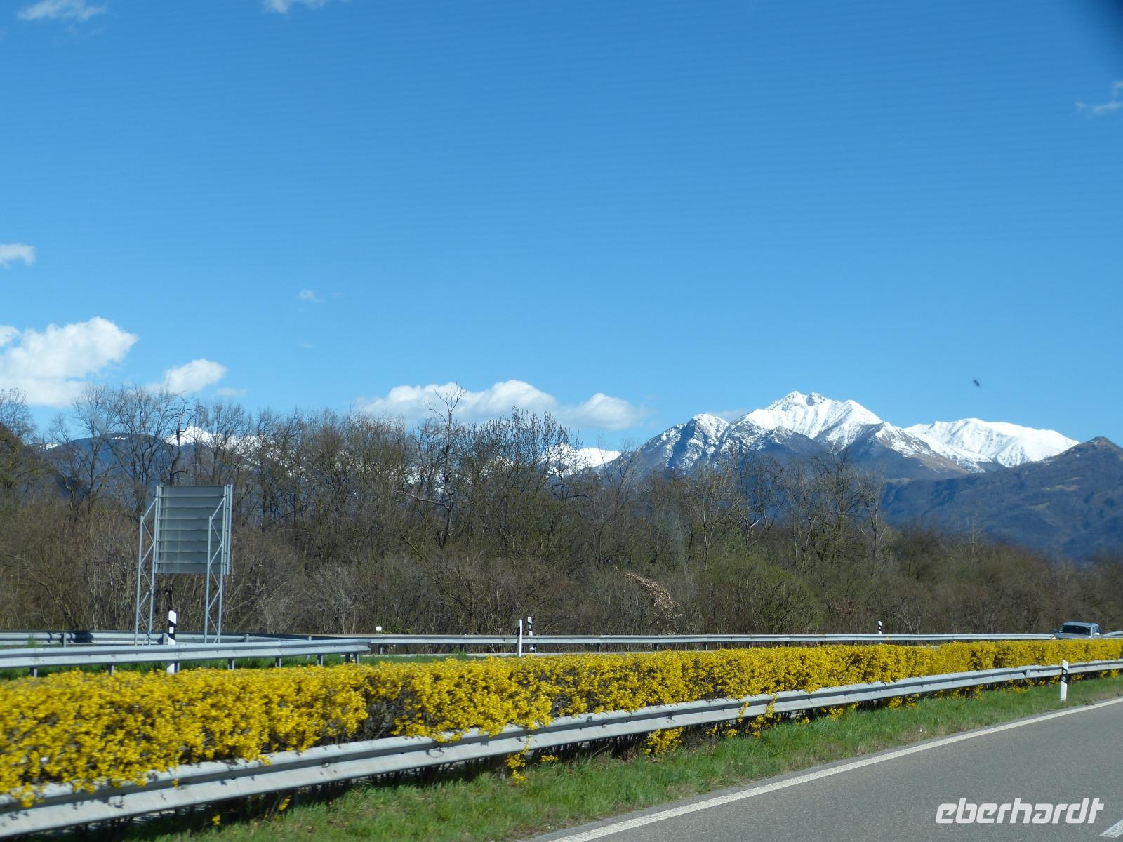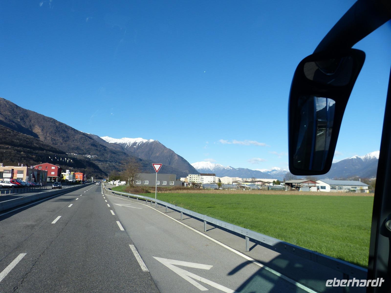 Alle Mitreisenden waren 8.00 Uhr pünktlich am Bus. Die Koffer wurden verladen und wir fuhren Richtung Heimat. Vorbei an den 3 Burgen in Bellinzona, die wir heute im Sonnenschein sehen konnten. Auf der Passtrasse zum San Bernardino Tunnel machten wir noch einmal halt um schöne Abschlussbilder zu machen.