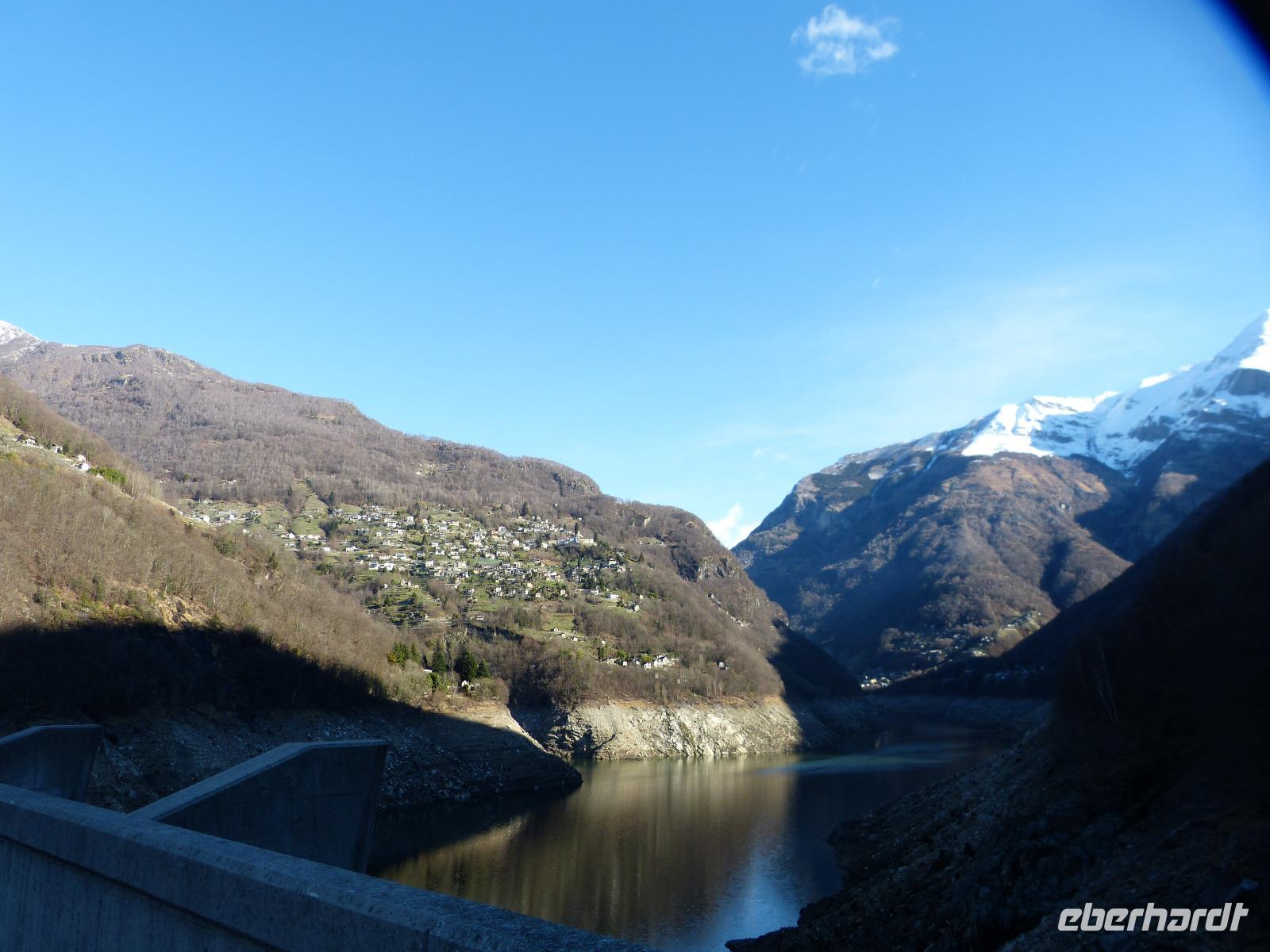 Schon am frühen Morgen, gleich nach dem leckeren Frühstück fuhren wir mit unserem sicheren und ruhigen Fahrer Andre in das Verzascatal. Schon am Talanfang beeindruckten uns die steilen Hänge und engen Schluchten. Da der Autoverkehr noch sehr gering war, konnten uns die steilen Kurven und engen Straßen nicht viel anhaben. Unser erster Halt war an der Staumauer des Lago di Vogorno, von der einst James Bond hinuntersprang. Leider ist im Stausee derzeit sehr wenig Waser. Unser nächster Stopp war an der imposanten Römerbrücke in Lavertezzo. Ein Motiv, welches von vielen Gästen zum Fotografieren genutzt wurde. Leider ist auch hier der Wasserstand sehr niedrig, sodass wir keine wagemutigen Brückenspringer sehen konnten. Das grün schimmernde Wasser und die blank geschliffenen Steine beeindruckten uns aber sehr.