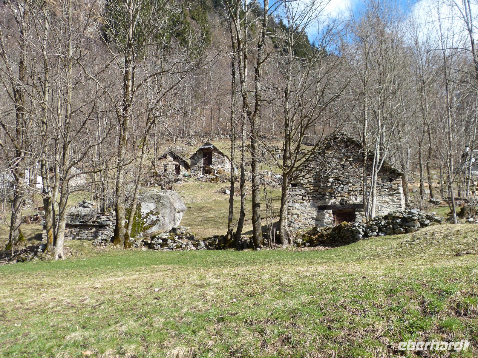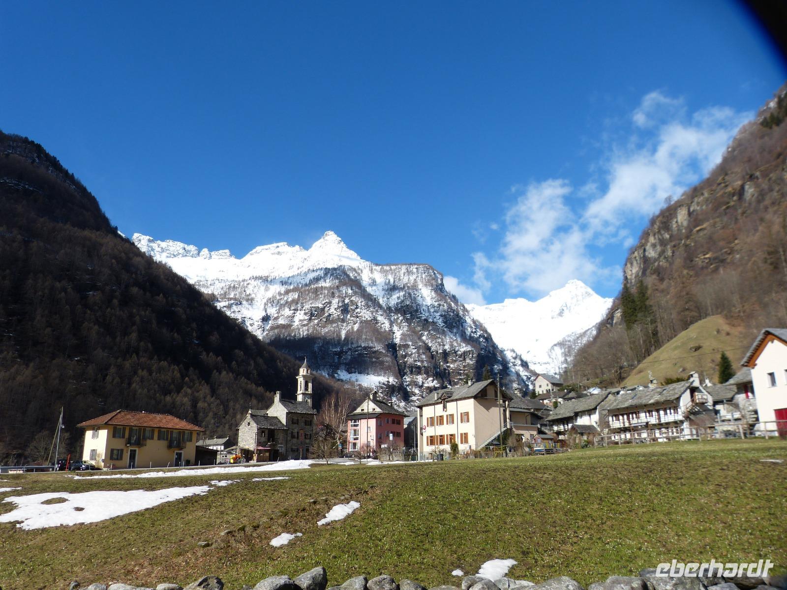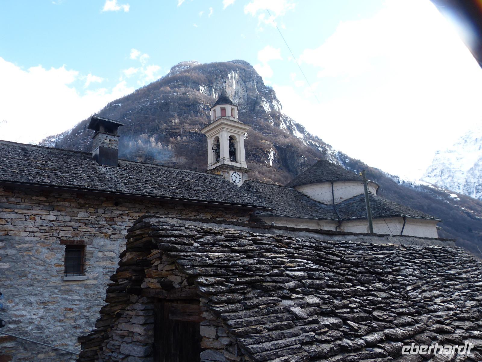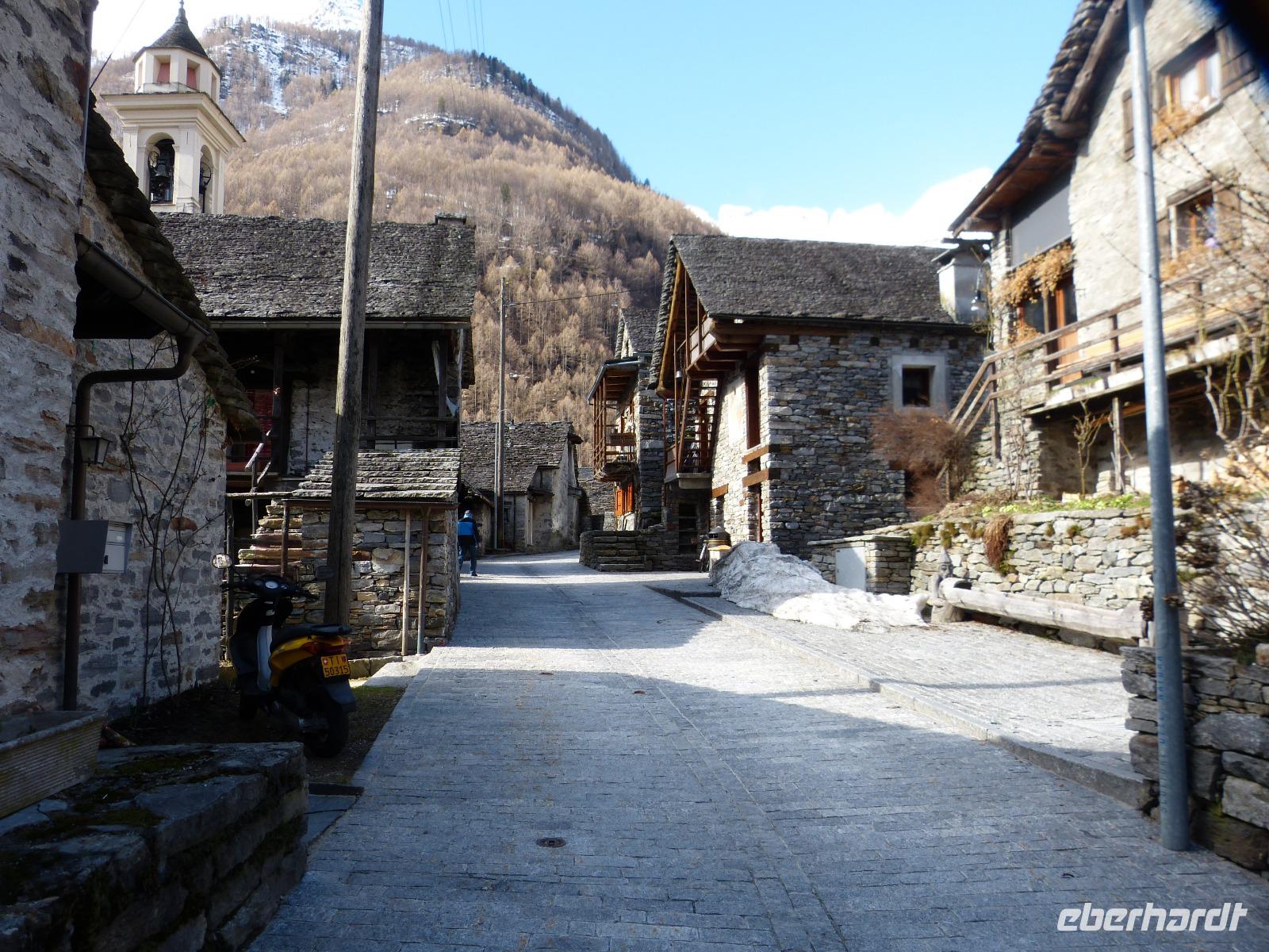 Am Ende des Tales, in Sonogno, machten wir eine größere Pause um diesen verträumten und romantischen Ort mit seinen kleinen Gassen und den typischen Häusern (Rustico) zu bestaunen. Die grauen Steine der Fassade, und die schweren Steinplatten als Dachabdeckung imponierten uns sehr.