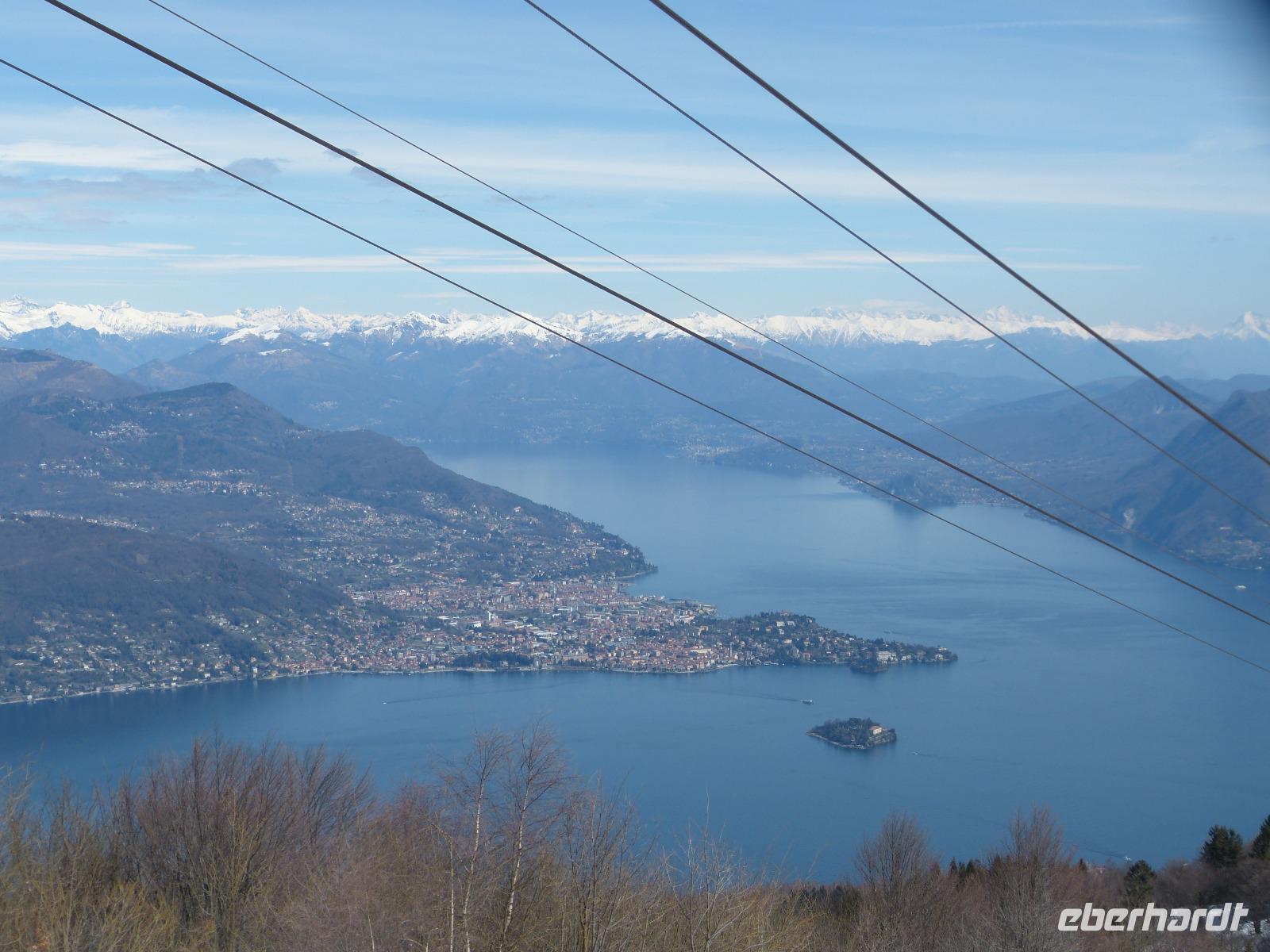 Heute ging es nach dem Frühstück voller Erwartung nach Locarno. Die Schweiz ist für ihre Eisenbahnstrecken, Tunnel und Viadukte bekannt. Wir wollten das am heutigen Tag persönlich erleben und mit der Centovalli-Bahn von Locarno nach Domodossola fahren. Auf Grund eines großen Felsabsturzes auf dieser Strecke am Vortag war das gesamte Tal gesperrt. Wir mussten schnell eine Alternative finden. Also fuhren wir mit unserem Bus nach Stresa. Die Fahrt ging unmittelbar am Lago Maggiore entlang. Die Straße war eng und sehr kurvenreich, sodass unser Fahrer oft anhalten musste um entgegenkommende Autos , Busse und Campingfahrzeuge vorbeizulassen. Nach 1,5 Std. hatten wir unser Ziel bei sehr schönem Wetter erreicht. Einige Gäste erkundeten die Stadt Stresa. Ich fuhr mit dem anderen Teil der Gruppe mit der Seilbahn auf den Mottarone, dem Hausberg von Stresa. Von da oben hatten wir einen herrlichen Blick auf den Lago Maggiore und die umliegenden Berge und Seen. Ein schöner Blick bot sich auch auf die Inseln im See. Aber auch die Schneeliebhaber kamen auf ihre Kosten, denn davon gab es auf 1491m noch genug.