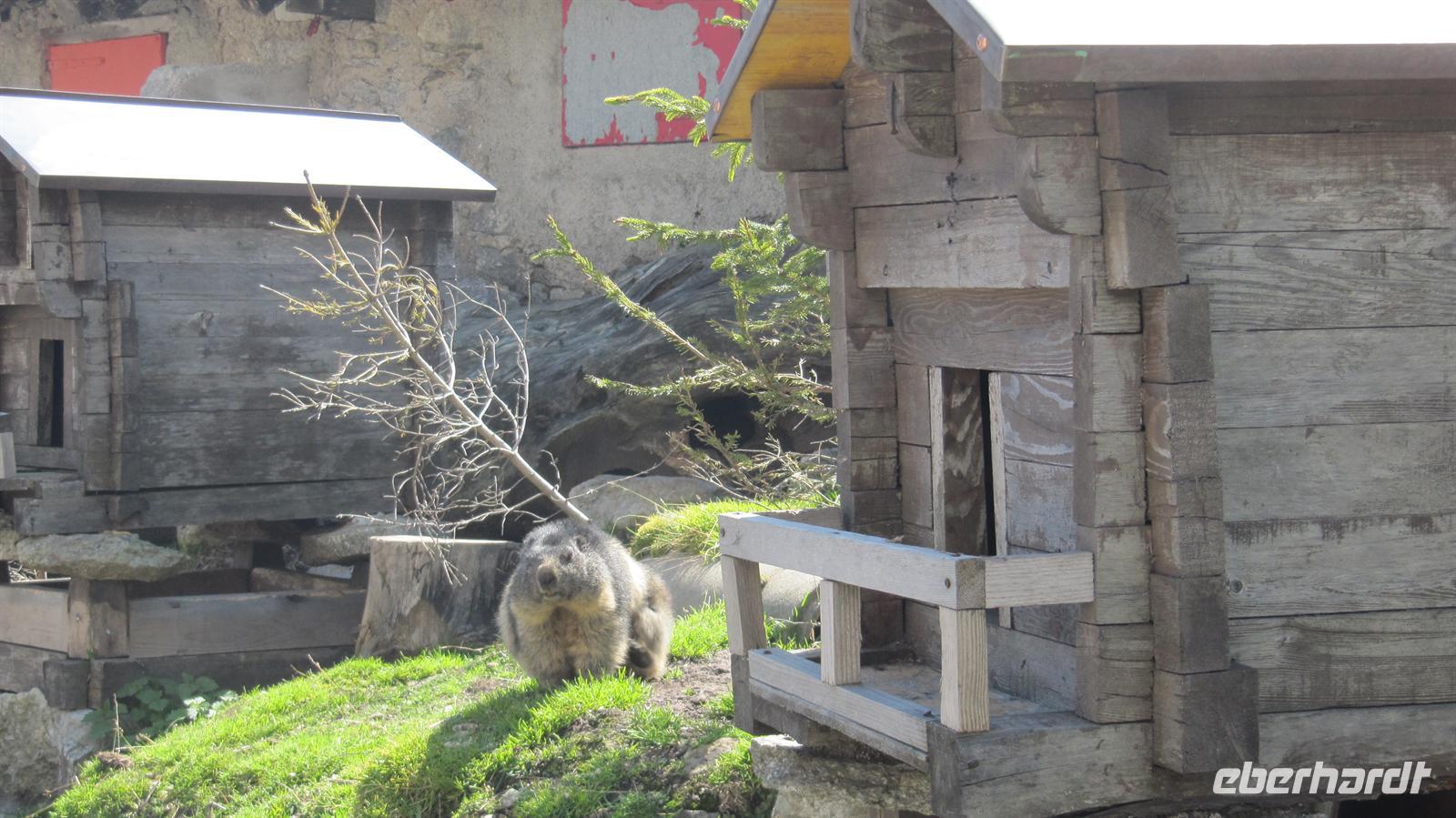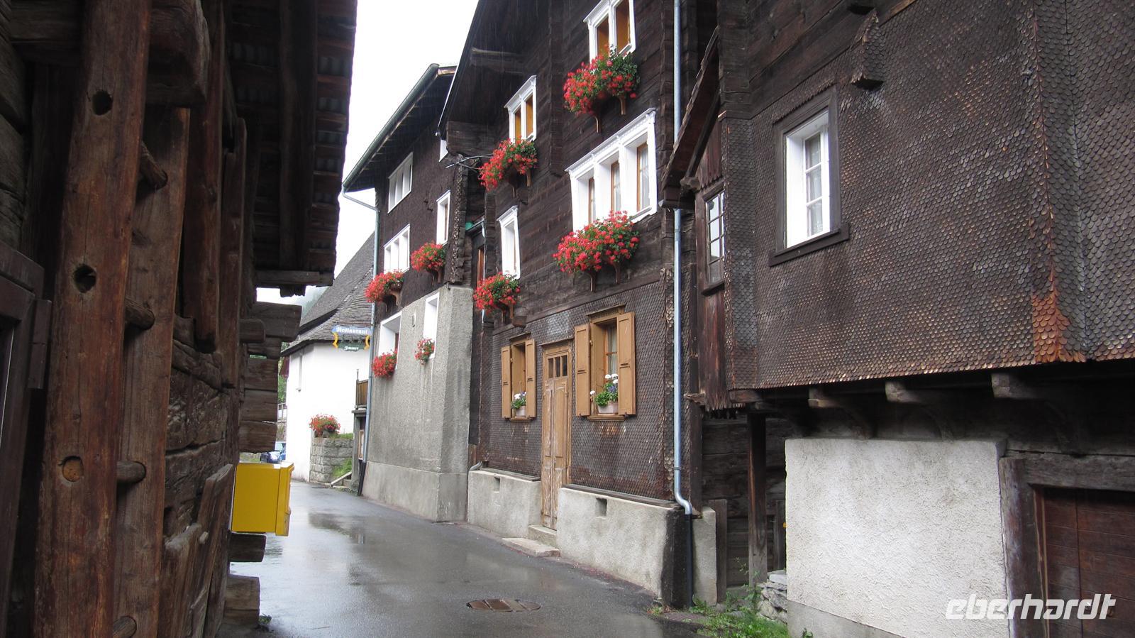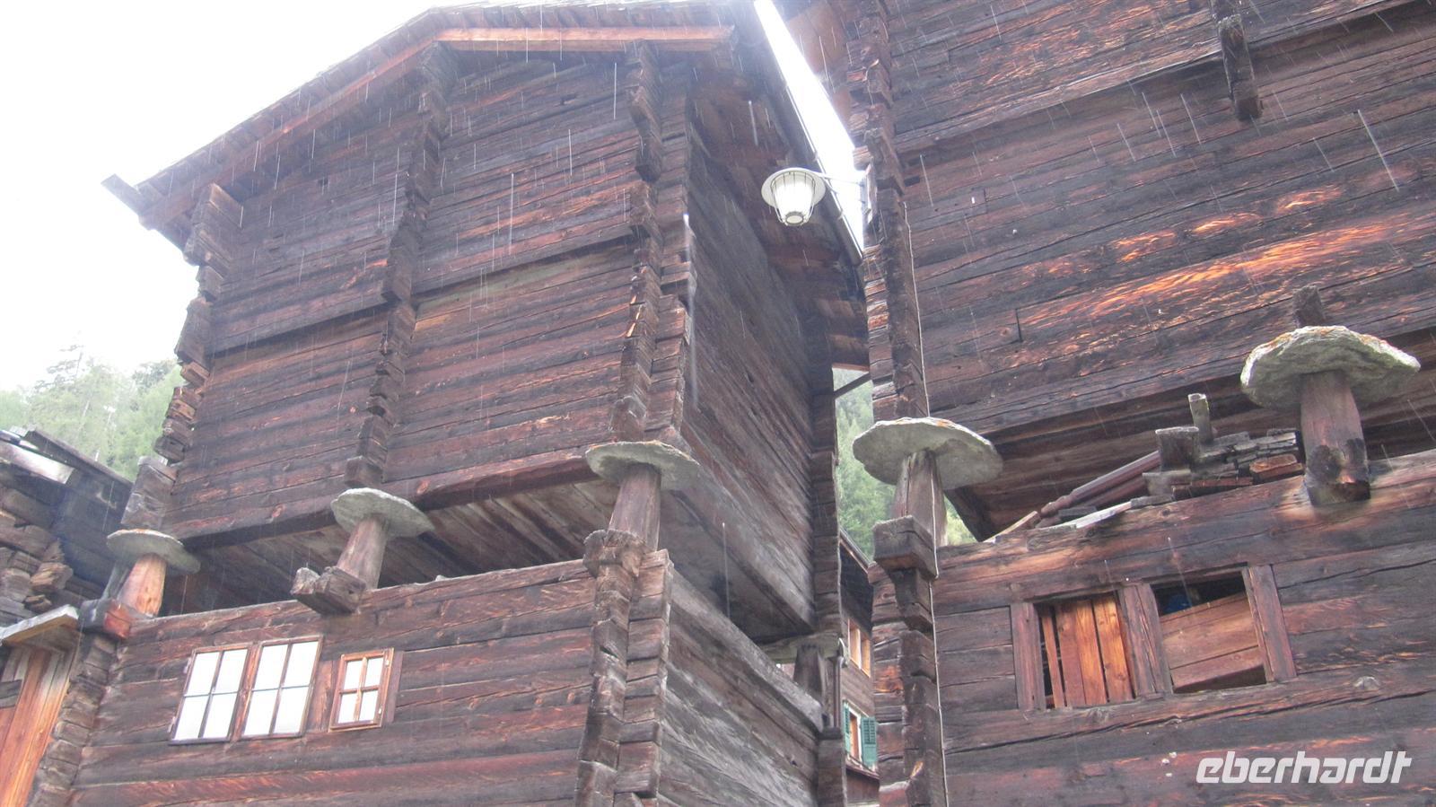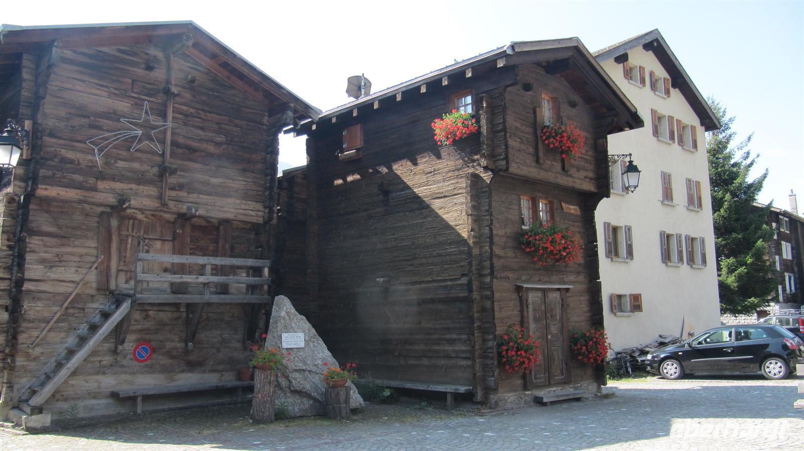 musste unser Bus nun auf 2.431 Meter Höhe auf den Furkapass klettern. Leider steckte die Passhöhe in dicken Wolken und es lag allerhand Schnee. Also begaben wir uns wieder hinab ins Wallis. Am Hotel „Belvedere“ am Rhônegletscher legten wir unsere Mittagspause ein. Wir sahen den Gletscher, der sich in den letzten Jahren beängstigend weit zurückgezogen hat. Vor zehn Jahren konnte man den Gletscher noch von der Straße aus sehen, jetzt sieht man ihn nur noch in der Ferne. Ein Murmeltier, welches sich schon ordentlich Winterspeck angefuttert hatte, kam ganz neugierig an den Rand des Parkplatzes und ließ sich ohne Scheu fotografieren. Durch Gletsch, dem Ort wo die Grimselpass- und die Furkapass-Straße zusammentreffen ging es hinunter nach Oberwald und ins Goms. Das weite Tal ist landschaftlich wunderschön und beherbergt sehr schöne Dörfer mit den typischen dunklen wettergegerbten Häusern aus dunklem Lärchenholz. Auch die Spycher mit den Mäuseblatten, kreisrunde Steinplatten, die auf Holzpfosten liegen und so die Vorräte vor den kleinen Nagern schützen säumten die Straße. In Niederwald, dem Geburtsort von Cäsar Ritz, dem großen Hotelier, spazierten wir durch den Ortskern und bestaunten die schönen Häuser.