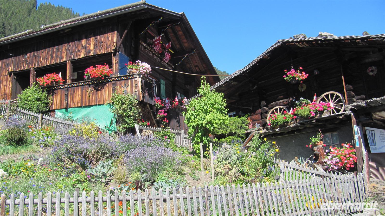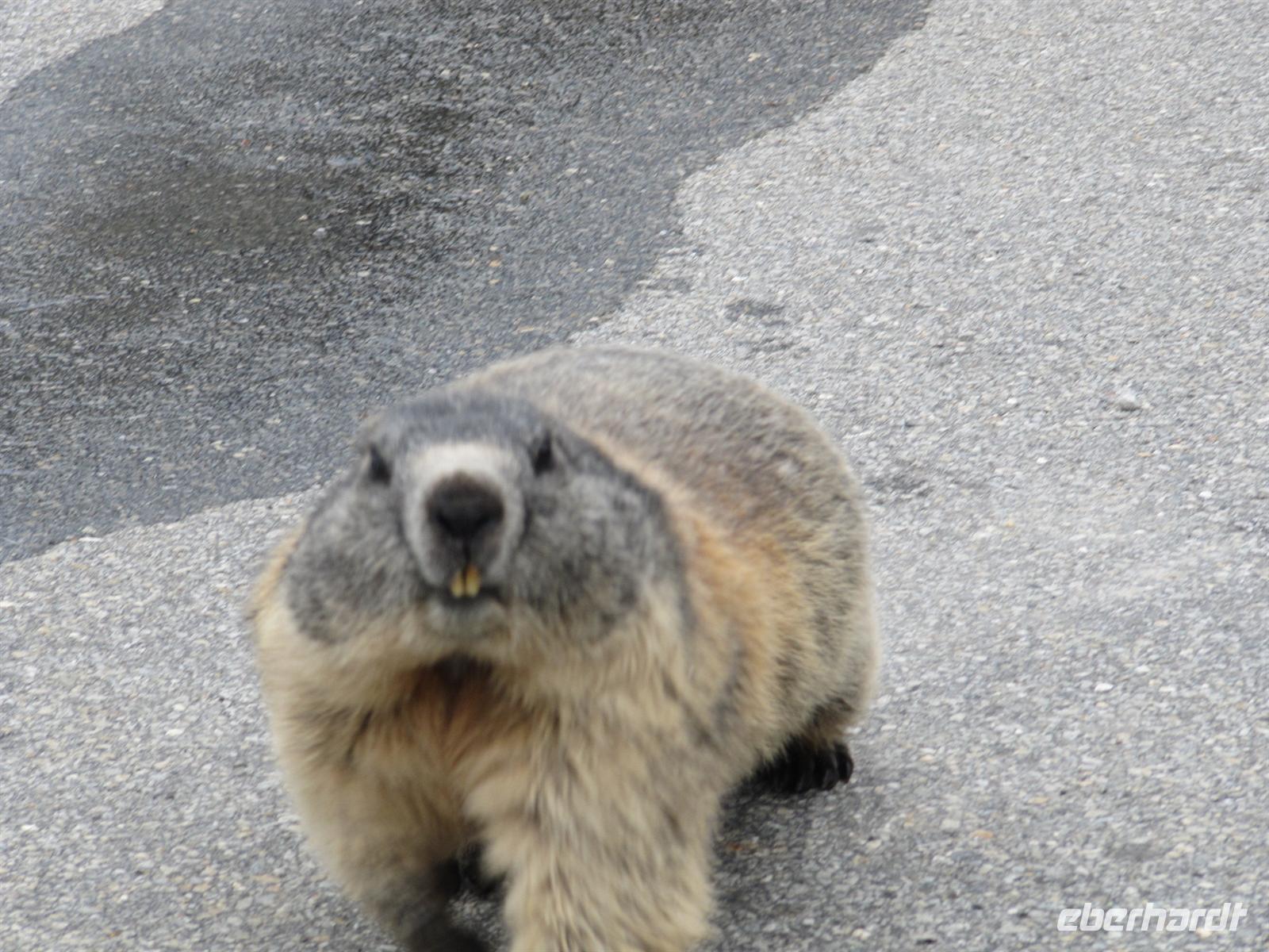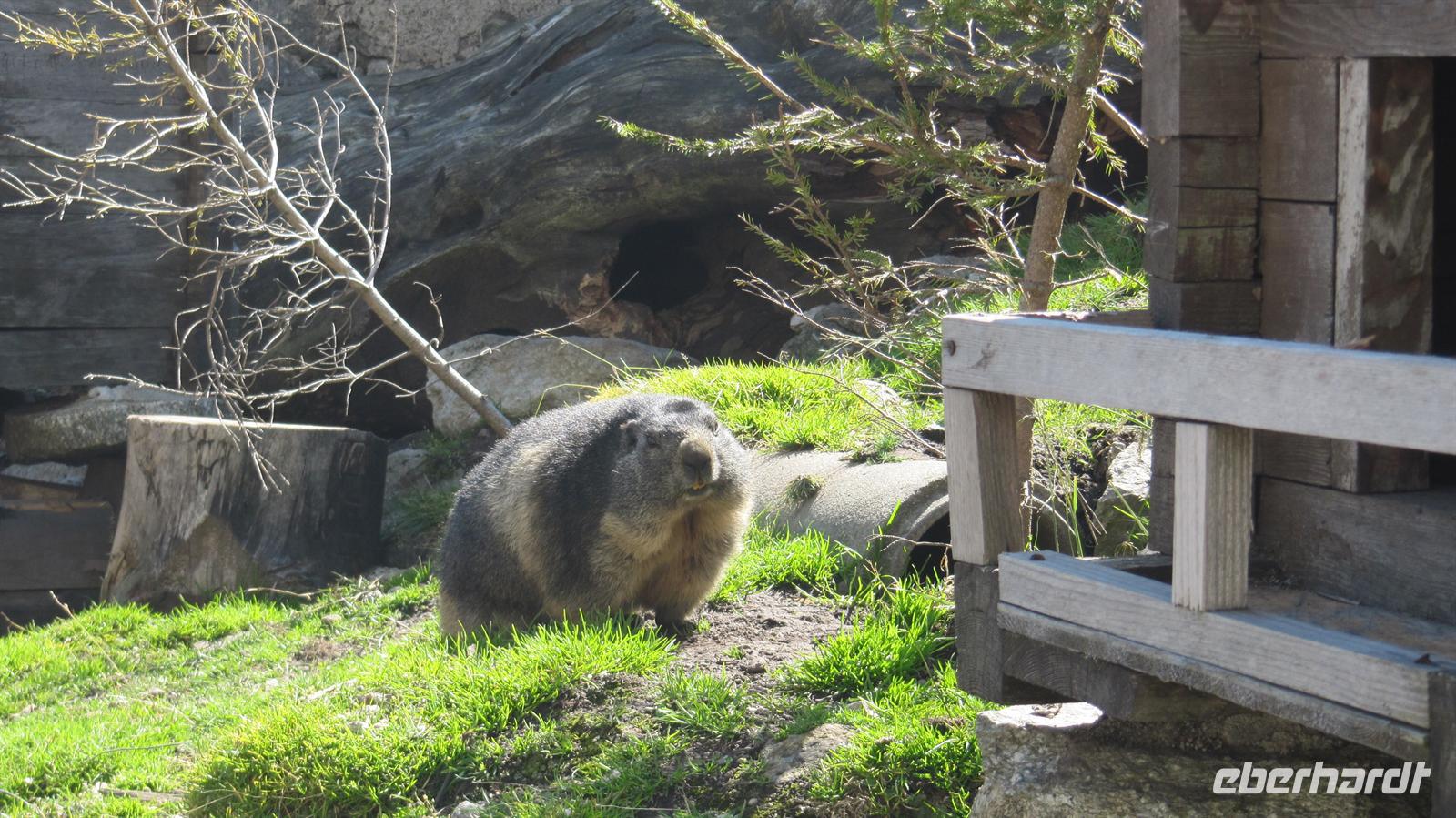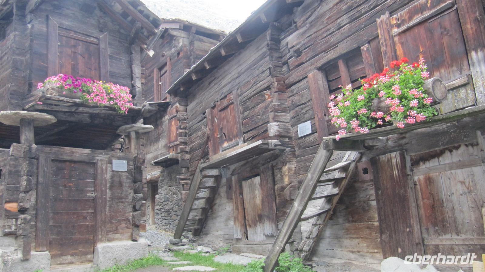 musste unser Bus nun auf 2.431 Meter Höhe auf den Furkapass klettern. Leider steckte die Passhöhe in dicken Wolken und es lag allerhand Schnee. Also begaben wir uns wieder hinab ins Wallis. Am Hotel „Belvedere“ am Rhônegletscher legten wir unsere Mittagspause ein. Wir sahen den Gletscher, der sich in den letzten Jahren beängstigend weit zurückgezogen hat. Vor zehn Jahren konnte man den Gletscher noch von der Straße aus sehen, jetzt sieht man ihn nur noch in der Ferne. Ein Murmeltier, welches sich schon ordentlich Winterspeck angefuttert hatte, kam ganz neugierig an den Rand des Parkplatzes und ließ sich ohne Scheu fotografieren. Durch Gletsch, dem Ort wo die Grimselpass- und die Furkapass-Straße zusammentreffen ging es hinunter nach Oberwald und ins Goms. Das weite Tal ist landschaftlich wunderschön und beherbergt sehr schöne Dörfer mit den typischen dunklen wettergegerbten Häusern aus dunklem Lärchenholz. Auch die Spycher mit den Mäuseblatten, kreisrunde Steinplatten, die auf Holzpfosten liegen und so die Vorräte vor den kleinen Nagern schützen säumten die Straße. In Niederwald, dem Geburtsort von Cäsar Ritz, dem großen Hotelier, spazierten wir durch den Ortskern und bestaunten die schönen Häuser.