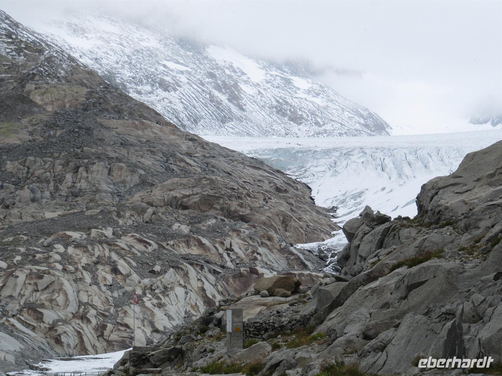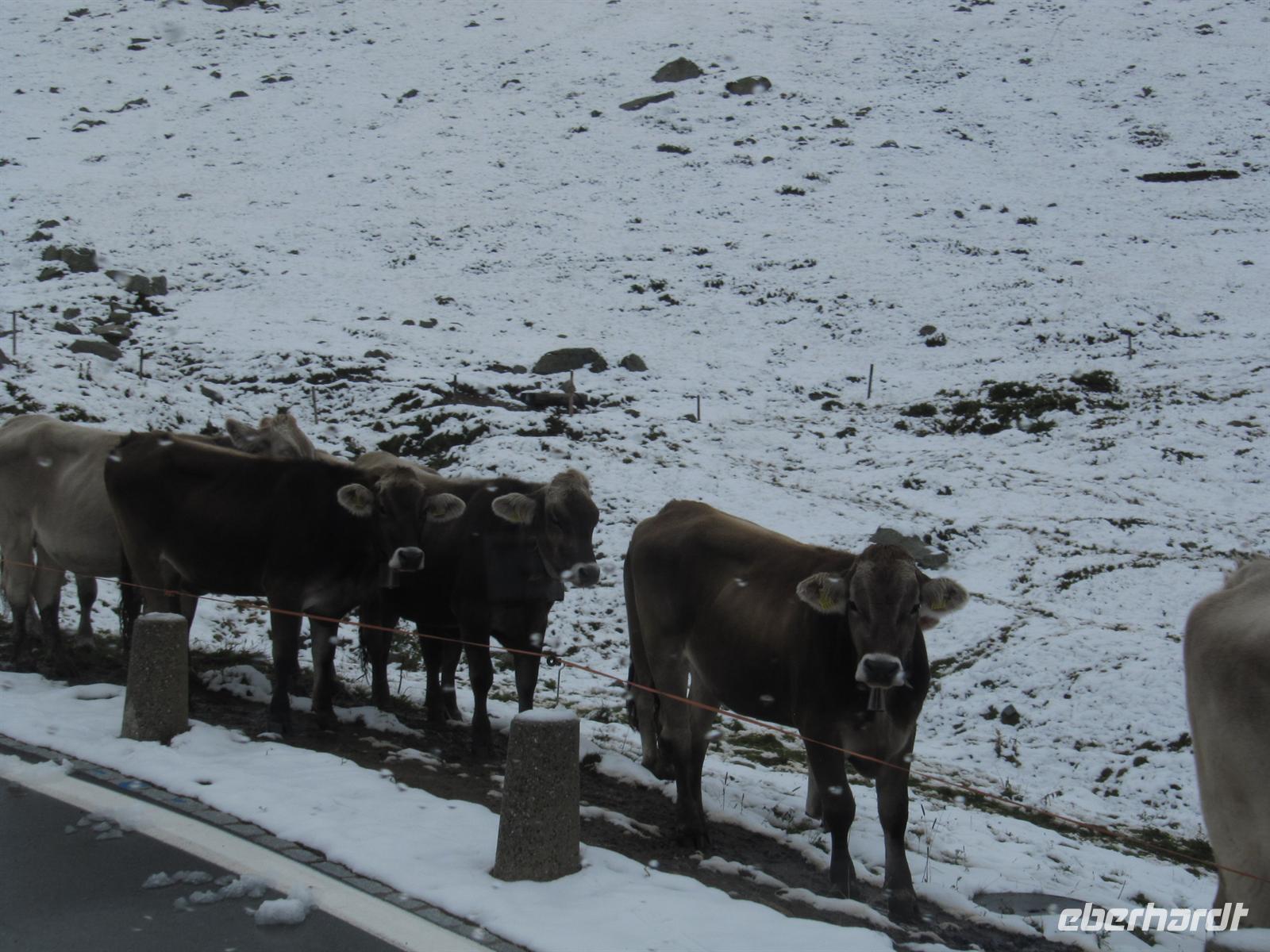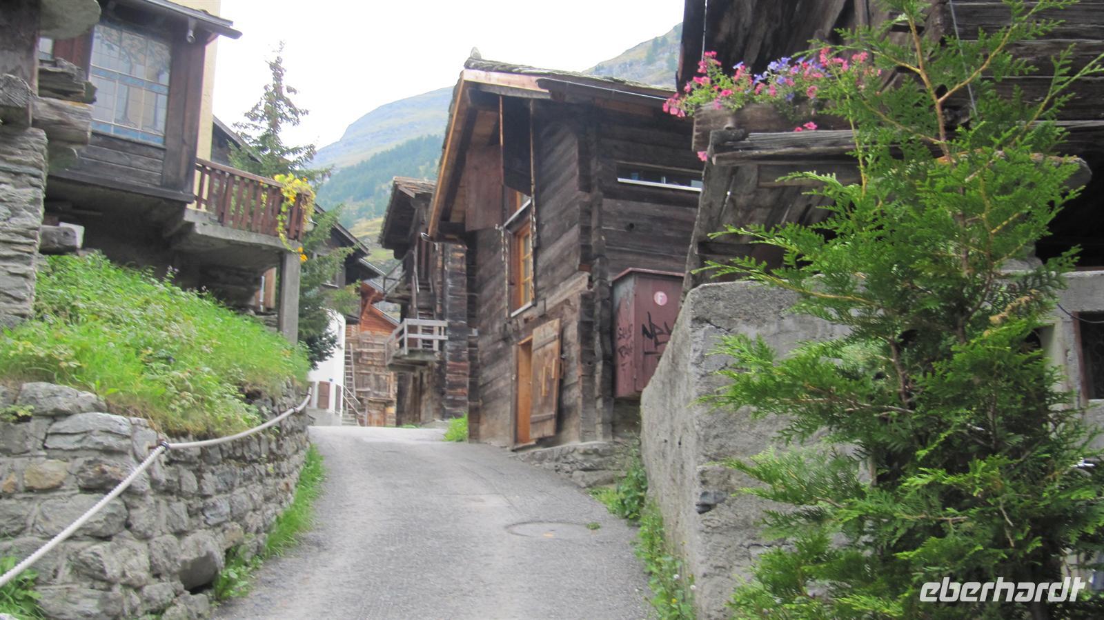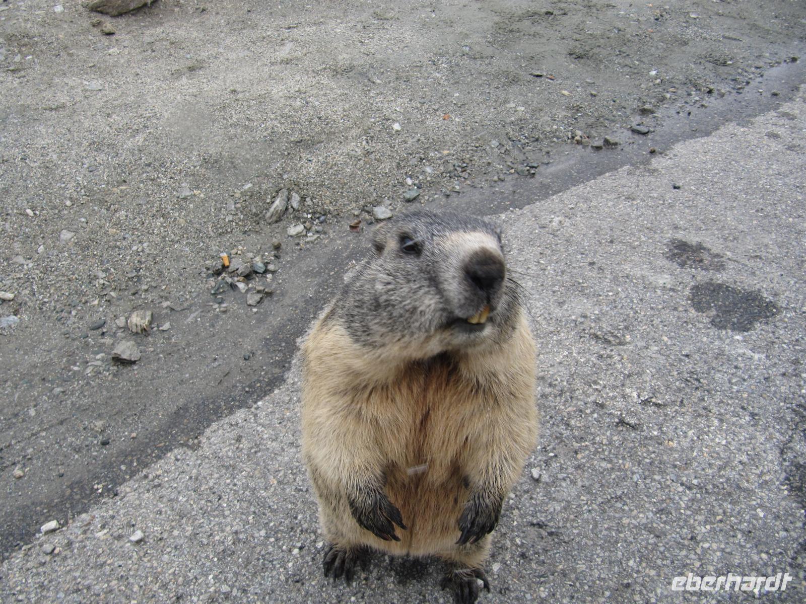 musste unser Bus nun auf 2.431 Meter Höhe auf den Furkapass klettern. Leider steckte die Passhöhe in dicken Wolken und es lag allerhand Schnee. Also begaben wir uns wieder hinab ins Wallis. Am Hotel „Belvedere“ am Rhônegletscher legten wir unsere Mittagspause ein. Wir sahen den Gletscher, der sich in den letzten Jahren beängstigend weit zurückgezogen hat. Vor zehn Jahren konnte man den Gletscher noch von der Straße aus sehen, jetzt sieht man ihn nur noch in der Ferne. Ein Murmeltier, welches sich schon ordentlich Winterspeck angefuttert hatte, kam ganz neugierig an den Rand des Parkplatzes und ließ sich ohne Scheu fotografieren. Durch Gletsch, dem Ort wo die Grimselpass- und die Furkapass-Straße zusammentreffen ging es hinunter nach Oberwald und ins Goms. Das weite Tal ist landschaftlich wunderschön und beherbergt sehr schöne Dörfer mit den typischen dunklen wettergegerbten Häusern aus dunklem Lärchenholz. Auch die Spycher mit den Mäuseblatten, kreisrunde Steinplatten, die auf Holzpfosten liegen und so die Vorräte vor den kleinen Nagern schützen säumten die Straße. In Niederwald, dem Geburtsort von Cäsar Ritz, dem großen Hotelier, spazierten wir durch den Ortskern und bestaunten die schönen Häuser.