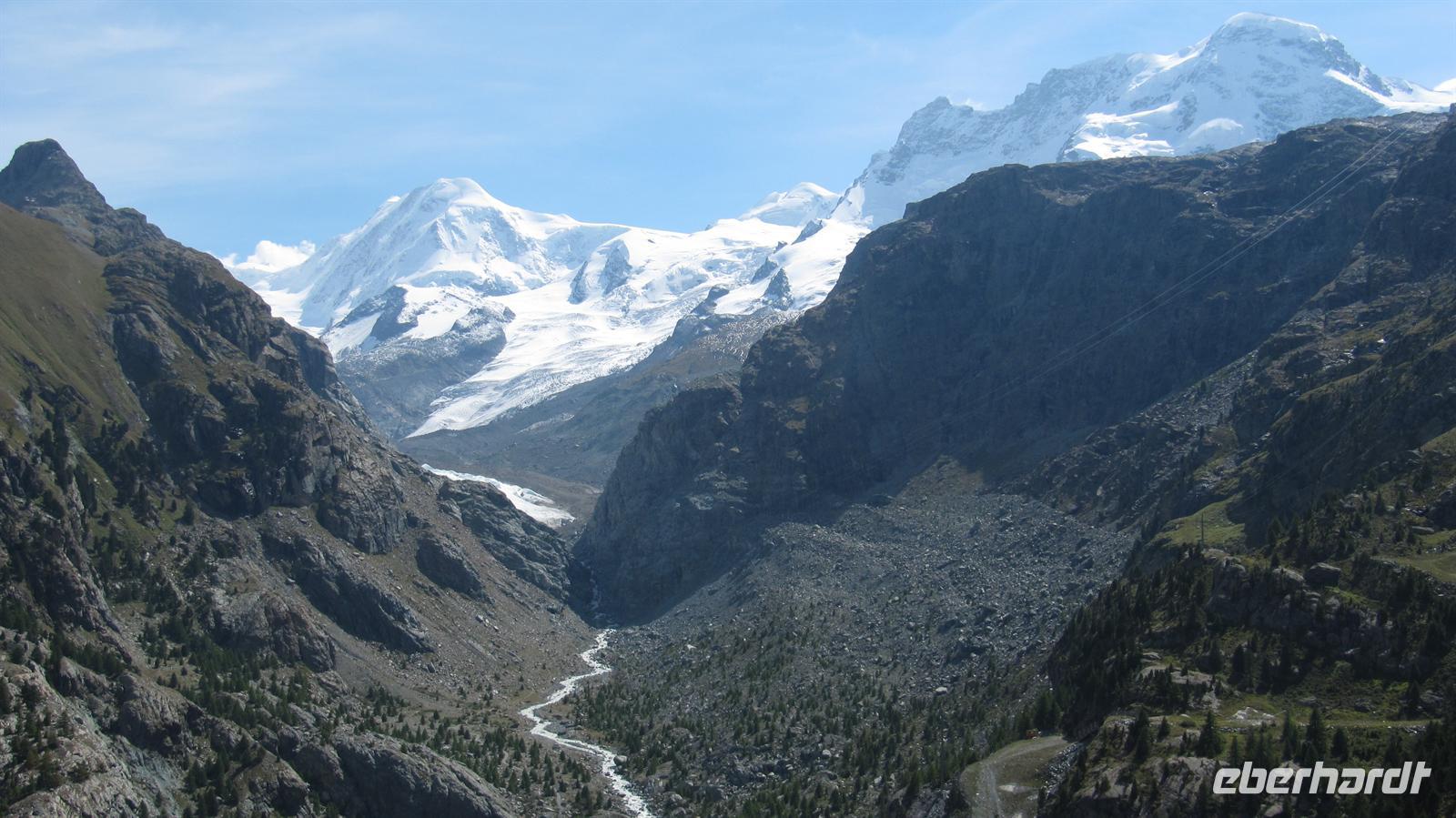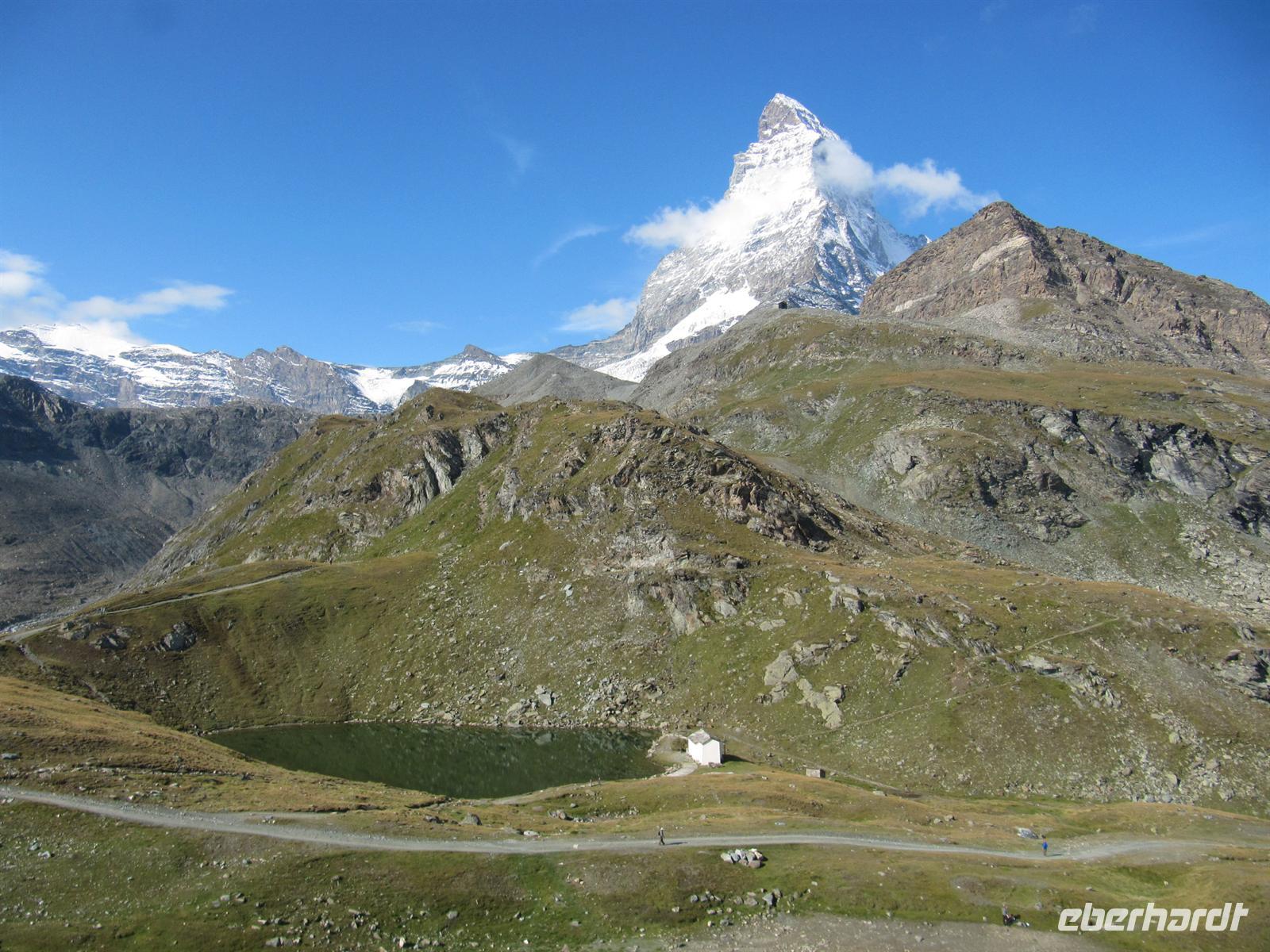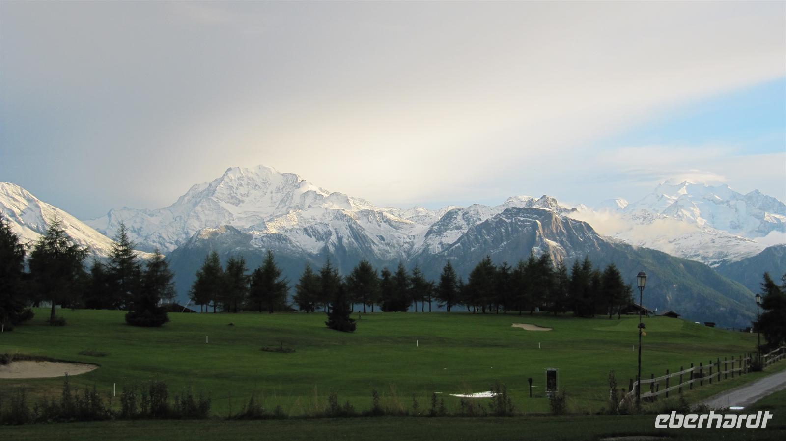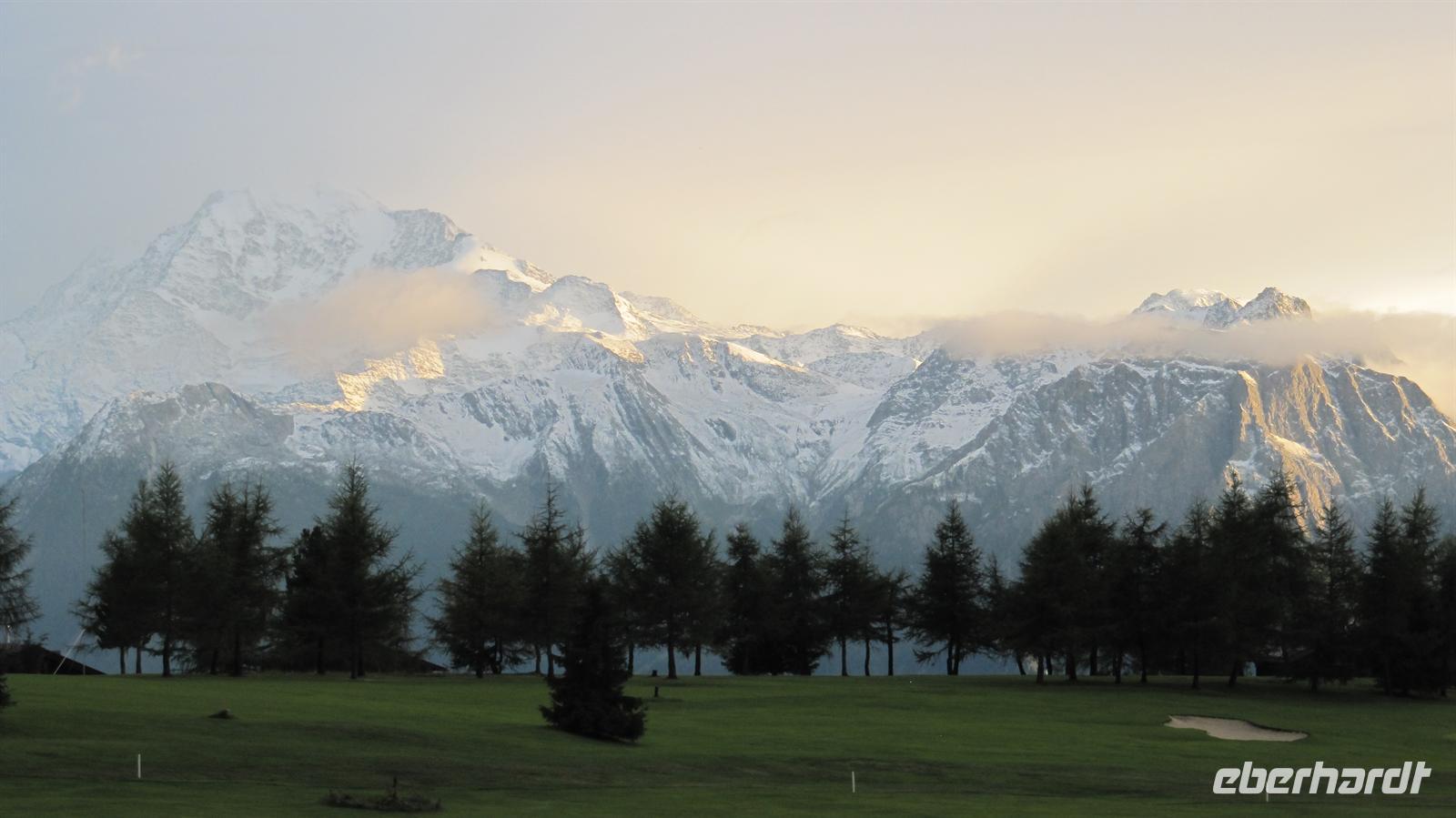 schneebedeckten Berge von der Duforspitze über die Monte Rosa Gruppe, das Matterhorn bis hin zum Weisshorn. Auch wenn sich die Berge ab und zu in Wolken hüllten, so war es ein beeindruckendes Naturschauspiel, an dem wir uns gar nicht satt sehen konnten. Wir verweilten eine ganze Zeit auf dem Gipfel bevor wir uns trennten. Einige Gäste fuhren den gesamten Weg wieder mit den Bergbahnen ist Tal und ein anderer Teil nutzte die Zeit zu verschiedensten Wanderungen. Mit einer kleinen Gruppe fuhr ich zur Station Blauherd zurück und wir wanderten auf dem Blumenweg nach Sunnegga. Der Weg führte durch Wiesen und bot uns immer wieder tolle Blicke auf das Matterhorn und die umliegenden Berge. Entlang des Weges waren Tafeln aufgestellt, auf denen die Alpenpflanzen erklärt werden. Unterwegs legten wir im kleinen Weiler Tufteren noch eine Rast ein. Auf Sunnegga angekommen, gönnten wir uns eine heiße Schokolade auf der herrlichen Aussichtsterrasse und genossen nochmals die Aussicht. Individuell kehrten wir mit der Standseilbahn nach Zermatt zurück. Den Nachmittag gestaltete dann jeder nach seinen Wünschen. Am Abend trafen wir uns alle zum Abendessen und tauschten unsere Erlebnisse vom Tag aus.
