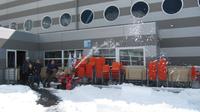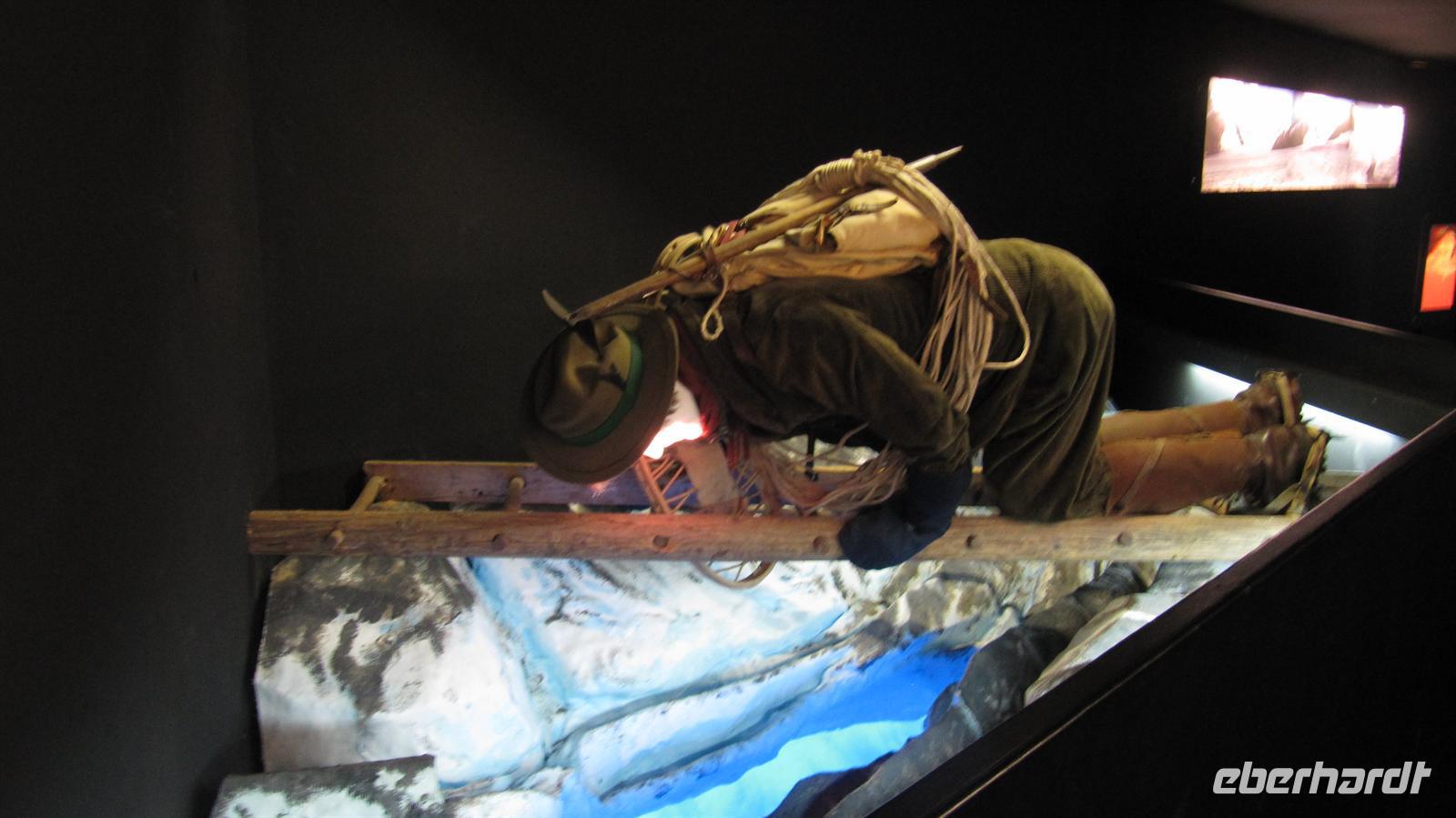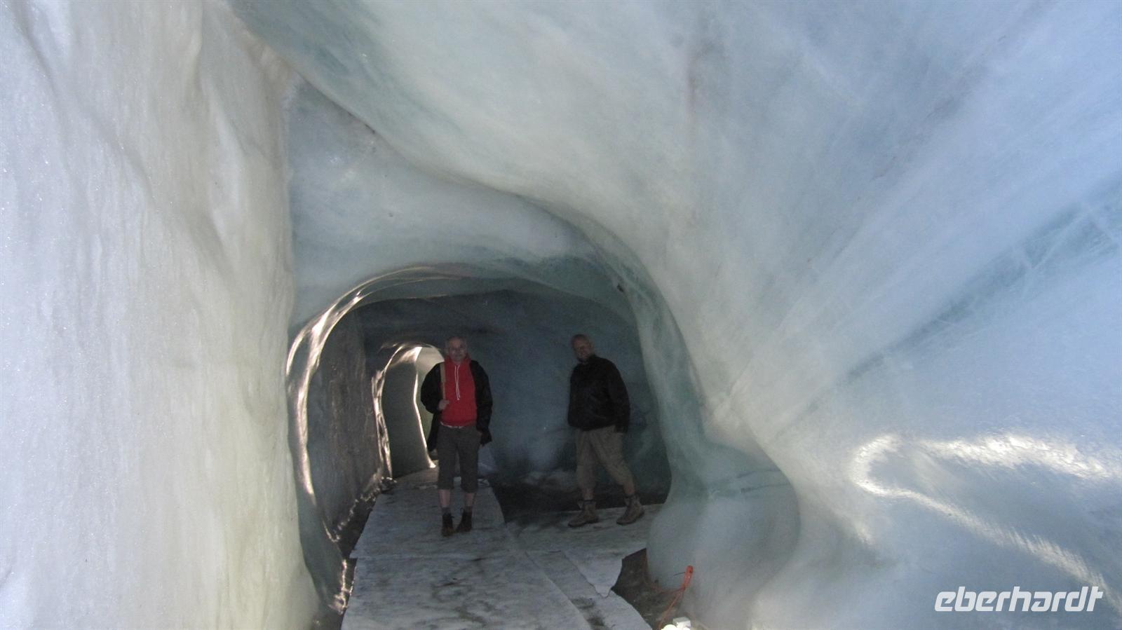 Nun spazierten wir entlang der Engelberger Ar zur Talstation der Titlisbahn. Mit der Umlaufgondelbahn fuhren wir zunächst bis zur Station Trübsee. Weiter ging es mit der Kabinenbahn in die Wolken zur Station Stand. Hier bestiegen wir die Kabine der Rotair. Diese Gondel dreht sich während der Fahrt zum Gipfel des Titlis. Leider blieb uns aber die fantastische Sicht in die Bergwelt durch die Wolken und den Schneefall verwehrt. Auf dem Gipfel besuchten wir die Gletschergrotte, welche sich ca. 20 Meter unter der Oberfläche befindet. Anschließend „flogen“ wir mit dem IceFlyer über den Gletscher. Es schneite zwar recht stark aber dennoch konnten wir die tiefen Gletscherspalten sehr gut sehen. Nach einer Stärkung im Restaurant verließen wir den Berg und kehrten nach Engelberg zurück. Den Nachmittag gestalteten alle nach ihren Wünschen. Am Abend trafen wir uns zum Abendessen wieder.