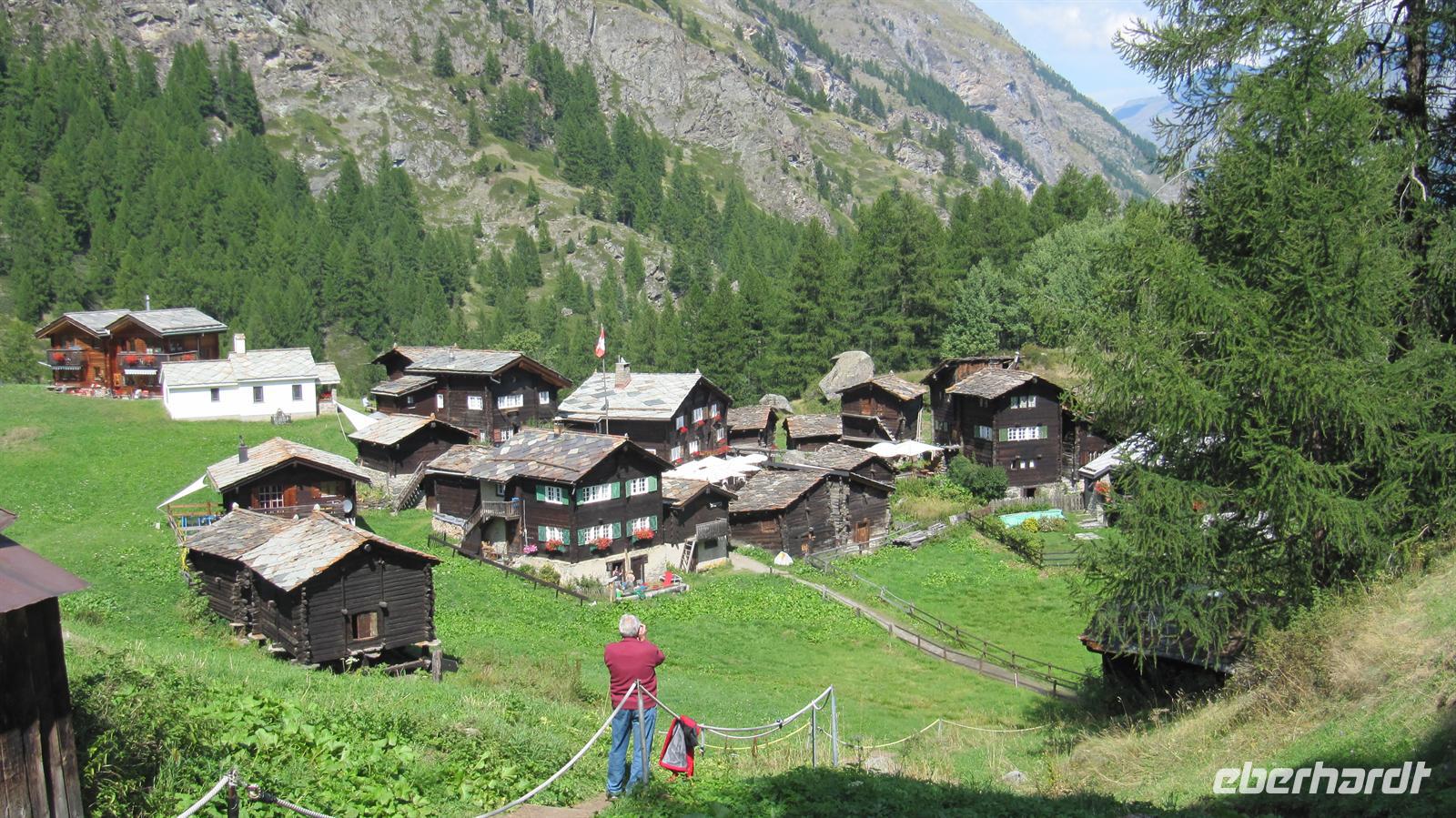 begaben wir uns zuerst auf die Aussichtsplattform. Im gleißenden Sonnenlicht sahen wir die Viertausender majestätisch in der Landschaft. Ob das Breithorn mit seiner dicken Schneekappe, der Dom, der höchste Berg der komplett auf Schweizer Boden steht oder die Monte Rosa-Gruppe - wir waren fasziniert von der Schönheit der Berge! Im Gletscherpalast konnten wir das Eis ganz nah erleben und beim Spaziergang über den Gletscher begegneten wir den Skifahrern, die hier das ganze Jahr ihrem Sport nachgehen können. Nach einer kleinen Stärkung im Restaurant traten wir die Talfahrt mit den Bahnen an. Doch auch dabei konnten wir uns einfach nicht losreisen, von dieser einmaligen Natur im herrlichsten Sonnenschein. Also hatten wir beschlossen, das letzte Stück nach Zermatt wieder wandernd zurück zu legen. In Furi verließen wir die Gondelbahn und nun führte uns ein wunderschöner Wanderweg durch Wiesen und die alten Weiler „Zum See“ und „Blatten“. Wunderschöne alte Holzhäuser und Spycher prägten das Bild. Diese sind teilweise mehrere hundert Jahre alt und vermittelten einen kleinen Einblick, wie Zermatt früher ausgesehen hat. Gut gelaunt erreichten wir Zermatt und alle gestalteten den Nachmittag nach ihren Wünschen.
