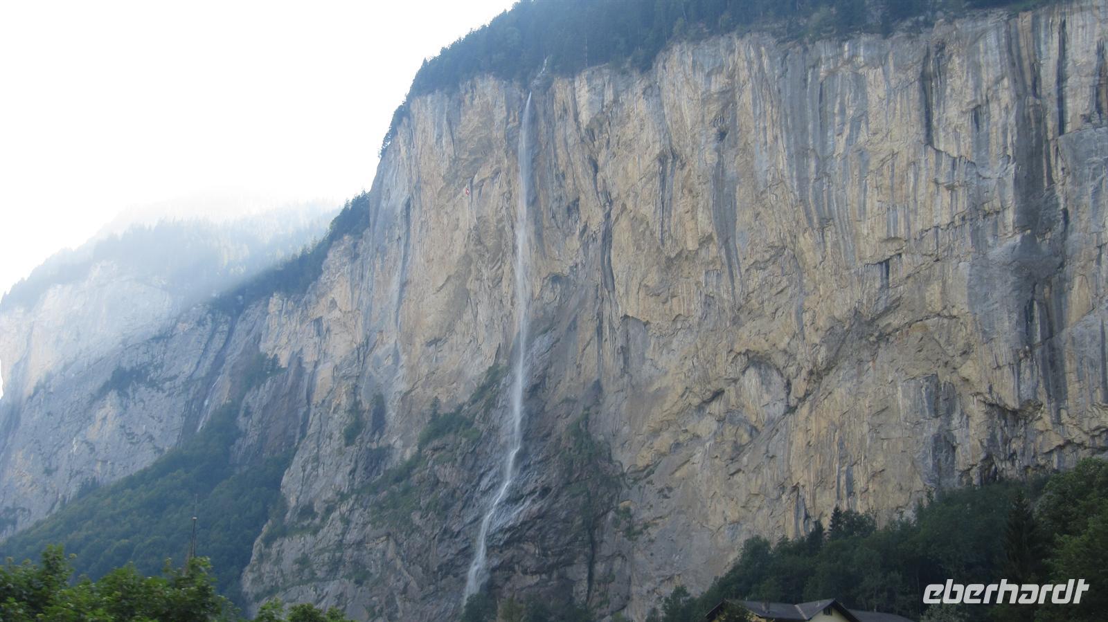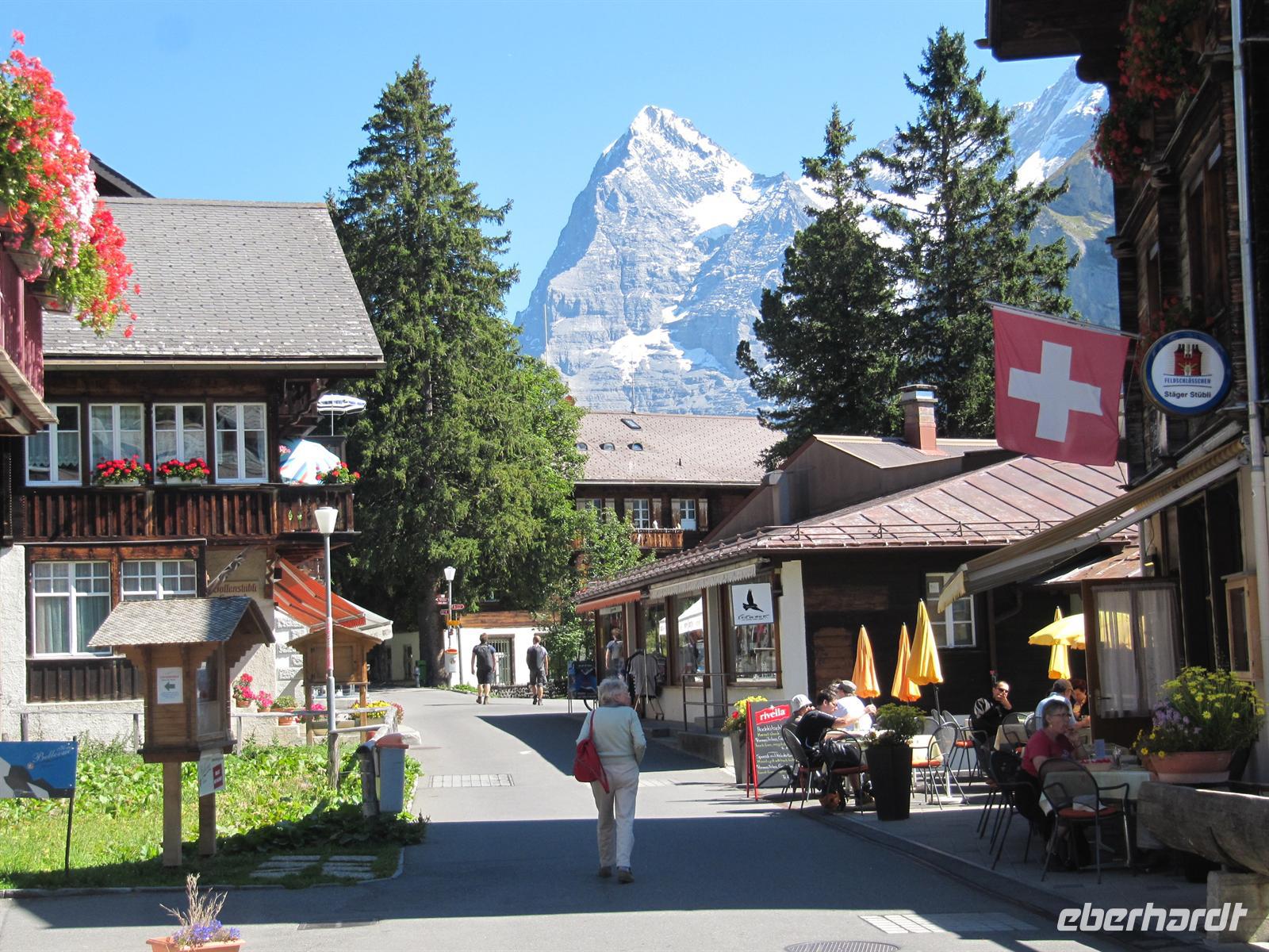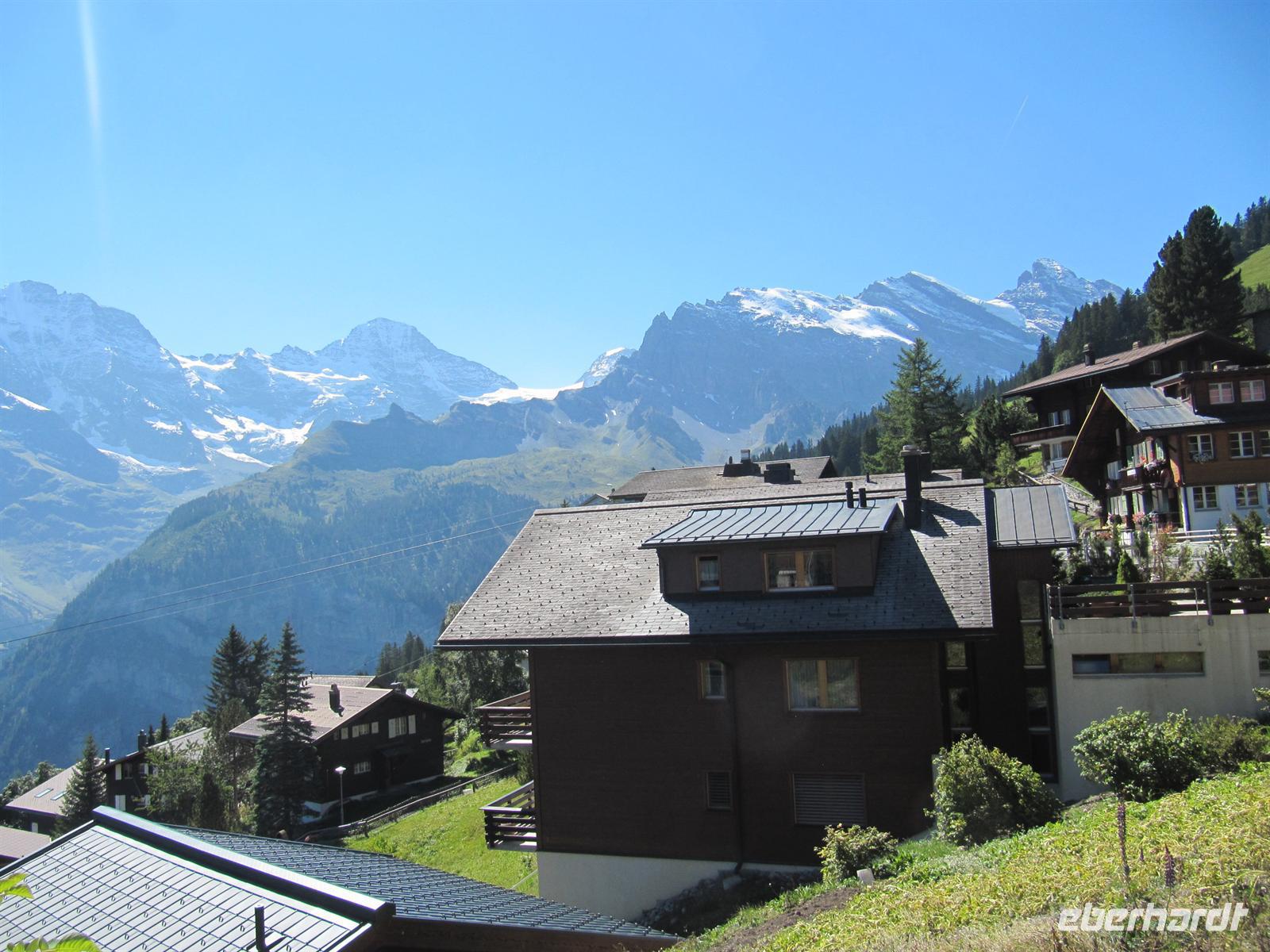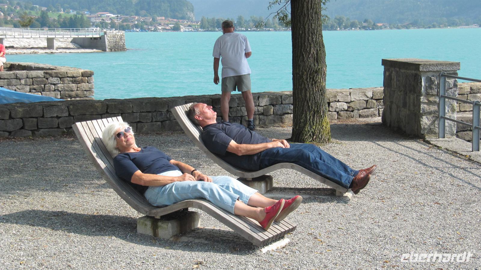 verläuft, erreichten wir den Gipfel in 2.970 Metern Höhe. Uns bot sich ein einmaliges 360°-Panorama vom Mont Blanc über die Walliser und Berner Alpen bis hin zu Eiger, Mönch und Jungfrau und dem Schwarzwald. Auf der großen Aussichtsterrasse und im Drehrestaurant verweilten wir und ließen unsere Blicke schweifen. Anschließend brachten uns die Seilbahnen nach Mürren zurück. Wir spazierten durch den hübschen Ort, der auf einer Sonnenterrasse hoch über dem Lauterbrunnental liegt. Mit den Seilbahnen ging es zurück nach Stechelberg, wo wir unseren Bus bestiegen und vorbei am Straubachfall, den bereits Johann Wolfgang von Goethe in einem Gedicht beschrieb, nach Interlaken zurück. Da so tolles Wetter war, erklommen wir am Nachmittag mit der Standseilbahn den Hausberg von Interlaken, den Harder Kulm in 1.322 Metern Höhe. Auch hier bot sich uns ein herrlicher Blick über den Brienzer See und den Thunersee und Interlaken vor der Kulisse von Eiger, Mönch und Jungfrau. Auf dem Zwei-Seen-Steg schienen wir über der Landschaft zu schweben. Bei einem leckeren Abendessen im Garten des Hotels ließen wir diesen wunderschönen Tag und die Reise ausklingen.
