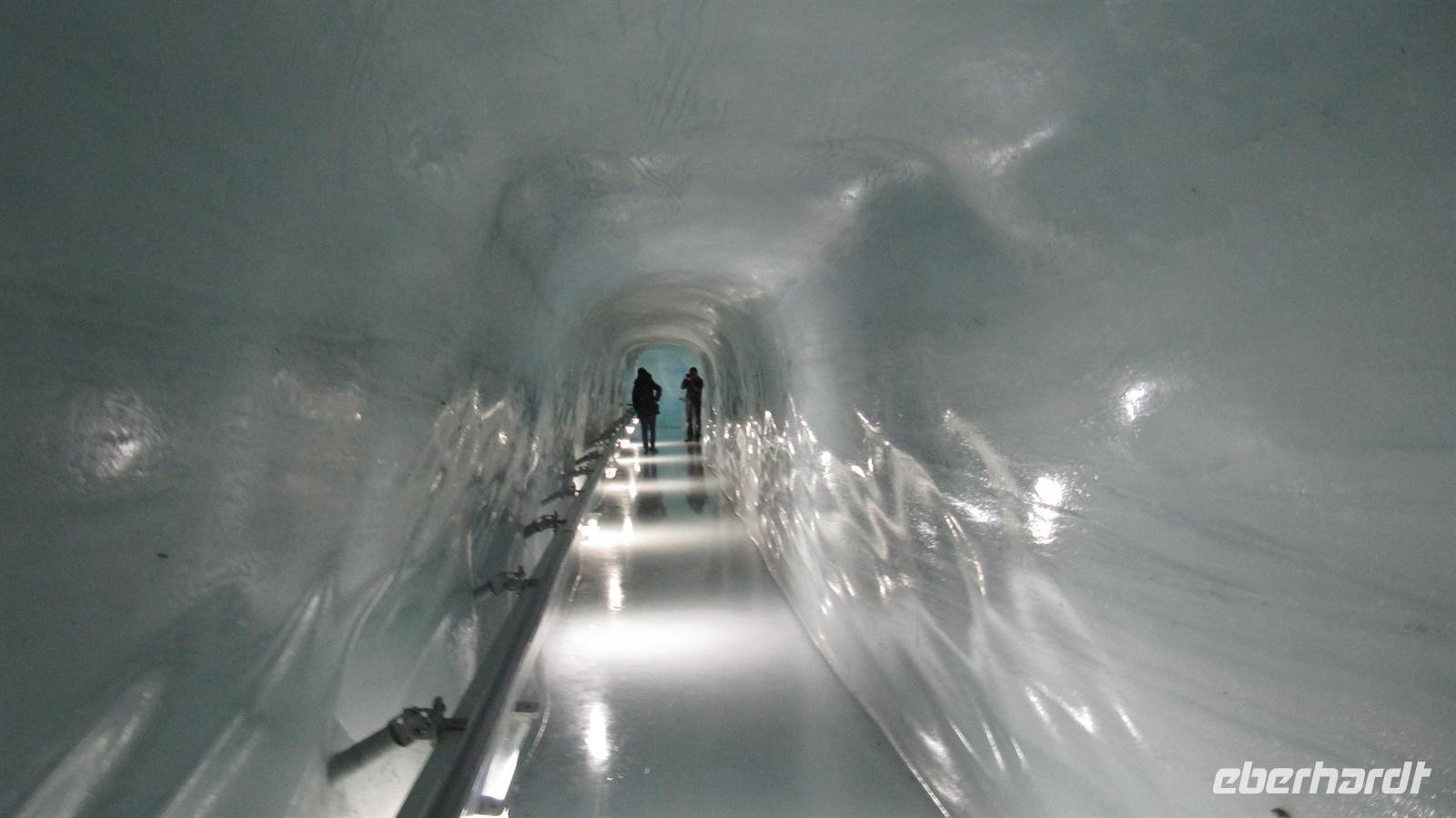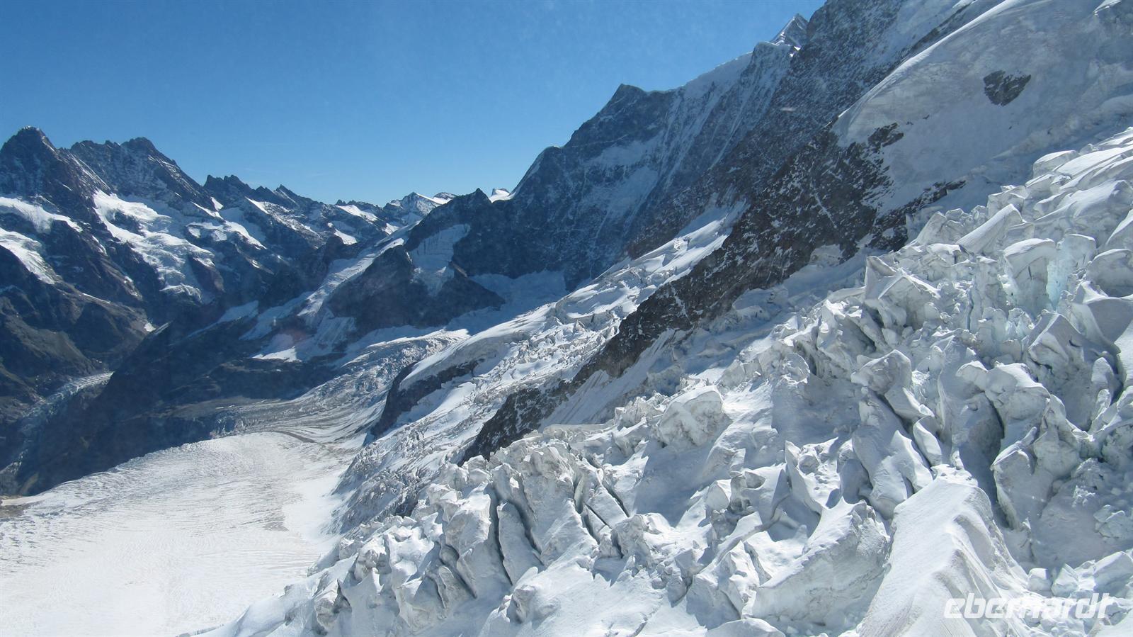 einem riesigen Gletscherabbruch. Auf dem Jungfraujoch war nun genug Zeit während des Rundganges die einmalige Aussicht zu genießen. Vom höchsten Aussichtspunkt, der Sphinx bot sich uns ein einmaliger Blick auf den Jungfraufirn und den Konkordiaplatz, wo sich drei Gletscher zum Aletschgletscher vereinen. Die Berge der Walliser Alpen und die Jungfrau und der Mönch waren zum greifen nah. Das Panorama war einfach traumhaft und wir konnten uns kaum satt sehen. Es gab aber noch viel mehr zu entdecken. Im Eispalast befanden wir uns mitten im Gletschereis und konnten die schönen Eisplastiken bewundern. Wir versäumten es nicht, auf das Plateau und auf den Aletschgletscher zu gehen. Hier standen wir im ewigen Schnee und genossen die Sonne und die traumhafte Aussicht. Im Berg besuchten wir noch die Galerie, die sich mit der Geschichte der Jungfraubahn befasste. Nach einem kurzweiligen Aufenthalt verließen wir das Jungfraujoch mit dem Bahn wieder Richtung Kleine Scheidegg. Dort stiegen wir nochmals um und die Wengeralpbahn brachte uns über Wengen nach Lauterbrunnen, wo uns unser Chauffeur Alf erwartete und mit dem Bus zurück nach Interlaken brachte.