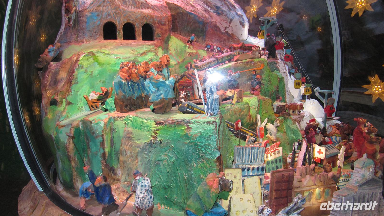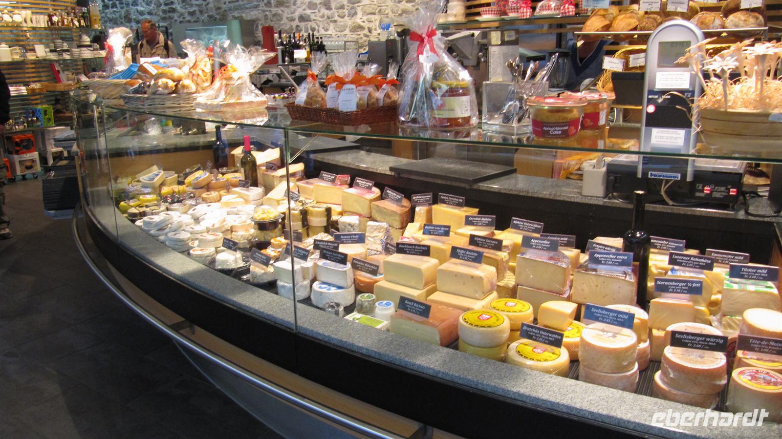im Winter. Wir spazierten zunächst durch die kleine Fußgängerzone zum beeindruckenden Benediktinerkloster in Engelberg. Das Kloster wurde bereits Anfang des 12. Jahrhunderts gegründet. Damals hörten ein Abt und der Klostergründer Engelsstimmen am Berg und daraus entstand der Name Engelberg, den fortan das Kloster und das zugehörige Dorf tragen sollten. Heute leben noch 29 Benediktiner-Mönche im Kloster und leiten unter anderem ein Gymnasium, eine Schreinerei und eine Gärtnerei. Außerdem befindet sich hier die einzige Schaukäserei der Schweiz in einem Kloster. Bereits seit dem 16. Jahrhundert wurde in Engelberg Käse hergestellt. Der Käser erklärte uns sehr anschaulich, wie der gute Käse in Form einer Glocke hergestellt wird. Wir durften sogar dabei helfen. Natürlich kosteten wir auch die verschiedenen Sorten.