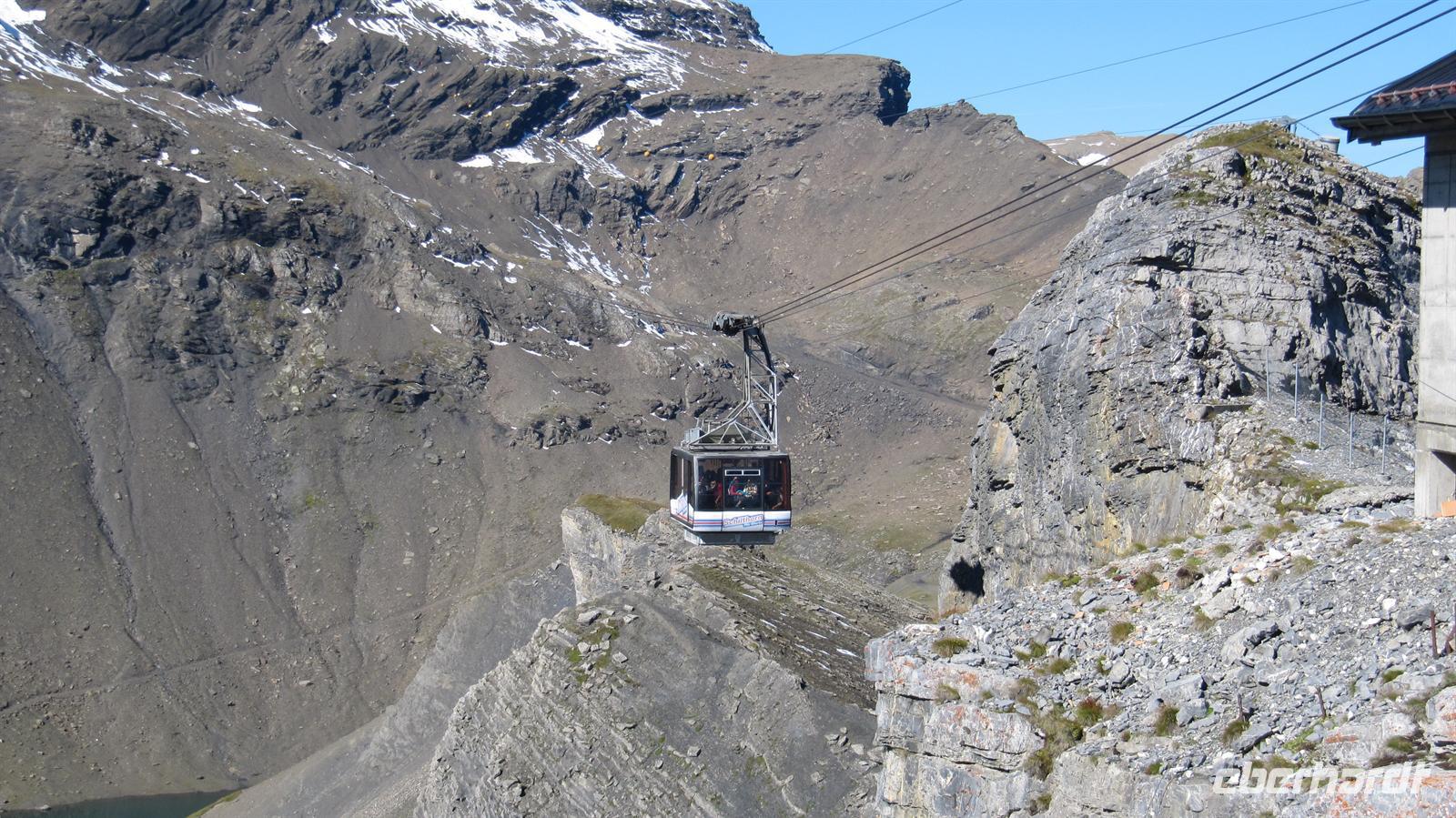 Am Morgen erwartete uns wiederum ein wolkenloser Himmel und strahlender Sonnenschein, so dass es ein erlebnisreicher Tag wurde. Mit dem Bus fuhren wir durch das Lauterbrunnental nach Stechelberg. Hier begann unsere Fahrt mit vier Kabinenbahnen auf das Schilthorn. Die erste Bahn brachte uns nach Gimmelwald und weiter ging es nach Mürren. Nach einer kurzen Pause führte uns die Fahrt mit der dritten Bahn nach Birg in 2.677 Metern Höhe. Auch hier nutzten wir einen Stopp zum Fotografieren und um den Blick zum Schilthorn zu genießen. Mit der vierten, spektakulärsten Seilbahn, welche zwischen Birg und dem Schilthorn über eine Mulde ohne Pfeiler