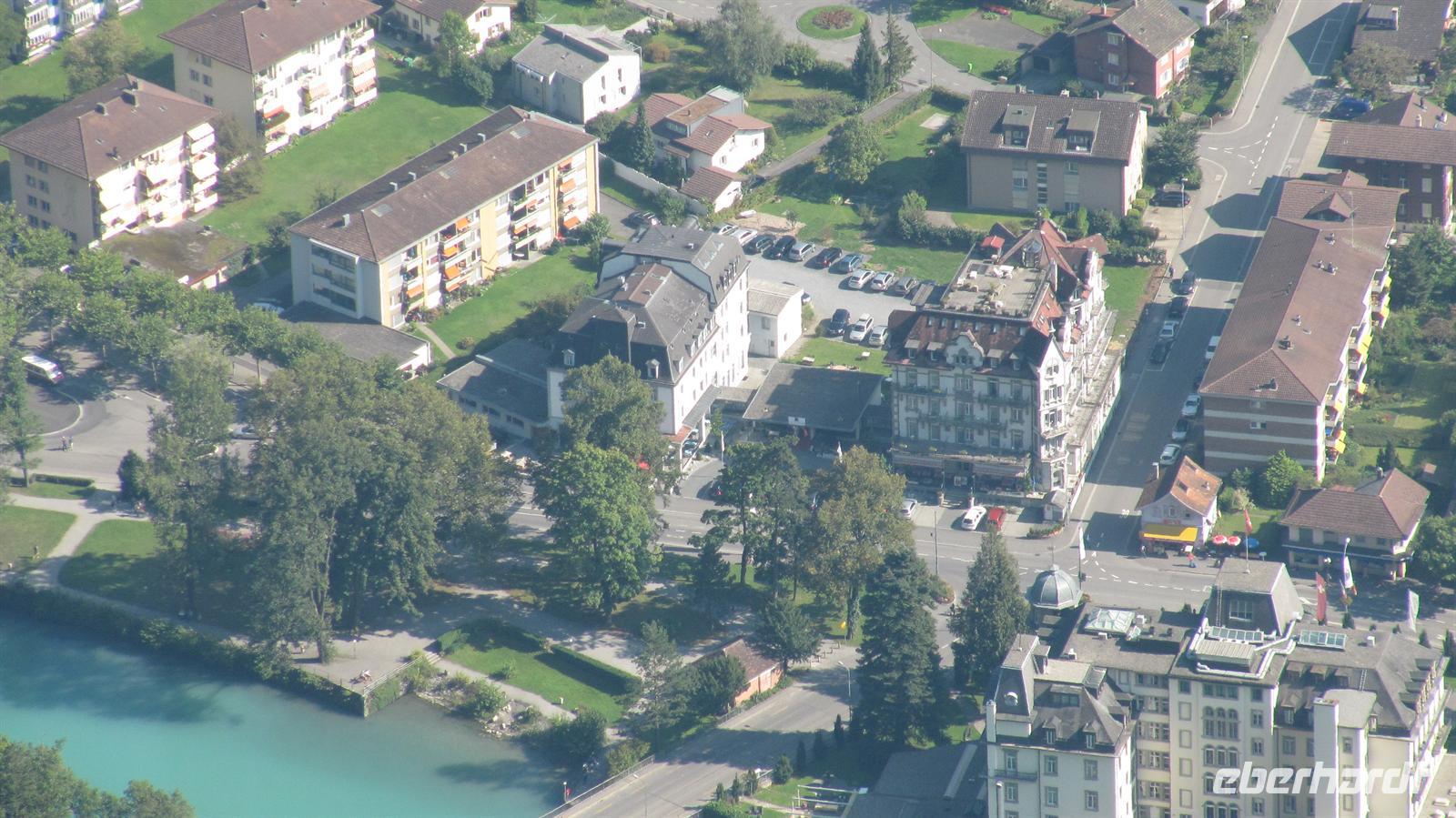 den Grimselsee. Anschließend begaben wir uns wieder hinab Richtung Berner Oberland. Am Grimselhospiz in 1.900 Metern Höhe machten wir nochmals einen Fotostopp, zu faszinierend war die Landschaft des Grimselgebietes. Dies ist auch das Wasserschloss der Schweiz und hier wird Energie aus Wasserkraft gewonnen. Nun fuhren wir weiter ins Haslital und durch Meiringen. In Meiringen lebte einst Arthur Canendoyle und schrieb einige seiner Sherlock Homes Romane. Durch das Haslital erreichten wir Brienz, das Holzschnitzerdorf am Nordufer des Brienzer Sees. Nach einem kurzen Spaziergang in dem hübschen Dorf ging es entlang des Sees nach Interlaken, wo wir im Hotel „Carlton-Europe“ bereits erwartet wurden Nachdem wir unsere Zimmer bezogen hatten war vor dem Abendessen noch Zeit für erste Erkundungen in Interlaken.