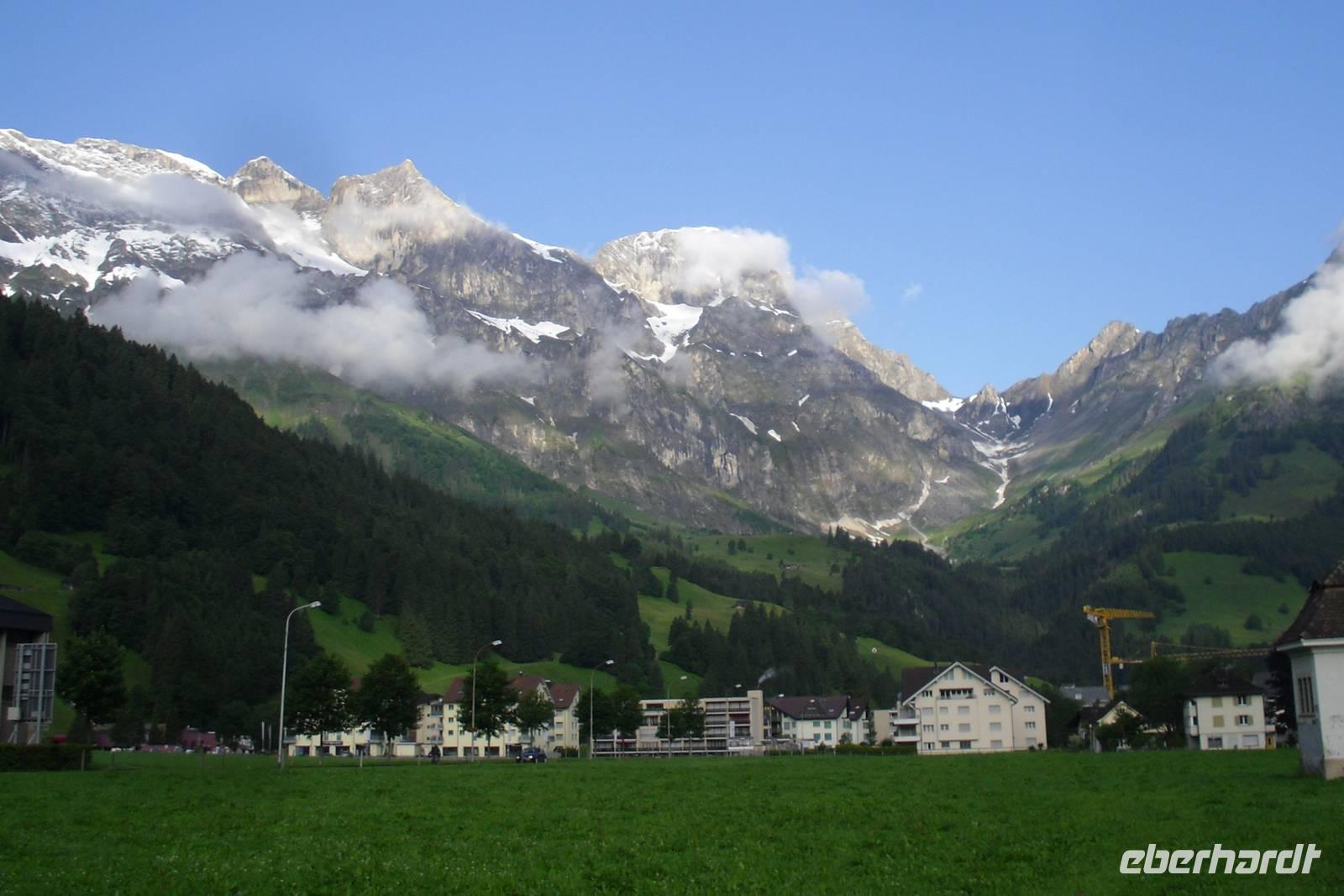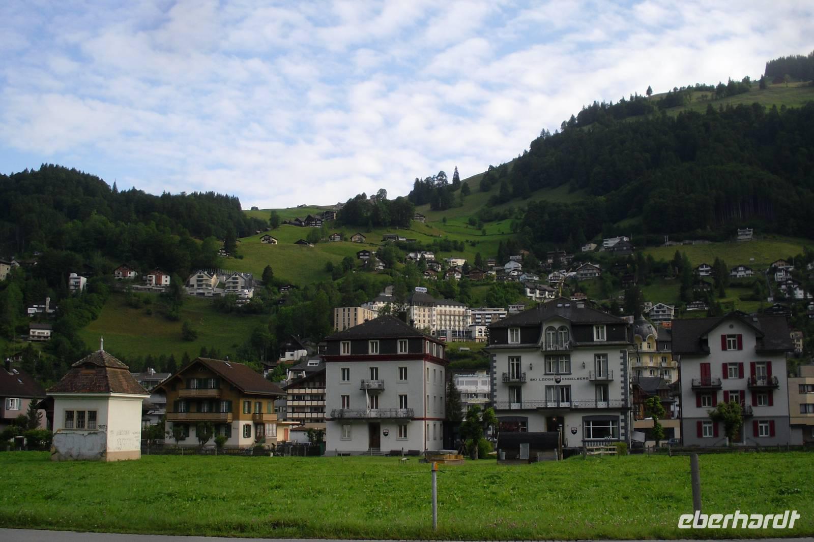 Pünktlich um 6 Uhr morgens ging es am Dresdner Flughafen los. Die letzten Gäste stiegen heute am Autohof in Münchberg zu und damit war unsere Reisegruppe mit insgesamt 30 Personen komplett. Wie bei unseren Reisen üblich, legten wir im Abstand von jeweils etwa zwei Stunden eine Pause ein. So konnte jeder mal etwas frische Luft schnappen beziehungsweise sich die Beine vertreten. Die Fahrt führte uns über Nürnberg und Ulm in Richtung Bodensee. Kurz nach Lindau erreichten wir bereits Österreich und damit das Bundesland Vorarlberg. Nach der Fahrt durch den 6,7 km langen Pfändertunnel ging es weiter bis zur österreichisch-schweizerischen Grenze Lustenau/Au. Nun waren wir endlich in der Schweiz! Vorbei an Liechtenstein, Sargans, dem Walensee und dem Zürichsee führte uns unsere Fahrt über die Hirzelhöhe in Richtung Luzern und schließlich in das Engelberger Tal. Am frühen Abend erreichten wir dann das Hotel "Schweizerhof" in Engelberg, unser Quartier für die ersten zwei Nächte. Dieses wurde vor rund 100 Jahren erbaut und durch umfangreiche Erneuerungen kann es den heutigen Gästewünschen voll entsprechen. Das Hotel liegt im Herzen eines Sommer- und Winterparadieses, in unmittelbarer Nähe des Kurparks und ist umgeben von einem beeindruckenden Bergpanorama. Wir wurden herzlich empfangen und jeder von uns war jetzt froh, nach der langen Fahrt angekommen zu sein. Manch einer nutzte nach dem Abendessen noch die Gelegenheit, um einen Bummel durch den Ort zu machen.