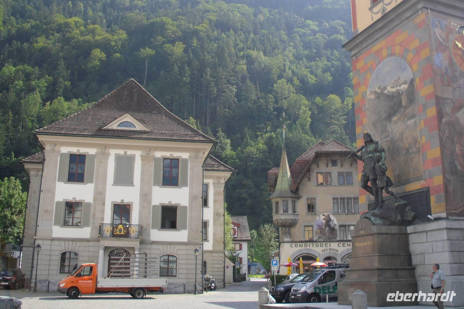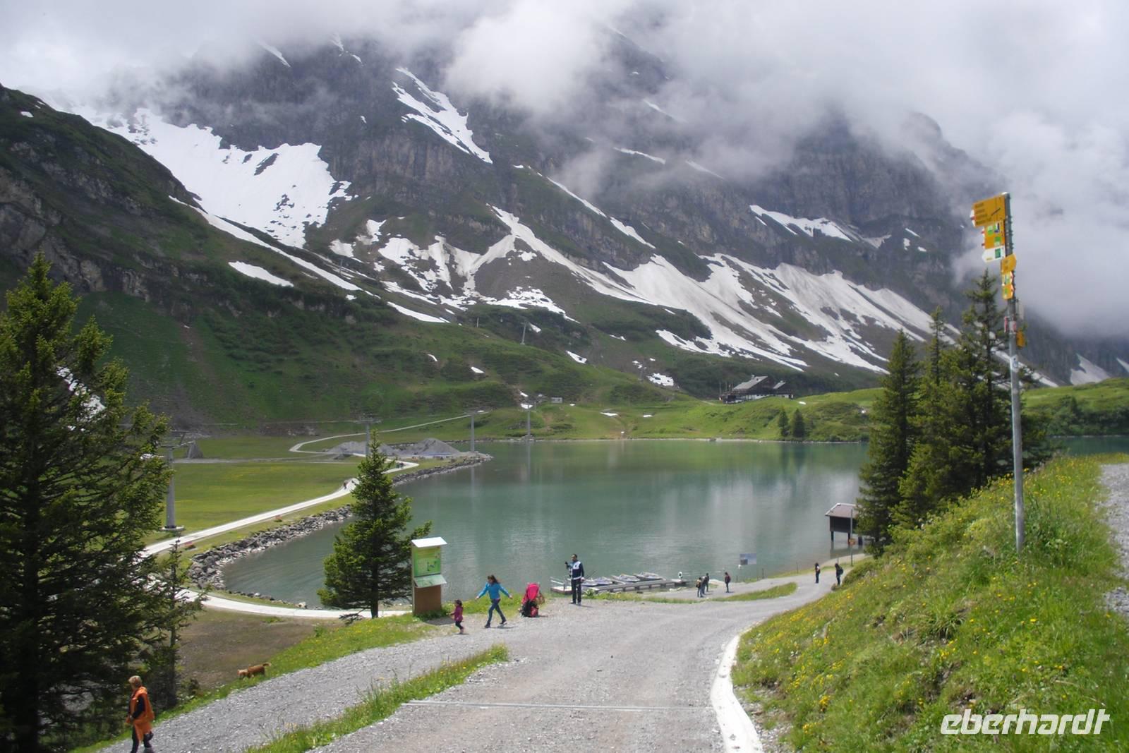 Den heutigen Tag verbrachten wir in Engelberg. Die Geschichte des Ortes geht auf die Gründung des Benediktinerklosters zurück. Einer Sage zufolge hatte der Gründer des Klosters im Traum eine Engelsstimme gehört, welche ihm verkündete, eine "Gott geweihte Stätte" zu gründen. Anfang des 12. Jahrhunderts wurde das Kloster gebaut und es wurde nach einem Namen gesucht, der zu diesem Kloster sinnvoll passen sollte. Plötzlich wurden Engelsstimmen gehört und man sah einen Chor von Engeln - diese sangen mit zauberhaften Stimmen das Gotteslob! Der Berg der Engel! So sollte das Kloster und die dazugehörende Siedlung der Talbewohner also von nun an heißen. Engel wurden zwar seither keine mehr gesichtet, Spuren von Engelbergs Geschichte sind jedoch heute noch zu entdecken. Am Morgen besichtigten wir die einzige Schweizer Schaukäserei in einem Kloster. Seit dem 12. Jahrhundert wird in Engelberg würziger Alpkäse hergestellt. Bereits im 16. Jahrhundert exportierte die Klosterkäserei auf Maultieren hunderte von Käselaiben. Heute verarbeitet die Schaukäserei im Kloster Engelberg gesunde und frische Berg- und Alpmilch zu verschiedenen Käsesorten, wie zum Beispiel zur berühmten glockenförmigen "Klosterglocke". Zwei Exemplare dieser hiesigen Spezialität konnten wir übrigens gewinnen - wir mussten nämlich schätzen, wie viel Käse der Schweizer im Durchschnitt jährlich verspeist; diese Frage ist gar nicht so einfach zu beantworten, es sind ziemlich genau 23 Kilogramm! Das hätte niemand erwartet, viele hatten erheblich mehr geschätzt - denn wenn es um Fleisch geht, vertilgt der Schweizer schließlich reichlich das Doppelte im Jahr. Anschließend spazierten wir entlang der Engelberger Aa zur Titlis-Talstation - von hier aus sollte es nun noch höher hinaus gehen, denn Engelberg liegt ja immerhin schon auf 1.000 Höhenmetern...! Mit einer Umlaufbahn erreichten wir nach etwa 15 Minuten die etwa 1.800 Meter hoch gelegene Station Trübsee, dann ging es mit einer Seilbahn weiter bis zur Station Stand und schließlich erreichten wir mit der Titlis Rotair - der ersten drehbaren Luftseilbahn der Welt - den höchstgelegenen Aussichtsberg der Zentralschweiz, den Titlis. Wir waren also angekommen auf 3.020 Metern Höhe! Hier erwartete uns ein atemberaubendes Berg-Panorama, obwohl der Wettergott noch nicht so ganz auf unserer Seite war! Die meisten unserer Reisegruppe wagten oben auf dem Titlis einen „Flug" mit dem Ice-Flyer, hier ging es mit einem Sessellift über eindrucksvolle Gletscherspalten zum Gletscherpark. Viele Gäste nutzten anschließend die zahlreichen Wandermöglichkeiten dieser Region - immer wieder empfehlenswert ist der bequeme Rundweg um den Trübsee, hier ist die Natur zum Glück noch in Ordnung!