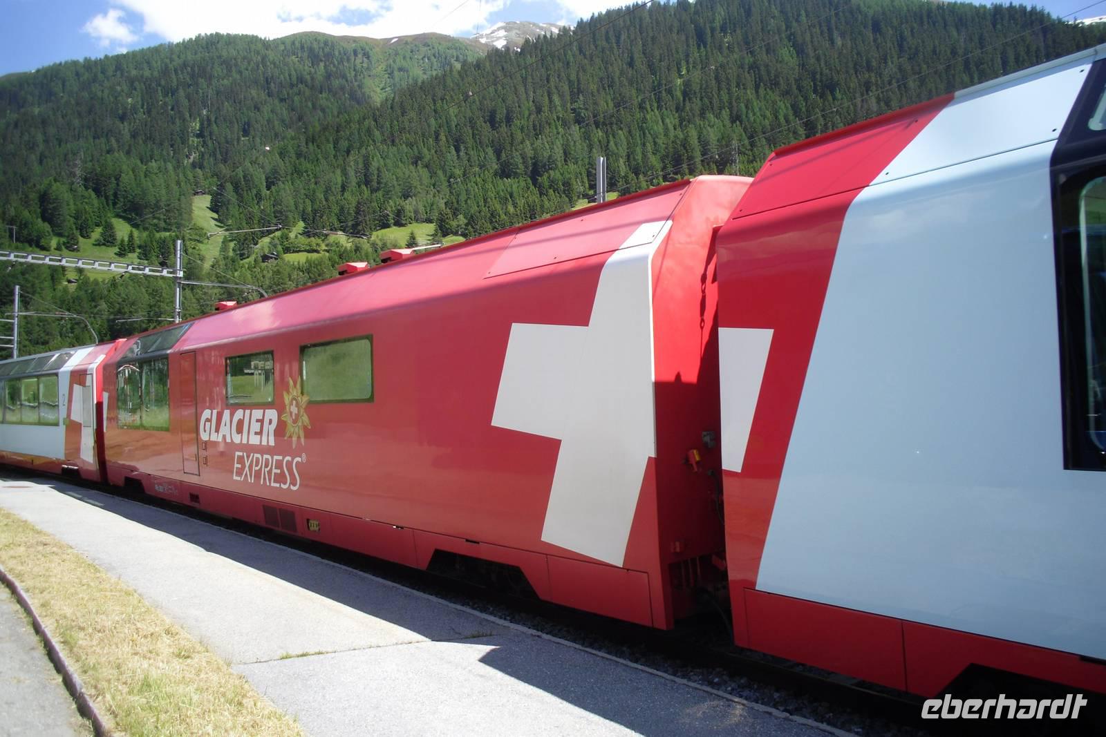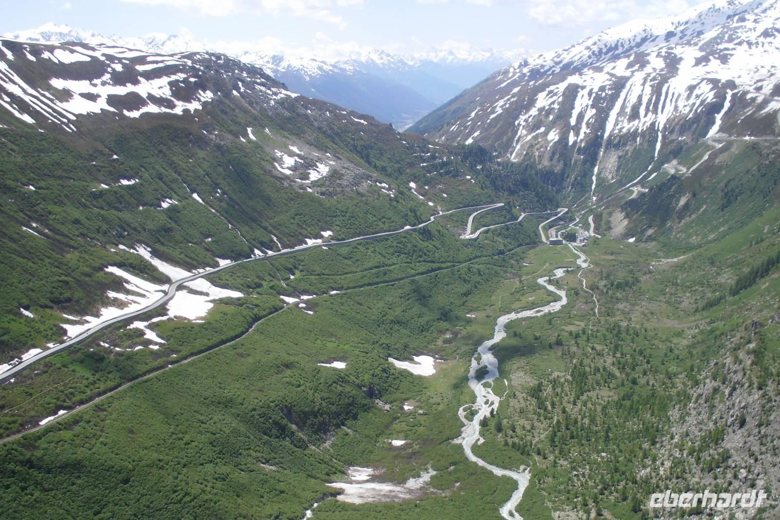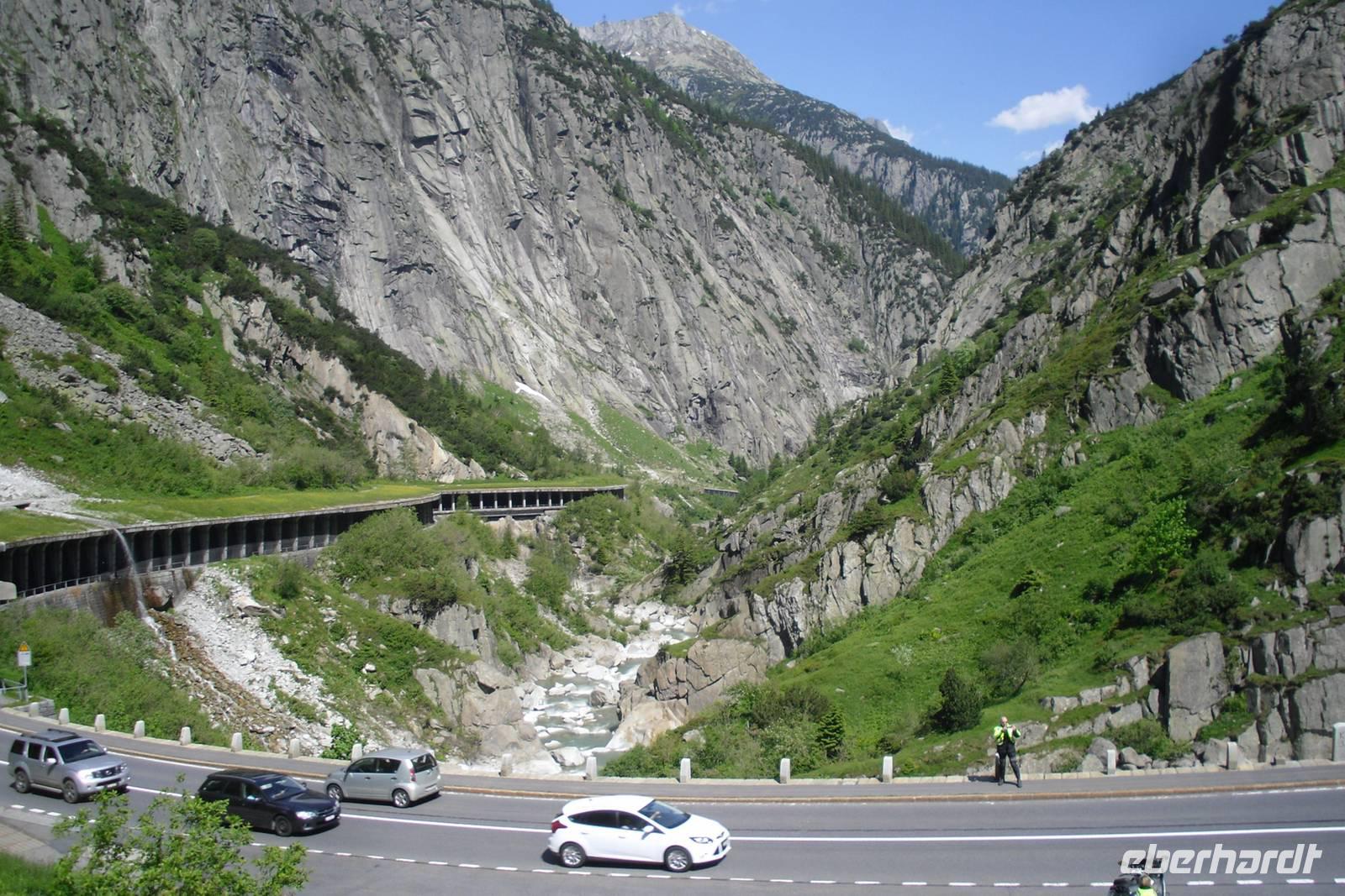 Heute führte uns unsere Reise weiter in den Kanton Wallis. Mit unserem Bus ging es zunächst in Richtung Vierwaldstätter See, benannt nach den vier Waldstätten - Uri, Schwyz, Unterwalden und Luzern. Unser erstes Ziel war Altdorf, wo sich die legendäre Apfelschussszene der Tell-Erzählung zugetragen haben soll. Heute erinnert das Tell-Denkmal an diese Begebenheit. Unsere Route führte uns nun weiter in Richtung Schöllenen-Schlucht, eine von steilen Granitwänden gebildete Felsschlucht der Reuss zwischen Göschenen und Andermatt. An der sagenumwobenen Teufelsbrücke machten wir unseren nächsten Halt. Der Name stammt von einer Saumpfadbrücke des 15. Jahrhunderts an dieser Stelle. Über Andermatt und das Urserental fuhren wir mit dem Bus bis Realp. Hier nun begann die herrlich Straße hinauf zum 2.436 Meter hohen Furkapass. Dieser verbindet den Kanton Uri mit dem Kanton Wallis und ist die Wasserscheide zwischen Nordsee und Mittelmeer. Auf unserer Fahrt konnten wir übrigens auch die Gleisanlagen der alten Furka-Bergstrecke sehen. Diese wurde mit Eröffnung des Furka-Basistunnels vor über 30 Jahren leider stillgelegt und einer großen Initiative von Bahnfreunden ist es zu verdanken, dass man hier mittlerweile wieder mit alten Dampfloks fahren kann - übrigens Bahnromantik pur...! Nicht nur auf der Furka-Passhöhe, sondern auch am Rhonegletscher planten wir bei heute übrigens tollem Wetter einen Aufenthalt ein. Der Rhonegletscher ist heute noch knapp 10 Kilometer lang und war vor allem im 19. und Anfang des 20. Jahrhunderts aufgrund seiner damals noch weit ins Tal hinunter reichenden Zunge eine große Touristenattraktion. Er schmilzt nunmehr seit der Mitte des 19. Jahrhunderts kontinuierlich und Experten gehen davon aus, dass er in etwa 100 Jahren beinahe vollständig verschwunden sein wird. Einige Gäste aus unserer Gruppe waren vom Rückgang des Gletschers geschockt, da sie vor ein paar Jahren schon einmal hier gewesen waren - man kann es wahrlich mit bloßem Auge erkennen! Anschließend besuchten wir am Nachmittag dann noch eines der herrlichen Walliser Dörfer im Obergoms, nämlich Niederwald. Dieser Ort besitzt einen hübschen kleinen Ortskern mit typischen Walliser Holzhäusern und ist übrigens auch der Geburtsort von Cäsar Ritz, dem Begründer der Hotelkette Ritz-Carlton. Schließlich erreichten wir Mörel, um von dort mit der Gondelbahn in nur etwa 10 Minuten hinauf zur 1.905 Meter hoch gelegenen Riederalp zu fahren. Die Riederalp ist ein herrliches Hochplateau und liegt im Bereich der seit 2002 zum UNESCO-Weltnaturerbe erklärten Bergregion Jungfrau-Aletsch-Bietschhorn. Unser Ziel und Übernachtungsort für die nächsten zwei Nächte war das Hotel Art Furrer Resort. Dieses liegt direkt und sehr idyllisch am höchstgelegenen 9-Loch-Golfplatz Europas und bietet eine einmalige Aussicht auf die atemberaubende Walliser Bergwelt. Hier oben muss man sich einfach wohlfühlen...! Die Riederalp ist übrigens autofrei, hier fahren nur Elektroautos!