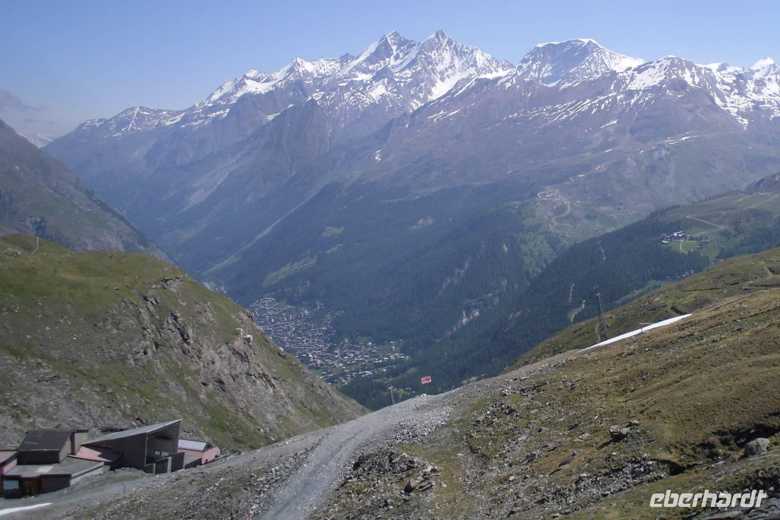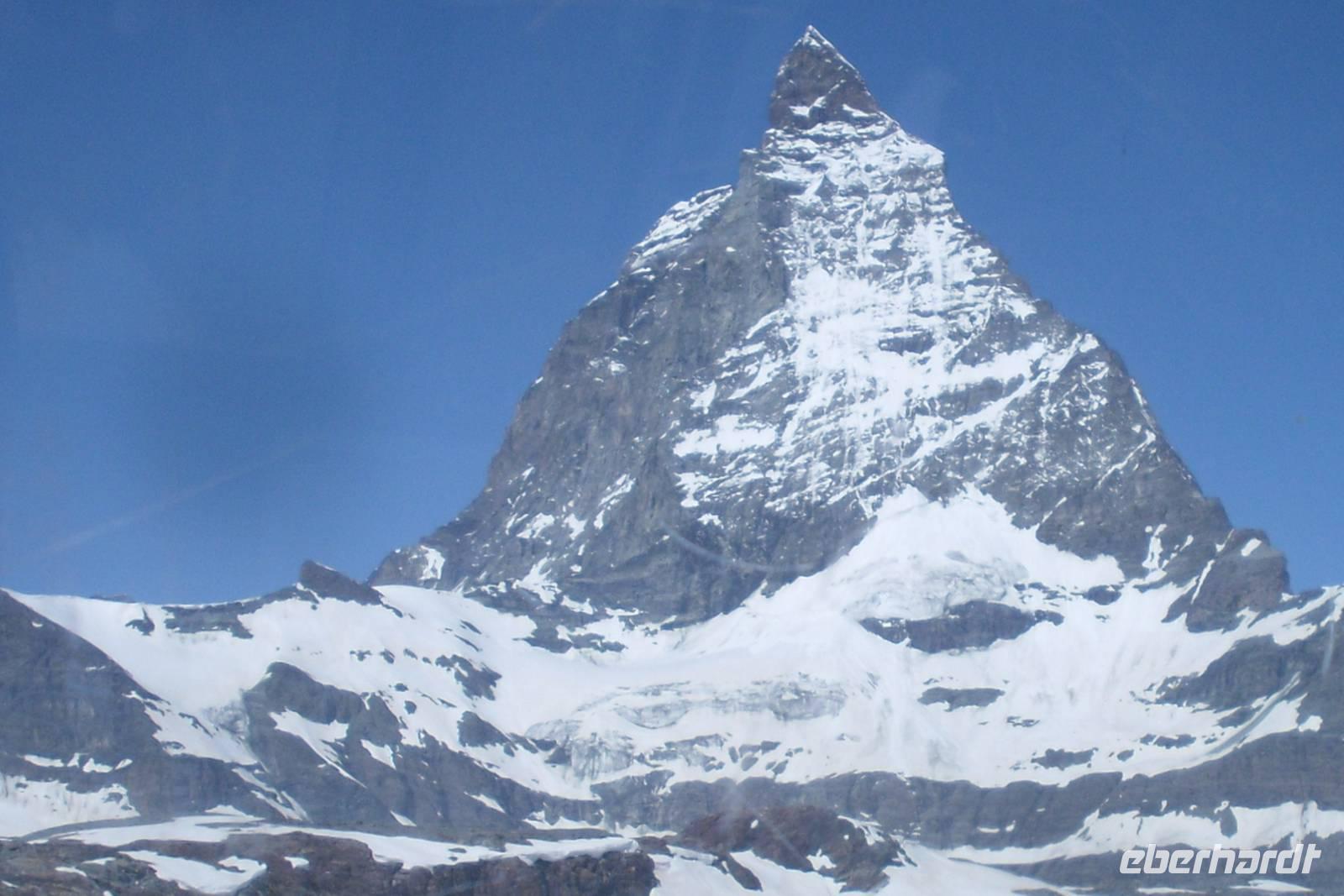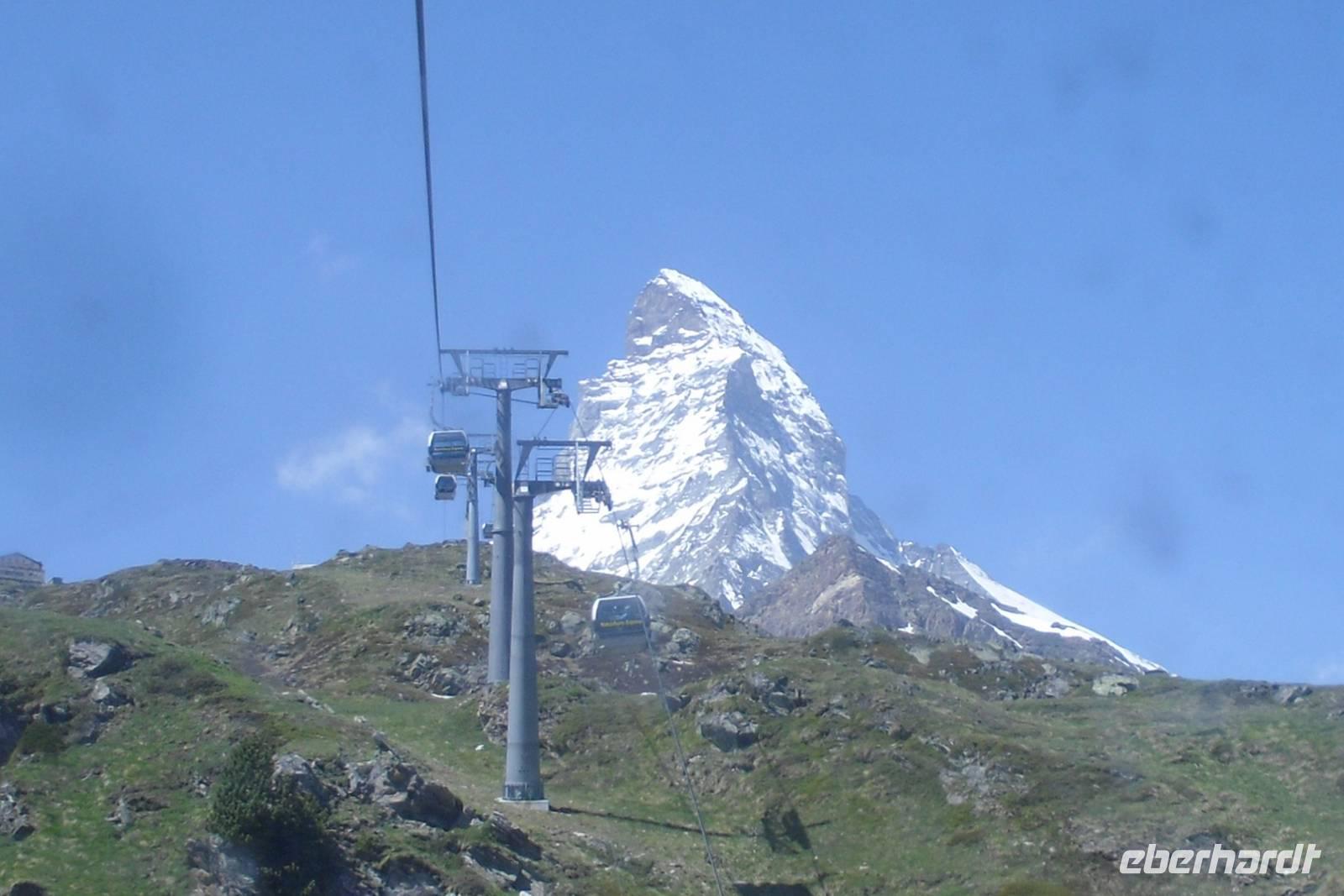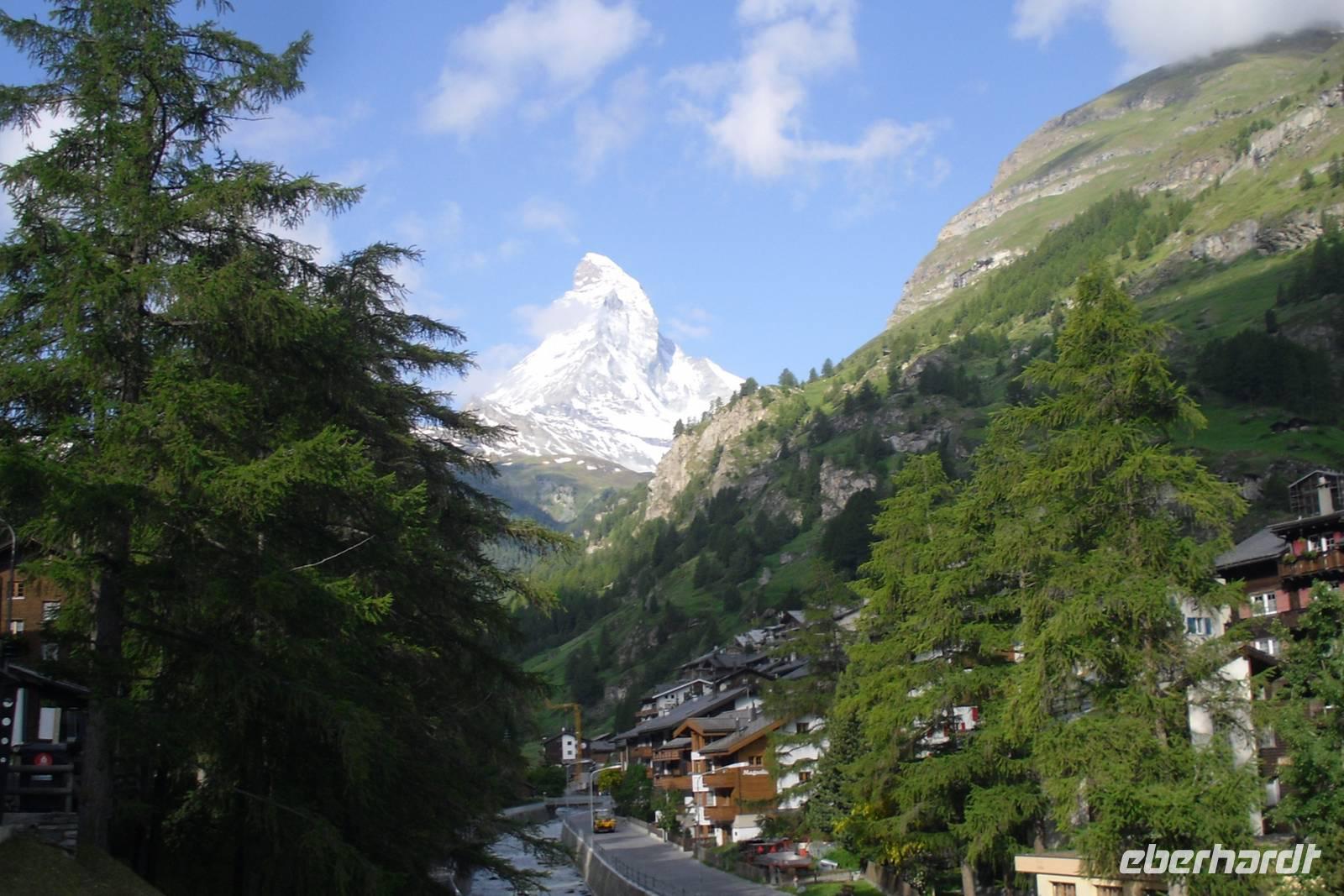 Heute hieß es nun schon wieder Abschied nehmen von der Riederalp - das fiel uns bei den heutigen regnerischen Witterungsverhältnissen zum Glück nicht allzu schwer! Mit der Gondelbahn erreichten wir am Vormittag bereits Mörel im Rhonetal und von dort fuhren wir nunmehr mit unserem Bus nur wenige Kilometer weiter. Brig war unser erstes Ziel, der Hauptort des deutschsprachigen Wallis. Wahrzeichen ist der Stockalperpalast, der bedeutendste barocke Palastbau der Schweiz. Der bekannte Handelsherr Kaspar Jodok Stockalper ließ im 17. Jahrhundert diesen großzügigen und geräumigen Wohnsitz erbauen. Die drei Türme, die weithin sichtbaren Markenzeichen des Palastes, sind mit vergoldeten Zwiebeln versehen worden und beherrschen den Hof. Ihnen wurden die Namen Melchior, Kaspar und Balthasar verliehen, was eine Anspielung auf die Heiligen Drei Könige sein sollte. Der höchste Turm trägt den Namen Kaspar, was natürlich auch auf den Erbauer selbst zurückzuführen ist. Unsere Fahrt durch das Rhonetal setzten wir anschließend bis Visp fort, weiter dann durch das Mattertal bis Täsch - hier war nun für unseren Bus wieder einmal Endstation! Mit dem Pendelzug erreichten wir den Bahnhof des autofreien Zermatt. Vom Bahnhof in Zermatt waren es nur etwa fünfzehn Gehminuten bis zum Hotel "Beau Site" - und unterwegs sahen wir dabei schon einige Sehenswürdigkeiten des Ortes. Um unser Gepäck brauchten wir uns auch hier nicht zu kümmern, denn dieses wurde bereits am Bahnhof in Täsch in Gepäckwagen der Bahn umgeladen und mit dem Pendelzug gelangte es dann zum Bahnhof Zermatt bzw. letztendlich wurde es mit dem hoteleigenen Elektroauto in Zermatt abgeholt. Nach einem reichhaltigen Abendessen als 4-Gänge-Menü im Hotel "Perren" ging ein weiterer Tag voller unvergesslicher Eindrücke zu Ende.