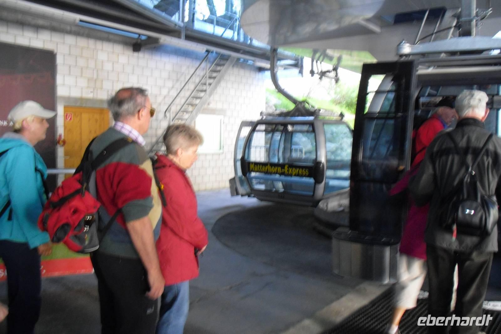 Die Berge um Zermatt wollten nunmehr von uns erkundet werden. Heute stand erst einmal das 3.103 Meter hoch gelegene Rothorn auf unserem Programm. Zuerst fährt man hier mit einer modernen unterirdischen Standseilbahn von Zermatt aus zur Sunnegga hinauf und schließlich erreicht man über die Station "Blauherd" nach insgesamt etwa vierzig Minuten die oberste Station Rothorn-paradise. Ein tolles Panorama mit Matterhorn, Dufourspitze, Gornergrat und vielen anderen Gipfeln erwartete uns, noch dazu kam der Blick auf den Findelgletscher. Der Himmel war zwar teilweise bedeckt, aber die markantesten Gipfel erkannten wir trotzdem ganz gut! Einige von unseren Gästen nutzten diesen Tag auch für Wanderungen im Rothorn-Gebiet - besonders empfehlenswert ist hier der Blumenweg, der am besten von der Station Blauherd aus zu begehen ist. Auf diesem Themenweg trifft man auf verschiedene Themenposten, welche die Zermatter Flora und deren Eigenschaften präsentieren. Kurz vor dem Abendessen trafen wir uns alle im Hotel wieder. Alle Gäste waren bester Laune und bei einem schmackhaften Abendessen ließen wir diesen erlebnisreichen Tag ausklingen.
