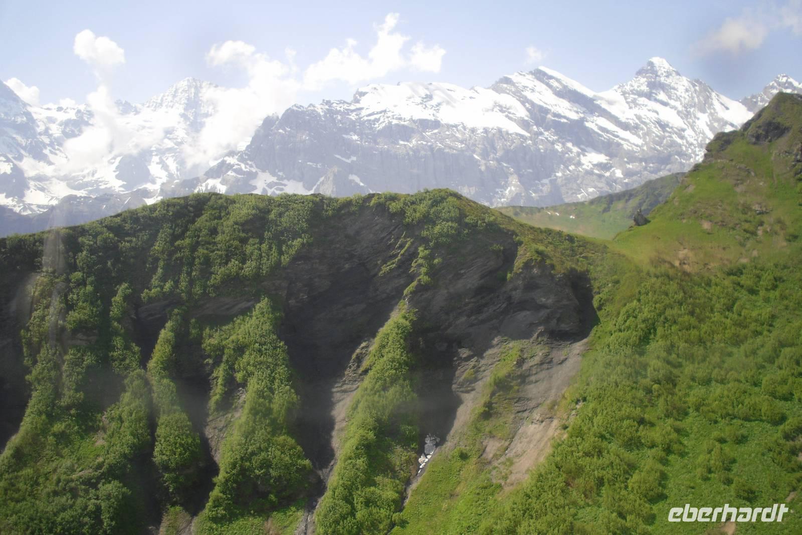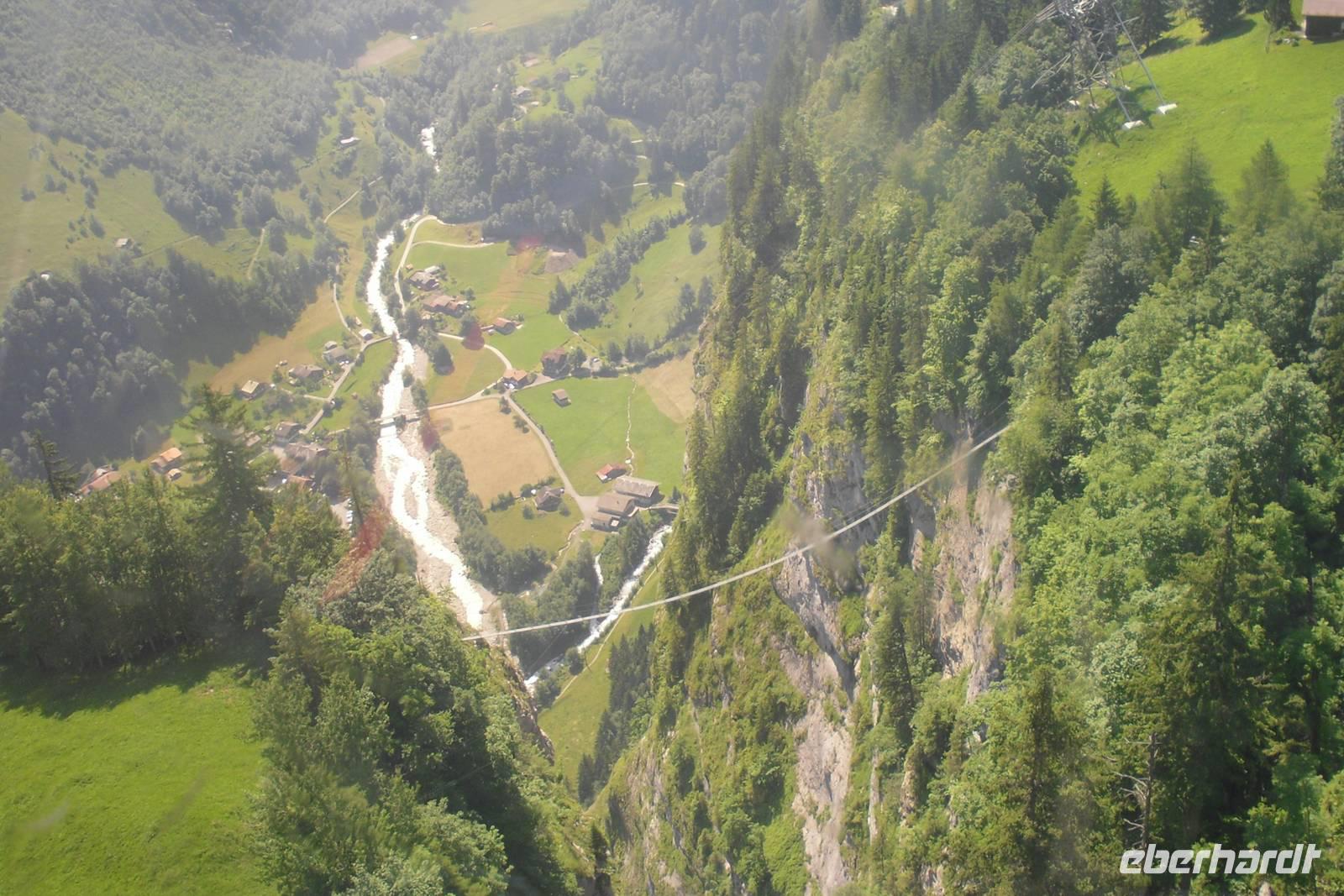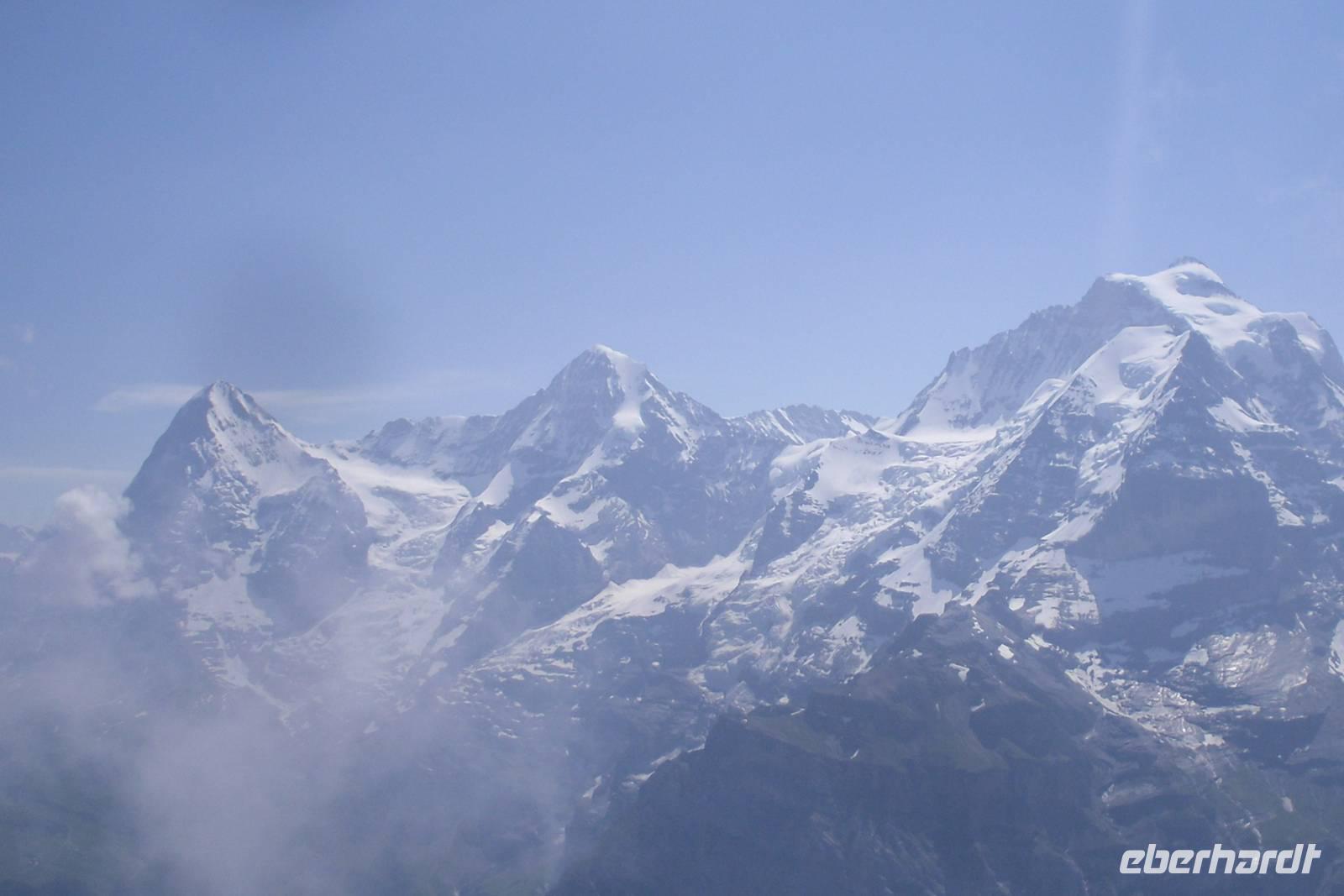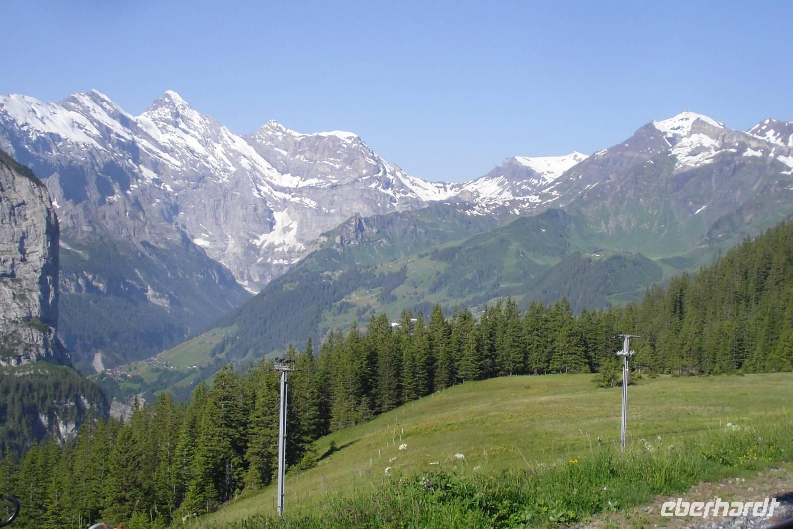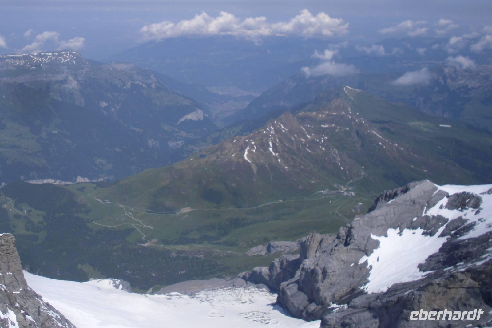 Unsere Zeit in Zermatt war nun auch schon wieder vorüber. Gut gelaunt und mit herrlichen Gebirgserlebnissen im Gepäck fuhren wir am Morgen mit dem Pendelzug nach Täsch, wo uns unser Bus mitsamt unserem Gepäck bereits erwartete. Endlich wieder mal Bus fahren..., zwei Tage mit mehr oder weniger langen Wanderstrecken lagen hinter uns - einigen war die Müdigkeit anzusehen. Wir fuhren ins Rhonetal und dann weiter über Brig und Fiesch im Goms zum 2.165 Meter hohen Grimselpass. Auf der Passhöhe machen wir einen längeren Halt und die meisten von uns besuchten den hiesigen Murmeltierpark. Weiter ging es nun vorbei am Grimsel- und Räterichsbodensee hinunter ins Haslital, vorbei an der Aareschlucht und Meiringen ins Holzschnitzerdorf Brienz. Am Nachmittag bummelten wir hier am Brienzer See entlang oder besuchten eine der zahlreichen Holzschnitzereien. Entlang der Norduferseite des Brienzer Sees gelangten wir nach Interlaken. Am Nachmittag erreichten wir schließlich unser Hotel "Carlton-Europe". Hier sollten wir nun die letzten drei Nächte unserer Traumreise durch die Schweiz verbringen. Interlaken, zwischen dem Brienzer und dem Thuner See gelegen, war einfach der ideale Ausgangspunkt für unser Ausflugsprogramm in die Jungfrau-Region.