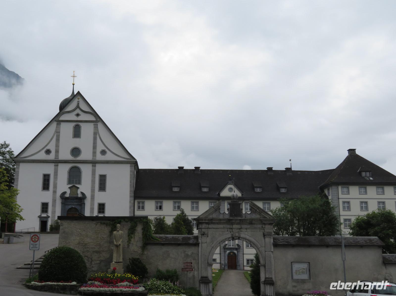 Engelberg ist als beliebter Ferienort im Sommer wie im Winter bekannt. Leider begrüßen uns heute dicke Wolken und Regen. Wir spazieren zunächst durch die kleine Fußgängerzone zum beeindruckenden Benediktinerkloster in Engelberg. Dieses Kloster wurde bereits Anfang um 1120 gegründet. Damals hörten der Klostergründer Konrad Sellenbüren und ein Abt Engelsstimmen am Berg Hahnen. Daraus entstand der Name Engelberg nach den Engeln am Berg. Diesen Namen tragen seither das Kloster und das zugehörige Dorf. Heute leben noch 26 Benediktiner-Mönche im Kloster. Sie betreiben unter anderem ein Gymnasium, eine Schreinerei und eine Gärtnerei. Hier befindet sich ebenfalls die einzige Schaukäserei der Schweiz in einem Kloster. Bereits im 16. Jahrhundert bagannen die Menschen in Engelberg Käse herzustellen. Esther die Käsesomilaire erklärt uns sehr anschaulich, wie der gute Käse in Form einer Glocke entsteht. Einige Gäste helfen dabei tatkräftig. Natürlich dürfen wir auch die verschiedenen köstlichen Käsesorten probieren.