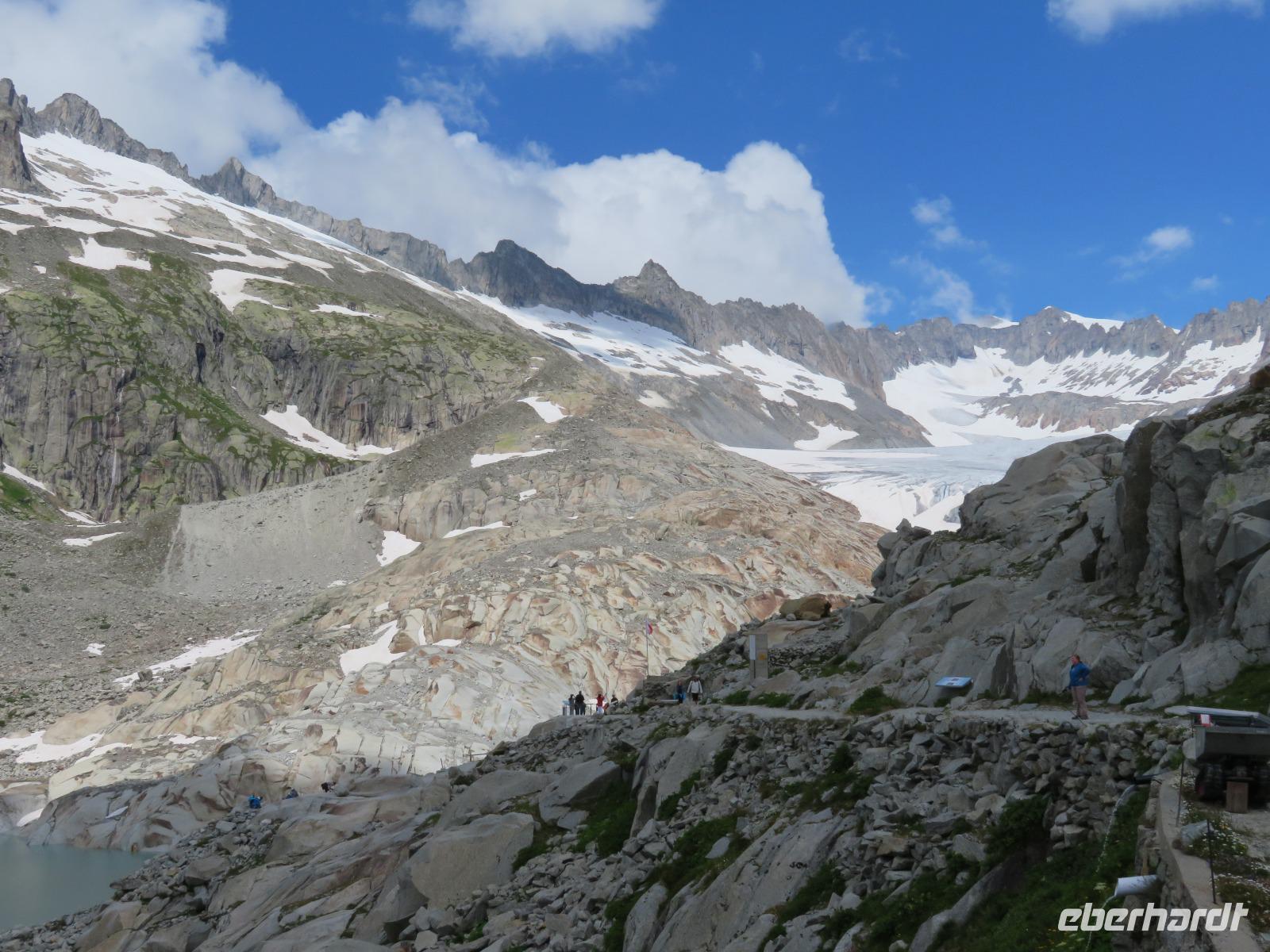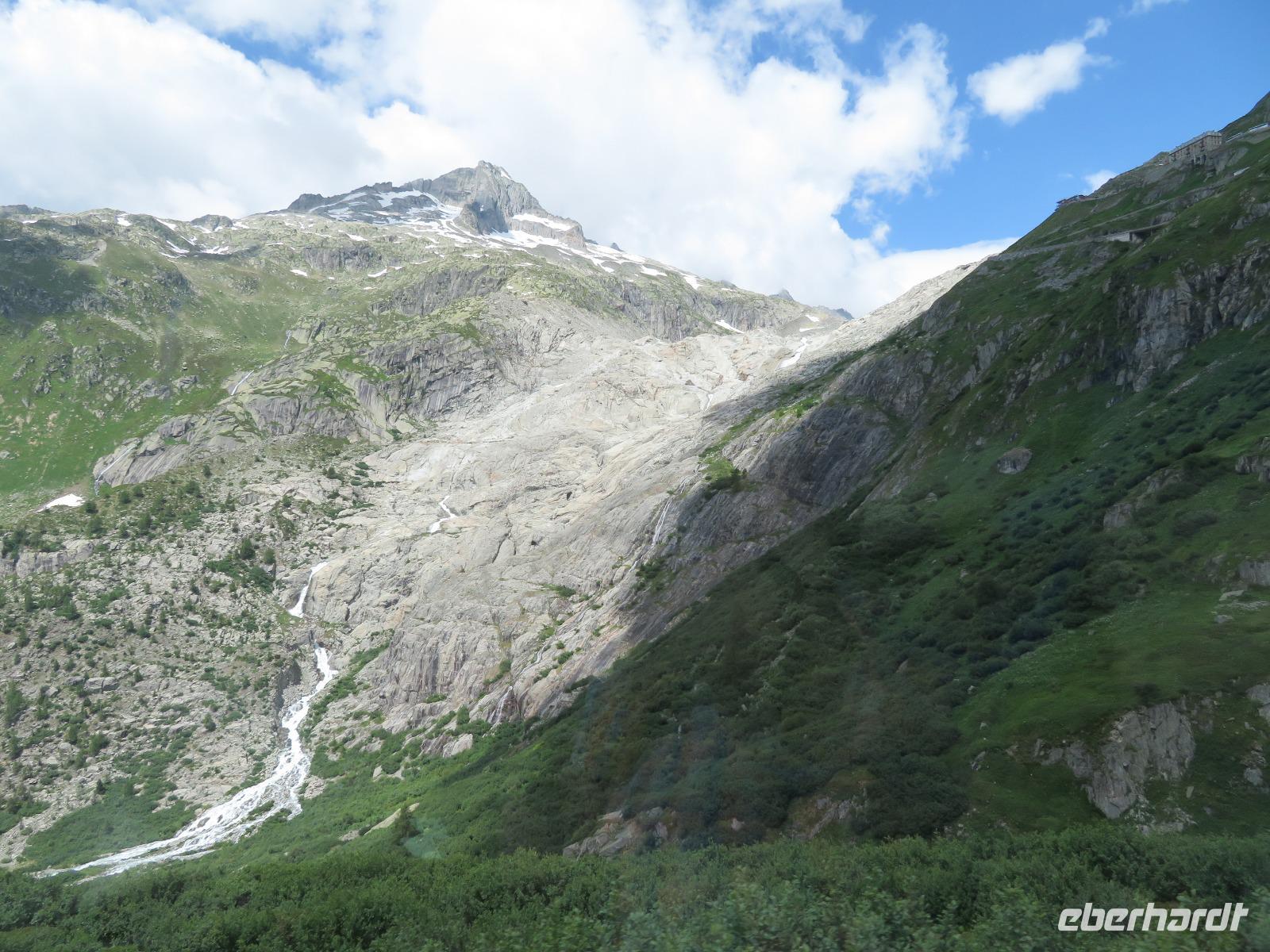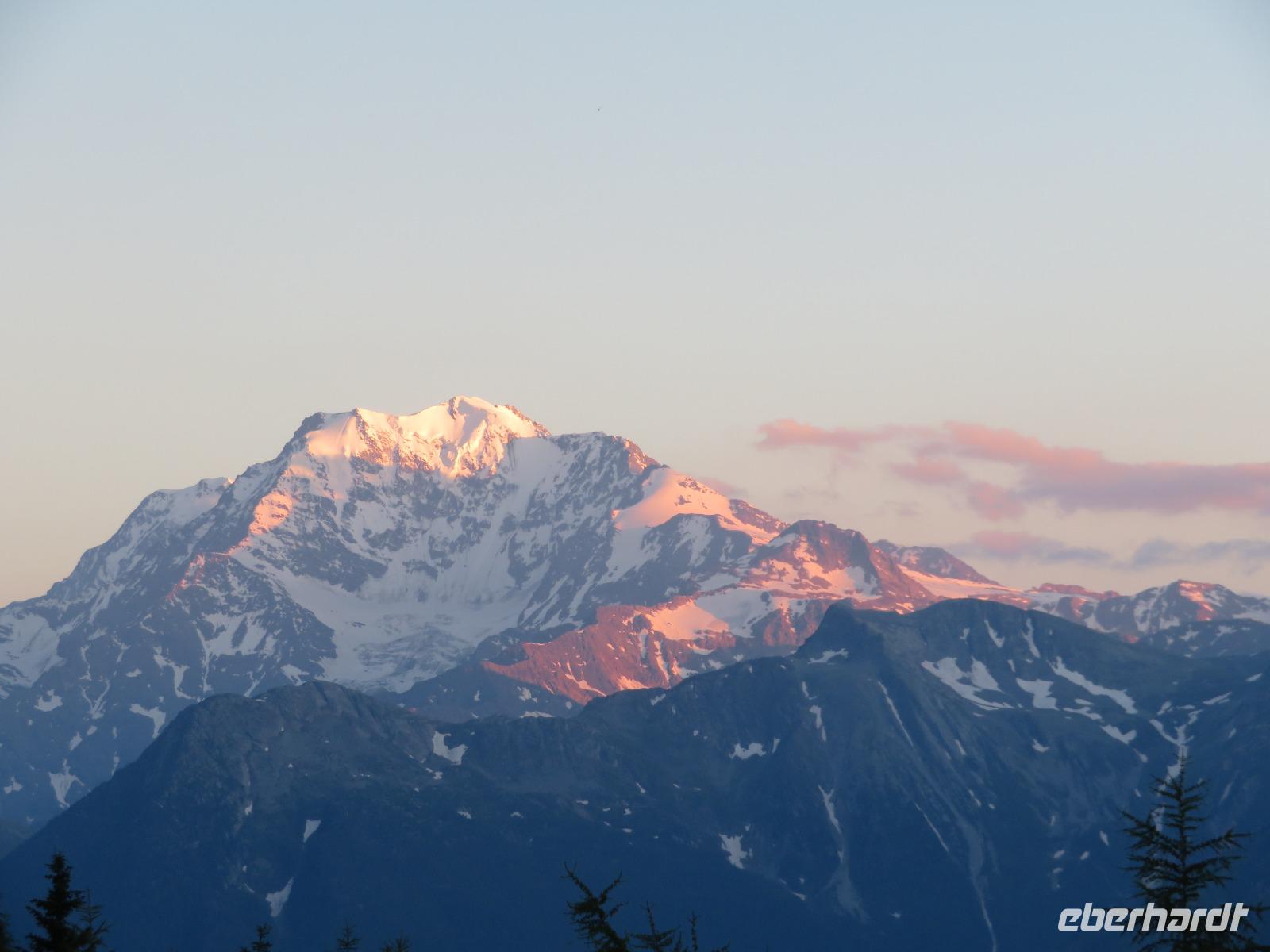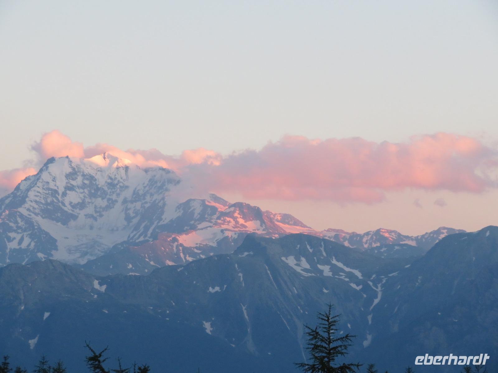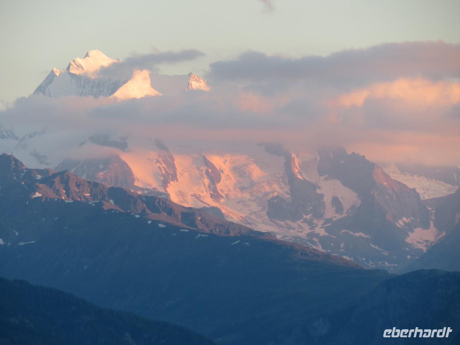 Engelberg verabschiedet sich von uns mit einigen Wolken, aber es war trocken. Wir fahren zunächst entlang des Urner Sees nach Altdorf. Am Urner See befinden sich die Orte, an denen sich die Tellsgeschichte abgespielt haben soll. In Altdorf am mittelalterlichen Wohnturm steht das Tell-Denkmal. Hier hat sich die Apfelschuss-Szene der berühmten Tell-Geschichte zugetragen. Der Wohnturm mit der Abbildung des Schächentals bildet den Hintergrund für Wilhelm Tell mit seinem Sohn Walther. Wir spazieren zum Tell-Spielhaus. Die Tellsgeschichte hat eine über 500jährige Tradition. Das Tellspielhaus wurde Ende des 19. Jahrhunderts speziell für die Aufführungen der Tellsgeschichte errichtet. Heute wird das Stück aller 2 Jahre aufgeführt. Unsere Fahrt geht zunächst weiter auf der alten Gotthard-Straße zur Schöllenenschlucht. Wir sehen die Teufelsbrücke. Der Legende besagt, dass die Bewohner des Ursenentales eine Brücke über die Schlucht bauen wollten. Sie baten den Teufel dabei um Hilfe. Dieser wollte helfen. Er verlangte aber die Seele des ersten Lebewesens, welches die Brücke überquert, als Lohn. Dabei erwartete der Teufel natürlich, dass ein Mensch als erster über die Brücke kommt. Aber die schlauen Erbauer der Brücke liessen als erstes einen Ziegenbock über die Brücke gehen und der Teufel zog ab. Nun fahren wir nach Andermatt und durch das Ursenen- und das Hospental zur Furkastraße. Über die sehr beeindruckende Serpentinen geht es für unseren Bus nun auf 2.431 Meter Höhe auf den Furkapass. Auf der Passhöhe machen wir unsere Mittagspause. Bei wunderbarer Sicht erleben wir das beeindruckende Panorama der Walliser Alpen. Anschließend fahren wir hinab ins Wallis. Am Hotel „Belvedere" am Rhônegletscher legen wir nochmals einen Stopp ein. Wir sehen den Gletscher, der sich in den letzten sieben Jahren über 110 Meter zurückgezogen hat. Vor zehn Jahren sah man die Gletscherzunge noch von der Straße aus. Jetzt sieht man den Gletscher nur noch in der Ferne und es hat sich ein großer See gebildet. Weiter führt uns unsere Route durch Gletsch, dem Ort wo die Grimselpass- und die Furkapass-Straße zusammentreffen. Wir fahren hinunter nach Oberwald und ins Goms. Das weite Tal ist landschaftlich sehr schön. Traditionelle Dörfer mit den typischen dunklen wettergegerbten Häusern aus dunklem Lärchenholz prägen das Bild des Goms. Auch die Spycher mit den Mäuseblatten, kreisrunde Steinplatten, die auf Holzpfosten liegen und so die Vorräte vor den kleinen Nagern schützen, säumen die Straße. Am Nachmittag erreichen wir Mörel. Hier ist Talstation der Luftseilbahn auf die Riederalp. Unser Gepäck wird auf Gepäckwagen verladen, der Bus geparkt und schon bringt uns die Gondel auf die Riederalp in 1.920 Metern Höhe. Es ist eine Terrasse hoch über dem Rhônetal gelegen. Das Art Furrer Resort ist unsere Unterkunft für die nächsten zwei Tage. Der Tag endet mit stimmungsvollen Aussichten in die Berge im Abendlicht - wir sehen den Dom und das Matterhorn.