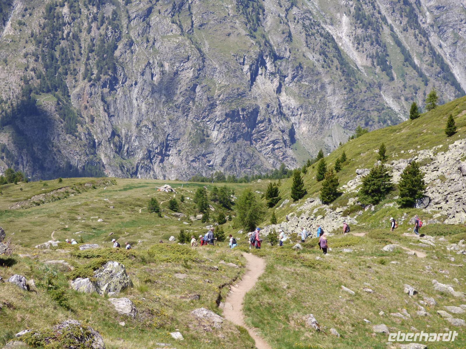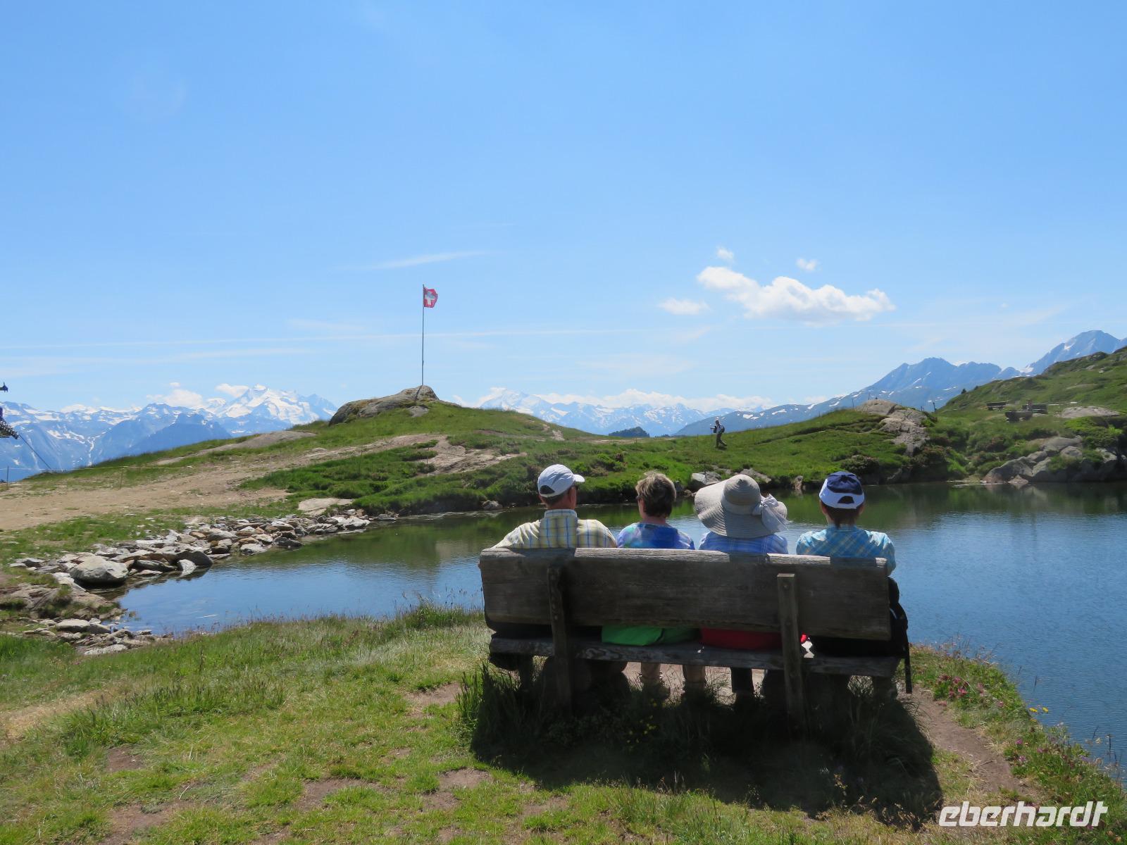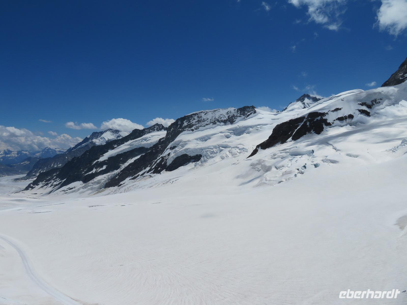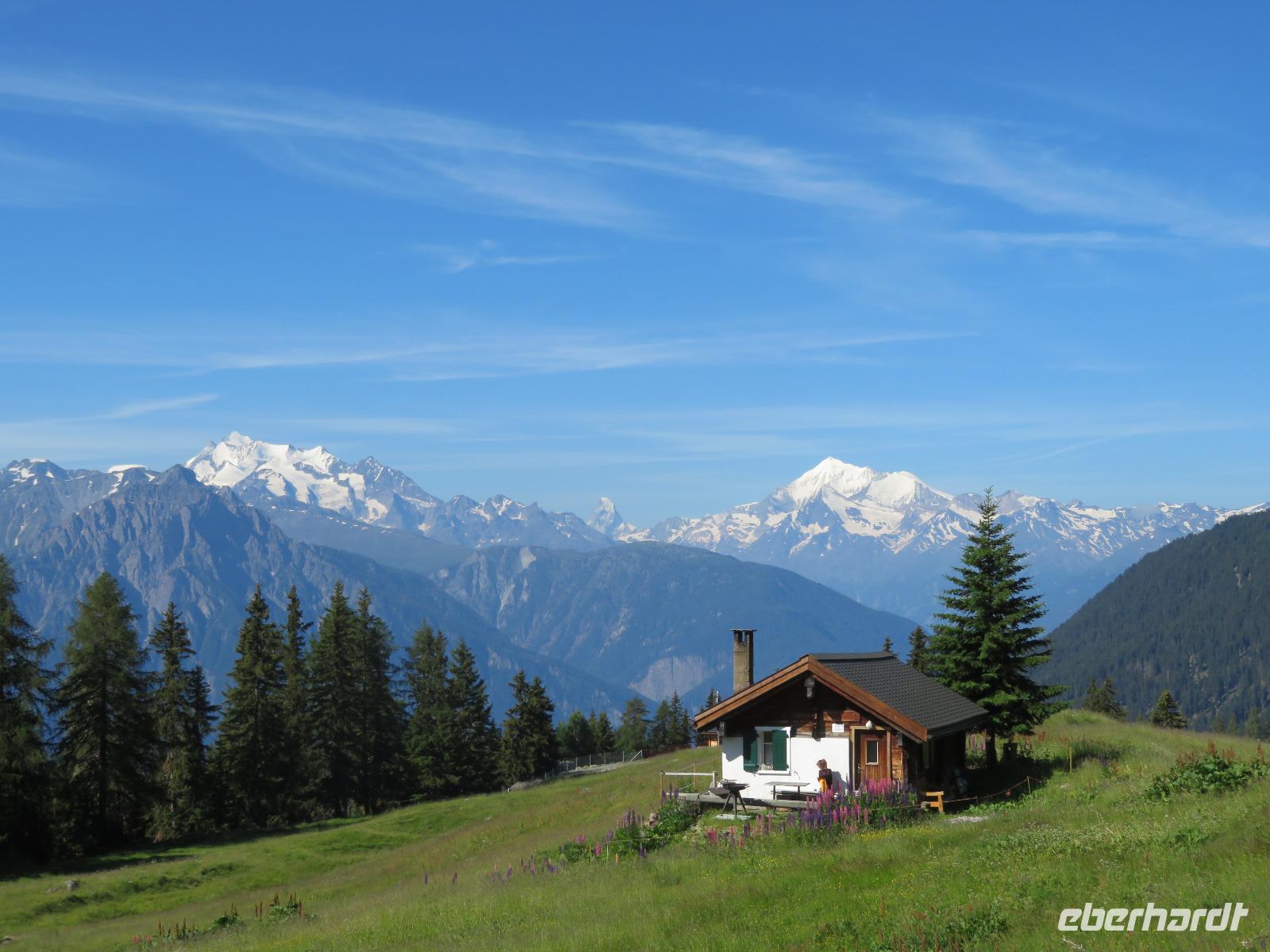 Uns weckt heute strahlender Sonnenschein. Wir freuen uns auf einen erlebnisreichen Tag. Gemeinsam wandern wir Gästen über die Promenade Richtung Bettmeralp. Schon während der Wanderung bewundern wir das fantastische Panorama und erfreuen uns an der herrlichen Pracht der bunten Bergblumen. Die Gondelbahn bringt uns auf das Bettmerhorn auf 2.647 Meter Höhe. Wir befinden uns mitten im UNESCO-Weltnaturerbe „Jungfrau-Aletsch-Bietschhorn". Zunächst stockt uns der Atem im Angesicht des einmaligen Panoramas, welches uns auf der Terrasse des Restaurants eröffnet. Vom Mont Blanc über das markante Weisshorn und natürlich das Matterhorn, den Dom und die Monte Rosa Gruppe mit der Duforspitze bis hin zum Monte Leone liegt die gesamte Alpenkette im strahlenden Sonnenschein ohne ein Wölkchen am Himmel vor uns. Wir können uns kaum von diesem Anblick loslösen. Immer wieder klicken die Auslöser der Kameras. Aber es gibt ja noch mehr zu sehen. Wir gehen zum Aussichtspunkt hoch über dem Aletschgletscher. Er leigt uns zu Füßen und wir sehen auch hier, wie sich die Gletscher zurückziehen. Der Aletschgletscher ist mit 23 Kilometern der längste Gletscher der Alpen. In der Ausstellung „Faszination Aletsch" erfahren wir interessante Details zum Gletscher. Nach einem ausgiebigen Aufenthalt auf dem Berg fahren wir mit der Gondelbahn zur Bettmeralp. Einige Gäste nutzten den Tag für individuelleTouren zurück zur Riederalp. Mit einer größeren Gruppe wandern wir vorbei am Bettmersee zurück zur Gopplerlücke. Auch dabei genießen wir immer wieder die einzigartige Bergwelt. Durch bunte Wiesen mit wilden Orchideen, Alpenklee, Habichtskraut, Bergmagariten, Alpen-Glockenblumen und anderen Blumen führt uns die Tour über den Herrenweg zur Riederalp. Wir alle genießen diese schöne Wanderung. Auf der Riederalp angekommen, fahren wir mit der Gondelbahn auf die Moosfluh. Vom Aussichtspunkt bietet sich uns aus einer ganz anderen Perspektive ein toller Blick auf den Aletschgletscher und dessen Gletscherzunge. Den restlichen Nachmittag nutzen wir zum Entspannen im Hallenbad oder um einfach vom Balkon aus die Blicke und Gedanken in die wunderschöne Bergwelt schweifen zu lassen. Wir sind uns einig: Ein herrlicher Tag geht zu Ende!