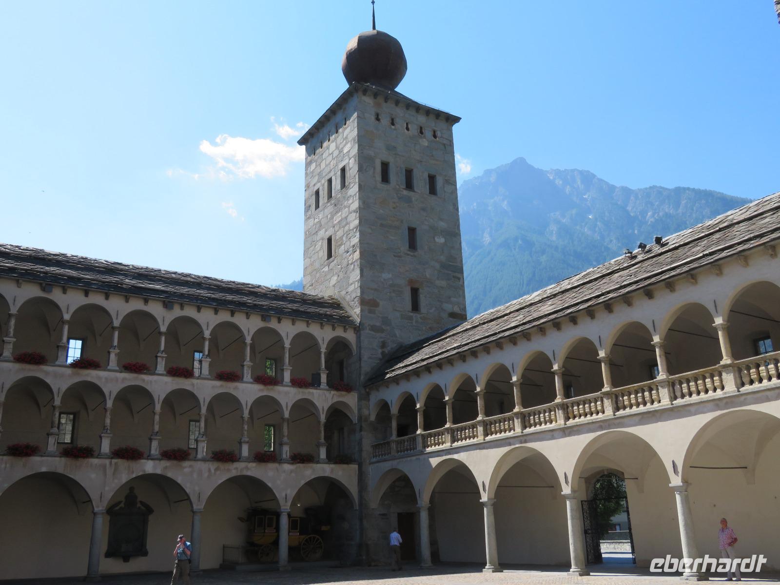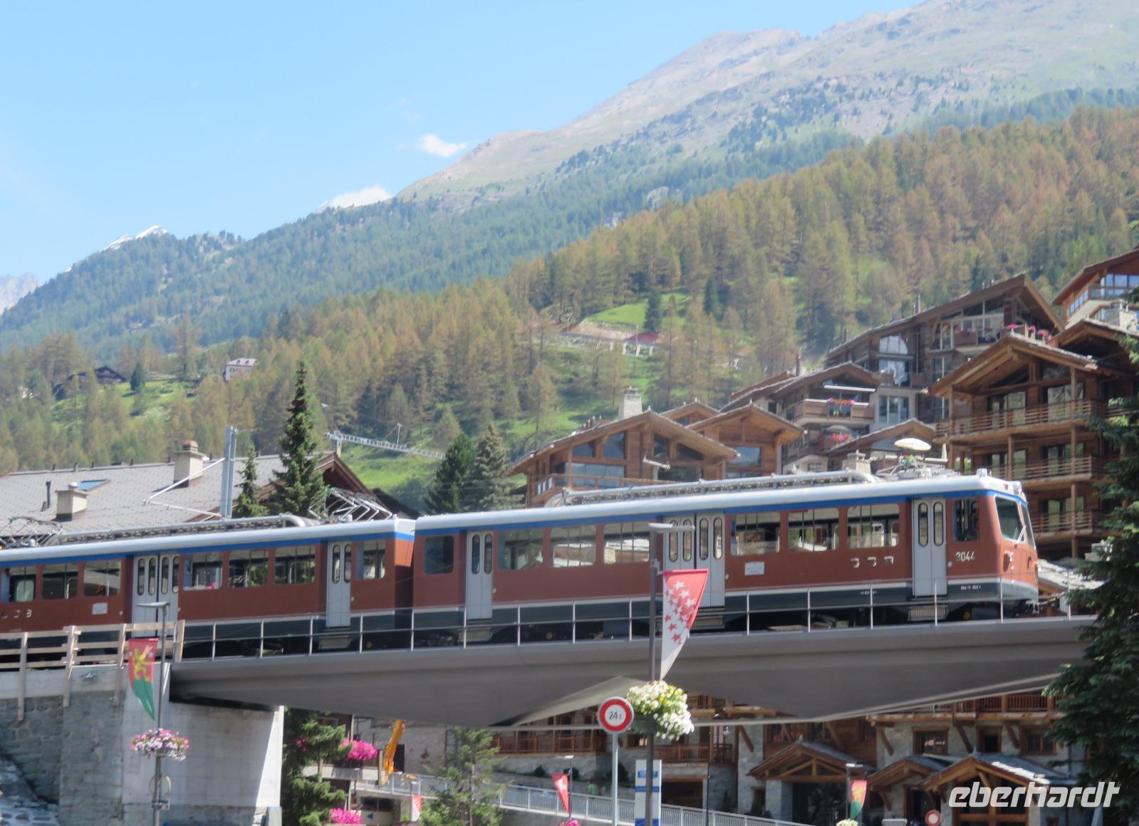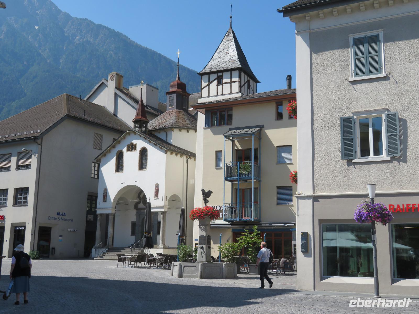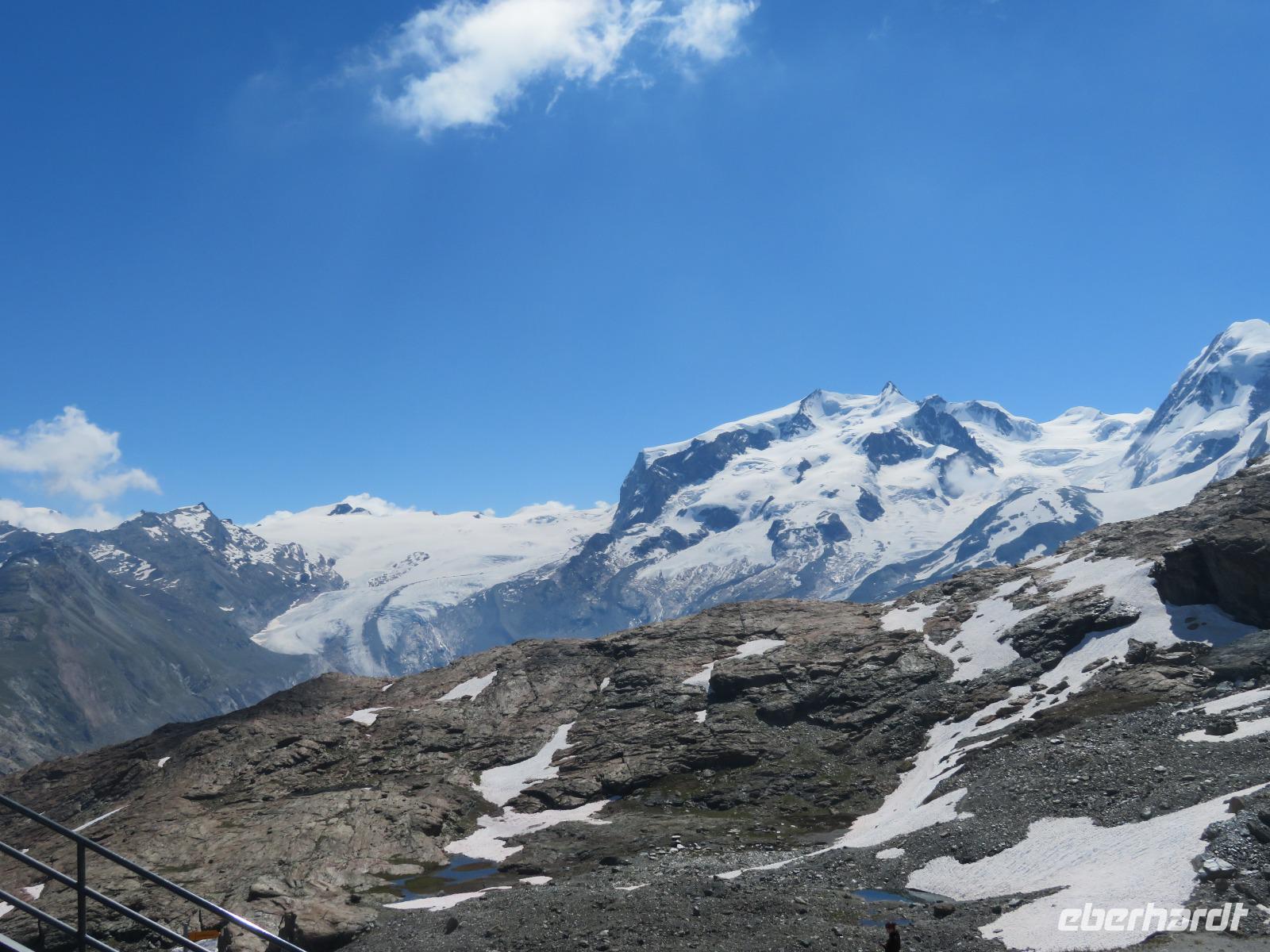 Am Morgen geniessen wir nochmals die einmalige Ruhe auf der Riederalp. Wir lassen unsere Blicke bei herrlichstem Sonnenschein wieder über das Panorama der Walliser Alpen schweifen. Heute heißt es Abschied nehmen von der Alp. Wir fahren mit der Seilbahn hinab ins Rhônetal. Ingo, unser Chauffeur hatten bereits das Gepäck verstaut und so starten wir in Richtung Brig, dem Hauptort im Oberwallis und wichtigem Verkehrsknotenpunkt. Das imposante Stockalperschloss prägt die Stadt. Kasper Joder Stockalper war im 17. Jahrhundert der mächtige Herrscher über die Stadt und die Region. Man nannte ihn auch „Fugger der Alpen". Sein Hauptgeschäft war der Handel mit allem was sich kaufen und verkaufen ließ. Er baute den Seidenhandel über den Simplonpass und den Salzhandel aus. Die Säumerpfade - frühere Handelspfade -wurden auf Weisung Stockalpers ausgebaut. Mit dem Stockalperschloss erschuf sich der Fugger und der Stadt ein Denkmal. Die drei Zwiebeltürme, sind benannt nach den heiligen drei Königen Kaspar, Melchior und Balthasar. Sie sind weithin zu sehen. Wir spazieren durch die Altstadt. Unsere Reise führt uns nun nach Raron. Hier befindet sich hoch auf einem Felsen die Burgkirche aus dem 16. Jahrhundert. An der Südwand der Kirche fand der bekannte deutsche Dichter Rainer Maria Rilke seine letzte Ruhe. Er lebte und arbeitete viele Jahre im Wallis und wollte hier auch seine letzte Ruhe finden. Unterhalb der Kirche entstand 1974 eine Felsenkirche . Dieser statten wir einen Besuch ab. Anschließend fahren wir durch das Mattertal nach Täsch. Unser Gepäck wird wieder in Container umgeladen und mit dem Zug erreichen wir den berühmten Ferienort Zermatt am Fuße des Matterhorns. Nur eine kleine Wolke liegt noch vor dem Berg der Berge. Wir bummeln zum Hotel Perren und beziehen unsere gemütlichen Zimmer. Da das Wetter so traumhaft ist, entschließen wir uns noch auf den Gornergrat zu fahren. Mit der Zahnradbahn geht es auf 3.089 Meter. Dabei zeigt sich uns das Matterhorn von seiner schönsten Seite. Wir sehen die Monte Rosa Gruppe mit Castor und Pollux, das Breithorn und das Kleine Matterhorn. Tief unter uns befindet sich der Gornergletscher und wir erkennen die Monte Rosa Hütte. Wir sind fasziniert von der herrlichen Bergwelt. Nur schwer können wir uns losreißen. Mit der Zahnradbahn geht es wieder nach Zermatt zurück. Den Tag beenden wir mit einem ausgezeichneten Abendessen.