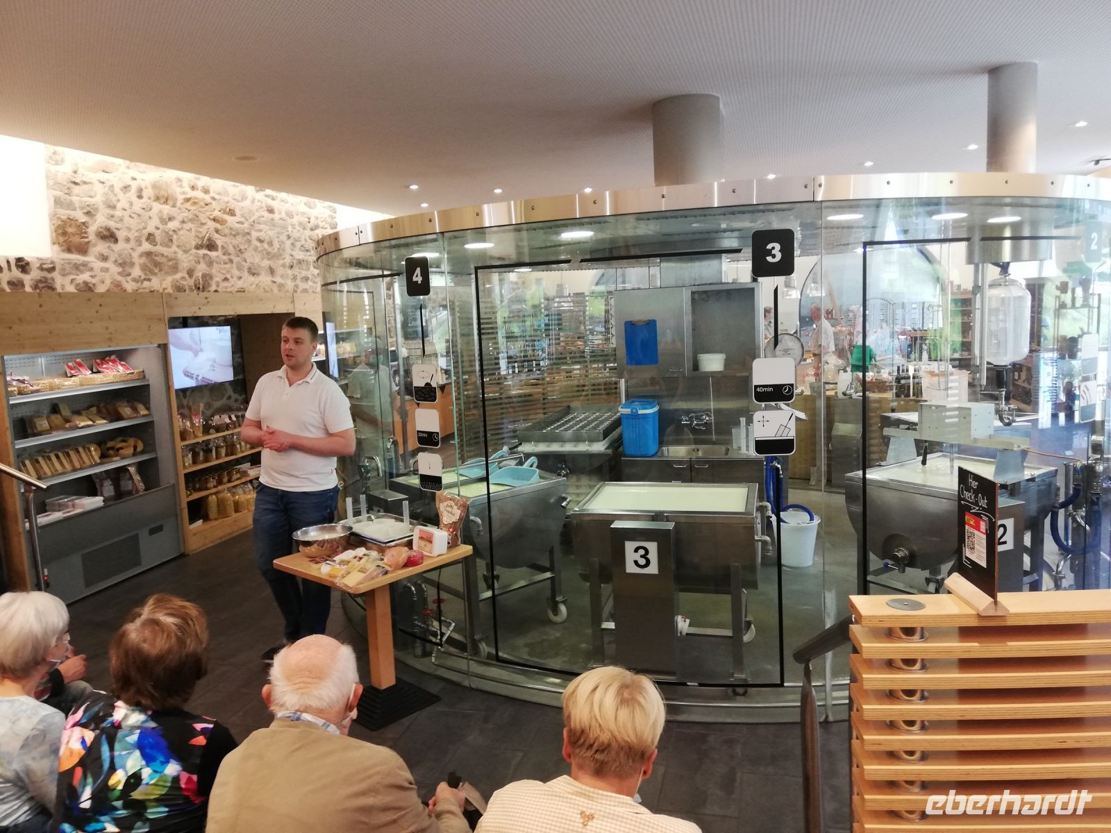 Engelberg hat mehrere Sehenswürdigkeiten, mit dem der Ort die Touristen anzieht. Als Erstes möchte ich natürlich den Titlis mit seinen 3200 Metern nennen. Zum anderen die größte Naturschanze der Welt, die Gross-Titlis-Schanze. Engelberg ist auch für sein Benediktinerkloster bekannt. In die Klosteranlage führt uns heute Morgen der erste Weg. Wir besuchen die Klosteranlage, die eine der größten in der Schweiz ist. In der Kirche finden wir die größte Orgel der Schweiz mit über 9000 Pfeifen. Wir besuchen im Klosterkomplex eine Schaukäserei und erfahren, dass schon im 12. Jahrhundert würziger Alpkäse in Engelberg produziert wurde. Wir erleben die Produktion in einen Raum r, mit Glas, Stahl und hellen Holz in dem historischen Gebäude des Klosters. Einige Gäste von uns durften bei der Produktion des Käses "mitarbeiten".Danach
