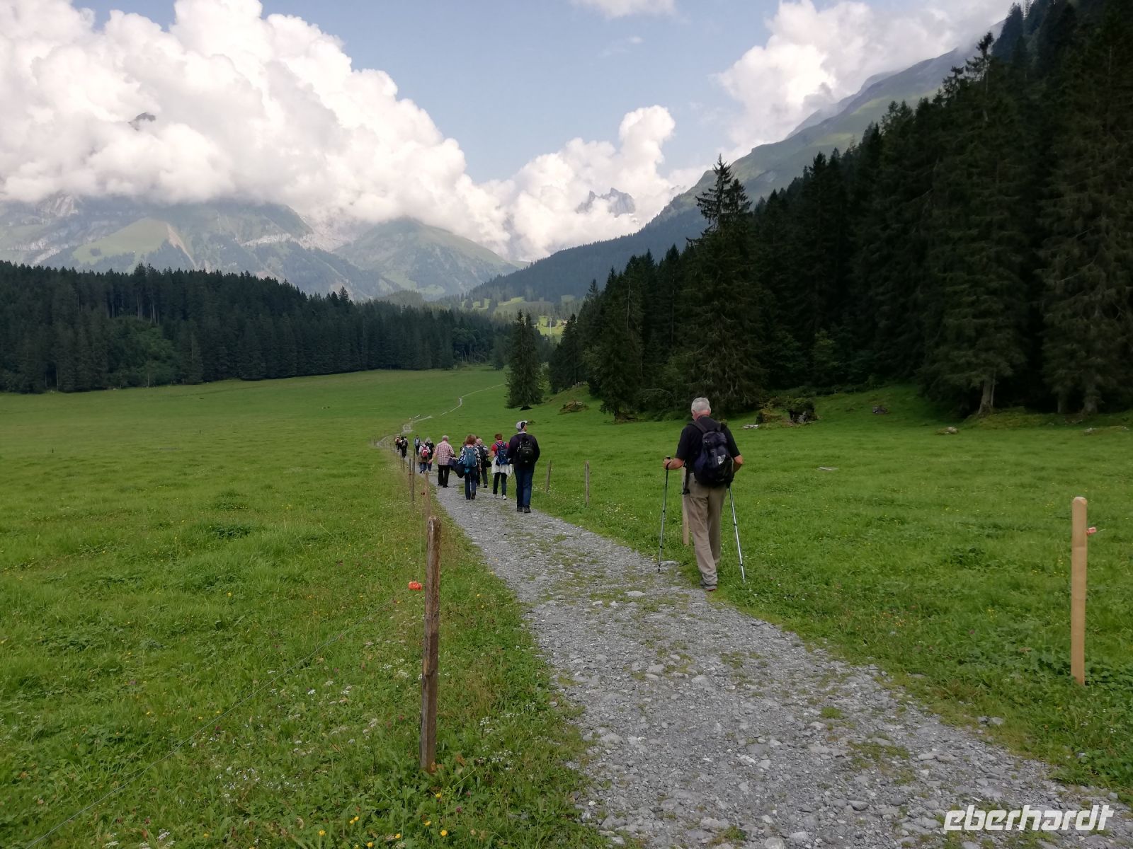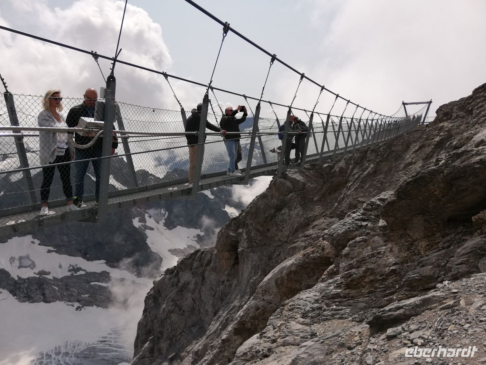steht nun unser erster Traumgipfel, der Titlis, auf dem Programm. Unsere Gruppe wandert entlang der Engelberger Aa zur Bergstation. Nun geht es hoch hinaus - auf den Titlis (3239 Meter). Mit der Gondelbahn fahren wir zunächst bis Trübsee. Weiter mit der Gondelbahn nach Stand und von dort mit der Rotair-Bahn (während der Fahrt dreht sich die Kabine einmal um die eigene Achse) auf den Gipfel. Es gibt mehrere Möglichkeiten die Zeit auf den Berg zu verbringen. Es gibt z.B. die Eisgrotte und danach sollte es gleich zum Titlis Cliff Walk gehen. Er ist ein besonderes Erlebnis. In 3041 Meter Höhe; 500 Meter Abgrund und 150 Schritte Herzklopfen, ist die Hängebrücke ein besonderes Erlebnis. Später treffen sich die Wanderfreunde am Trübsee. Diese Wanderung sollte man nicht verpassen. Sehr liebevoll ist der Blumenweg mit Informationen zu den Pflanzen ausgestattet. Aber nicht nur diese Hinweise sind interessant, sondern auch die Fahrt mit der Gondel-und Standseilbahn nach Engelberg zurück. Am Abend wird der Tag bei dem guten Abendessen ausgewertet und mit Freude erwarten wir den nächsten Tag.