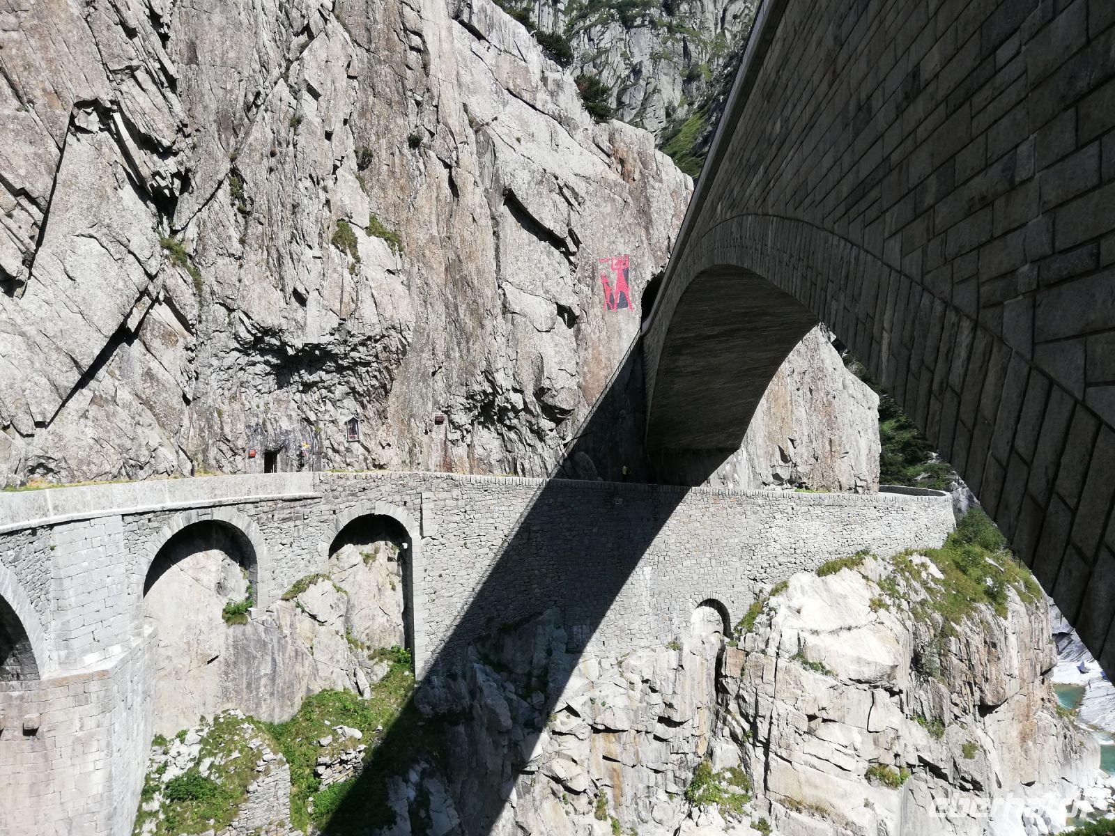 Wir fahren weiter und das Wetter ist besser als die Vorankündigung. Nachdem alle Koffer im Bus verstaut sind, geht es zum Vierwaldstätter See. Geografisch, aber auch gefühlsmäßig liegt der See im Herzen der Schweiz. Er ist Schauplatz der Tell Legende. Dazu gehört die Hohle Gasse in Küssnacht oder auch die Tellplatte. Wir halten auf den Weg nach Fieschertal in Altdorf am Telldenkmal. In der kurzen Pause bleibt Zeit um sich im Ort etwas umzusehen. Dann geht es aber weiter entlang der alten Gotthardstrecke und der Schöllenenschlucht nach Andermatt. Bevor wir dort ankommen, halten wir an der 1956 eröffneten Teufelsbrücke, an der wir den 30 m hohen Wasserfall der Reuss überqueren. Im Vergleich zu den vorangegangen Reisen haben wir eine ganz besondere Fahrt. Wir fahren von Andermatt über den Gotthardtpass in den Kanton Tessin und von da aus über den Nufenenpass in den Kanton Wallis. Ein besonderes Erlebnis und eine beeindruckende Sicht in die Berge. In Ulrichen beenden wir diese Pässefahrt und kommen nach einer kurzen Zeit im Hotel Alpenblick in Fieschertal an, in dem wir schon erwartet werden.