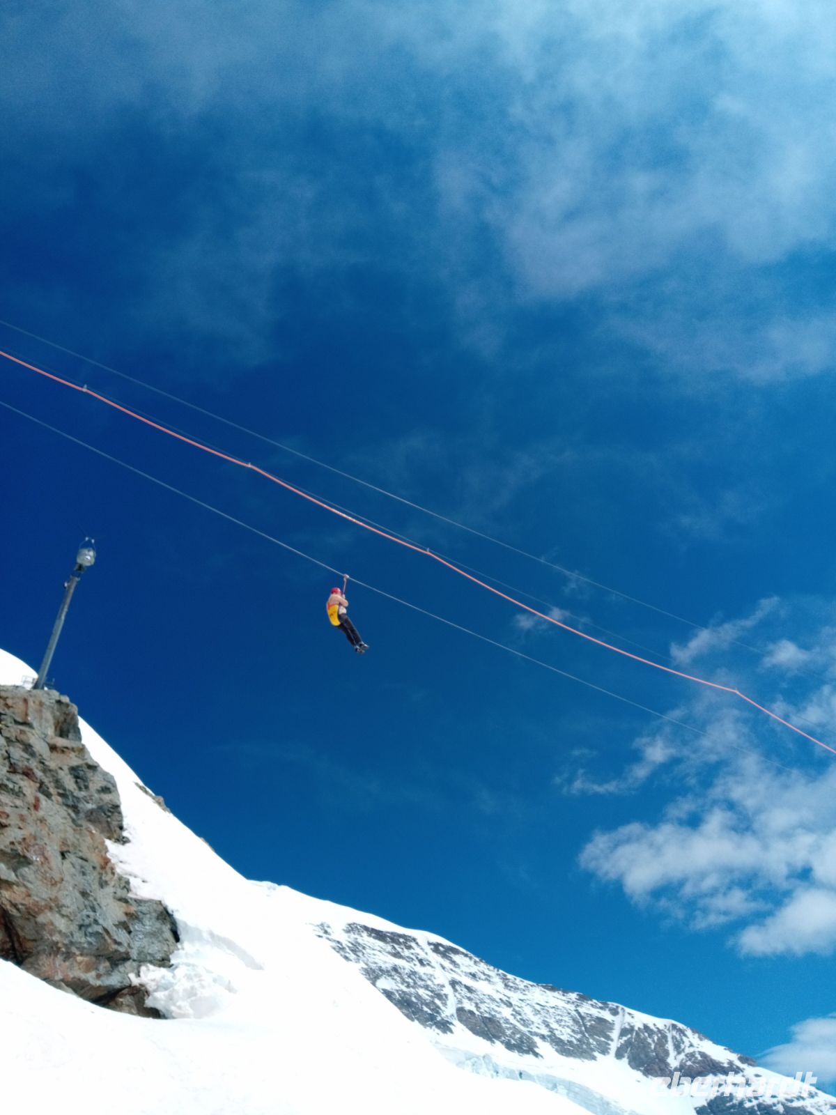 Und wieder steht ein Highlight auf unserem Programm: Die „Jungfrau“ (4.158), der dritthöchste Berg der Schweiz. Wir werden bis zum Jungfraujoch (3.454 m) vordringen und haben da viel zu tun: Wir lassen uns ein persönliches Zertifikat ausstellen, dass wir die höchstgelegene Eisenbahnstation Europas, eröffnet 1912, besucht haben. Dann erreichen wir mit Topgeschwindigkeit das Sphinx-Observatorium auf 3.571 m Höhe; an klaren Tagen kann man hier sogar die Vogesen und den Schwarzwald sehen. Es geht weiter zum Eispalast und Gletscherplateau und die besonders Wagemutigen sind mit dem „Tyrolienne“ an einem gesicherten Seil 250 m über die Gletscherwelt geflogen.