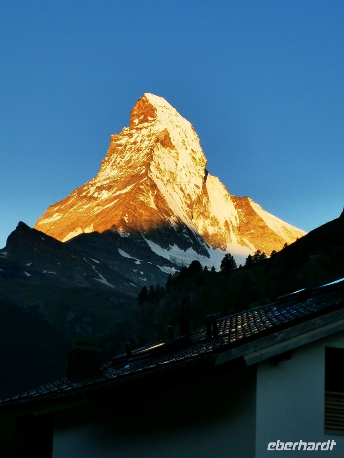 Dann kam unser gemeinsamer Spaziergang durch Zermatt: Auf der Kirchbrücke haben wir unsere ersten Matterhorn-Fotos aufgenommen und mit dem Glück, das unserer Reisegruppe holt ist, konnten wir auch noch Fotos der meist fotografierten Ziegen der Welt schießen. Die ziehen morgens und abends durch die Bahnhofsstraße in Zermatt.