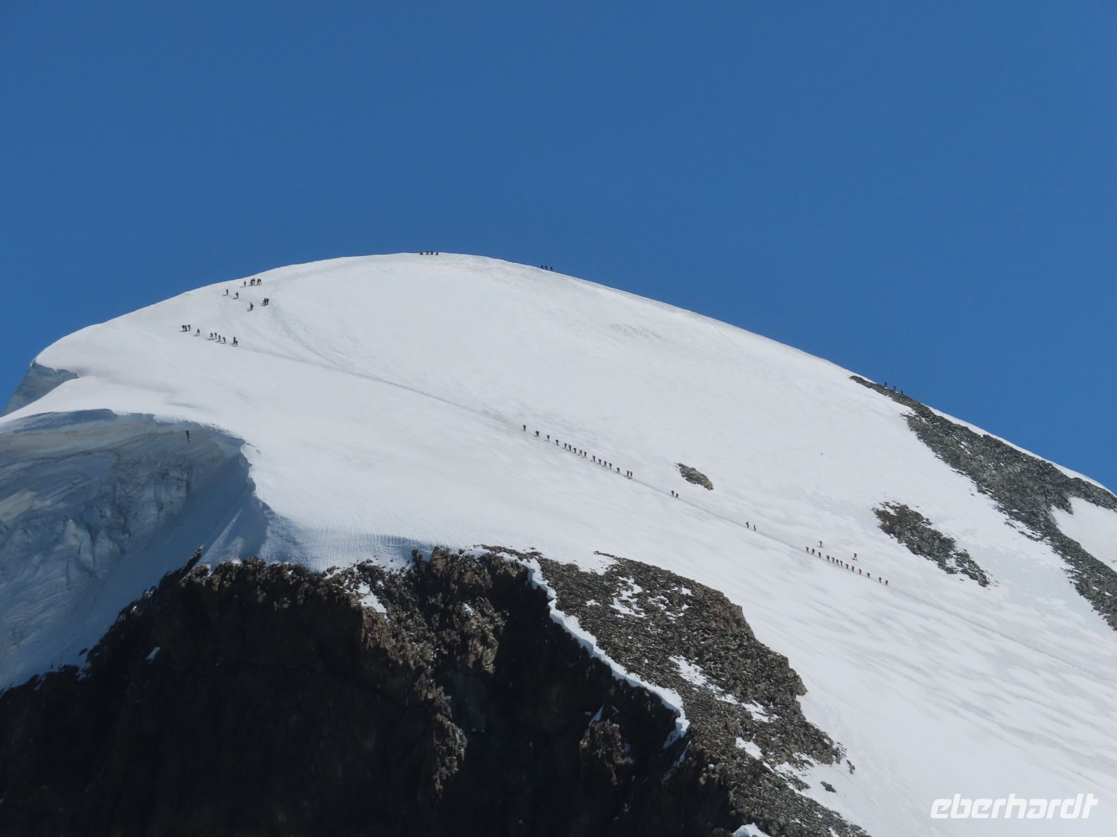 Wiederum erstrahlt das Matterhorn am Morgen im schönsten Sonnenschein. Dieser Anblick zieht wohl jeden immer wieder in seinen Bann. Wir starten zu unserem fakultativen Ausflug auf das Kleine Matterhorn mit bester Laune. Der Ortsbus bringt uns direkt vom Hotel entlang der Vispa zur Talstation des Matterhorn Express. Mit der Gondelumlaufbahn geht es zunächst über Furi nach Schwarzsee. Wir legen eine kleine Pause ein, um das Matterhorn in seiner ganzen Schönheit fotografieren und betrachten zu können. Die Hörnlihütte am Fuße des Matterhorns ist zu sehen. Diese dient als Ausgangsspunkt für die Bergsteiger, die den Berg der Berge besteigen. Uns grüßt bereits unser Ziel - das Kleine Matterhorn. Unsere Fahrt führt uns zunächst weiter bis zur Station „Trockener Steg“ fort. Auf 2.953 Metern Höhe nehmen wir uns wiederum Zeit für eine Pause. Das Panorama mit den Gipfeln der Monte Rosa Gruppe, wie Duforspitze, Castor und Pollux begeistert uns. Das letzte Stück bis zum Kleinen Matterhorn überwinden wir mit den neuen Gondeln, in denen 28 Personen Platz finden. Unser Ziel, das Kleine Matterhorn in 3.883 Metern Höhe haben wir erreicht. Jeder kann den Aufenthalt selbst gestalten. Der Lift bringt uns auf die Aussichtsplattform. Im gleißenden Sonnenlicht erstrahlen die Viertausender majestätisch in nächster Nähe. Das Breithorn mit seiner dicken Schneekappe ist mit 4.168 Metern Höhe der unmittelbare Nachbar des Kleinen Matterhorns.Er ist der am einfachsten zu besteigende Viertausender. Wir beobachten die Bergsteiger wie sie in großer Zahl am Berg unterwegs sind und über die großen Schneefelder auf dem Gletscher gehen. Wir lassen unsere Blicke schweifen. Ob Dom, der höchste Berg der komplett auf Schweizer Boden steht oder die Monte Rosa Gruppe - wir sind einfach nur fasziniert von der Schönheit der Berge! Der Mont Blanc versteckt sich leider in den herannahenden Wolken. Beim Besuch Gletscherpalast können wir das Eis nah erleben und staunen über die wunderschönen Eisplastiken. Wir spazieren über den Gletscher und sehen die Skifahrer, welche das ganze Jahr ihrem Sport nachgehen können. Nach einem schönen Aufenthalt treten wir die Talfahrt mit den Bahnen an. In Furi steigen wir aus der Gondelbahn ein. Im urigen Restaurant Furri genießen wir leckere Schweizer Gerichte. Anschließend wandern wir nach Zermatt zurück. Wir folgen einem wunderschönen Wanderweg durch Wiesen und die alten Weiler Zum See und Blatten. Diese beiden Weiler sind mit den alten Holzhäuser und Spycher noch sehr gut erhalten. Die typischen Häuser wurden bereits zum Teil vor mehreren hundert Jahre erbaut und vermitteln einen kleinen Einblick, wie die Zermatter früher gelebt haben. In Zermatt angekommen, können wir die Schwarzhalsziegen beobachten. Sie werden von der Weide geholt und durch den Ort zum Stall zurückgebracht. Die Tiere schauen da sehr neugierig die Zuschauer an. Alle gestalten den Nachmittag nach ihren Wünschen.