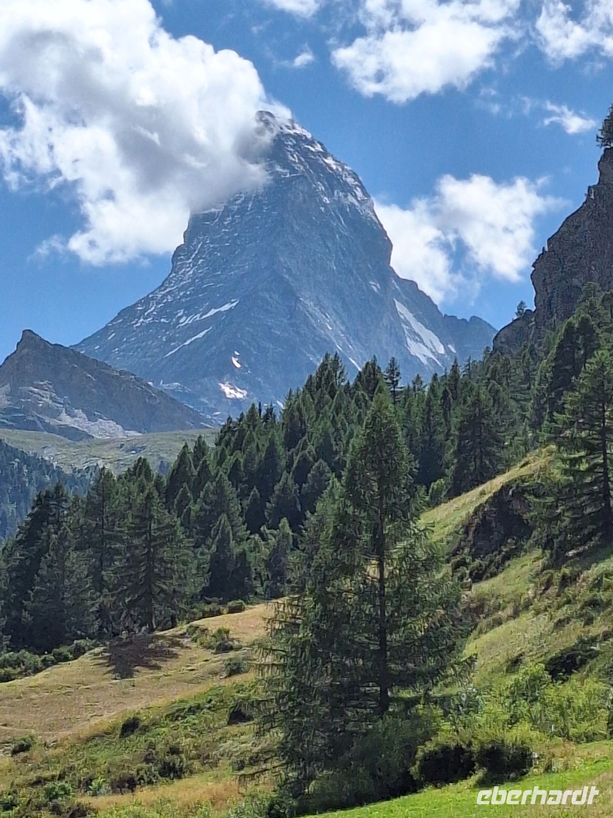 Wir gehen gemeinsam zur Talstation der Rothornbahn. Aufgrund eines Steinschlages, welcher die Anlagen der Seilbahn auf der Strecke Blauherd – Rothorn beschädigt hat, wurde der Betrieb dieser Strecke eingestellt. Wir entscheiden uns dennoch für die Fahrt bis zur Station Blauherd und unser geplantes Programm. Zunächst bringt uns die unterirdische Standseilbahn auf 2.288 Meter Höhe zur Station Sunnegga. Uns bietet sich eine einzigartige Aussicht zum Matterhorn, zu Teilen der Monte Rosa Gruppe und den anderen Viertausendern. Diese genießen wir während einer Pause. Anschließend besteigen wir die Gondelumlaufbahn zur Station Blauherd in 2.571 Metern Höhe. Auch hier eröffnet sich uns ein wunderschönes Panorama. Wir genießen dieses in vollen Zügen. Nun kann jeder selbst entscheiden, wie er den Tag verbringen möchte. Mit einem Großteil der Gäste wandern wir auf dem Blumenweg nach Sunnegga. Die Tour führt uns durch Wiesen, auf denen wir die verschiedensten Bergblumen entdecken. Auf Glockenblumen, Arnika, Alpensteinbrecht, schwarzem Kohlröschen und Teufelskralle tummeln sich immer wieder bunte Falter. Wir bleiben immer wieder kurz stehen und erfreuen uns an der Natur und den großartigen Blicken auf das Matterhorn und die umliegenden Berge. Auf dem Weg erklären Tafeln die Alpenpflanzen. Im kleinen Weiler Tufteren legen wir eine Rast ein und stärken uns mit Gamswurst, Käseschnitte oder selbstgebackenen Aprikosenkuchen und kühlen Getränken. Durch den Lärchen- und Arvenwald wandern wir zurück nach Sunnegga. Alle Gäste gestalten den Nachmittag selbst. Natürlich darf ein Bummel durch Zermatt nicht fehlen. Dabei begegnen uns die Schwarzhalsziegen, die am späten Nachmittag durch die Bahnhofstraße zu Ihrem Stall am Ortsrand zurückkehren. Zum Abendessen tauschen wir unsere Erlebnisse des Tages im Restaurant aus.