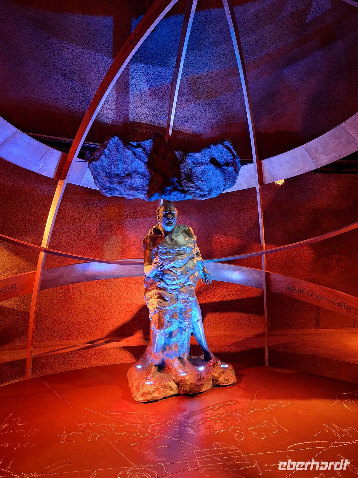Engelberg verabschiedet sich von uns leider mit dicken Regenwolken. Wir fahren hinaus aus dem Engelbergertal bis zum Vierwaldstättersee. Entlang der Ufer des Sees führt uns unsere Route zunächst über die Gotthard Autobahn bis nach Altdorf. In dem hübschen Ort legen wir einen Stopp ein. Wir besuchen das Tell-Denkmals, welches Wilhelm Tell mit seinem Sohn Walter zeigt. Diese stehen vor einem mittelalterlichen Wohnturm. An dieser Stelle soll sich die berühmte Apfelschuss-Szene, welche aus der Tell-Geschichte bekannt ist, zugetragen haben. Bei einem kurzen Rundgang sehen wir das Tellspielhaus und das Zeughaus von Altdorf. Das Tell-Spielhaus ist heute das Theater vom Kanton Uri und aller 4 Jahre wird das Stück „Wilhelm Tell“ von Friedrich Schiller im Schwyzerdeutsch aufgeführt. Anschließend reisen wir über die alte Gotthardpassstraße weiter bis zur Teufelsschlucht. Auch hier machen wir einen Fotostopp. Wir bestaunen die Steinbrücke, die die Urner bereits im Mittelalter gebaut haben. Die Sage berichtet, dass die Urner Bevölkerung für den Bau der Brücke den Teufel um Unterstützung gebeten haben soll. Als Lohn verlangte dieser das erste Lebewesen, welches über die neu erbaute Brücke gehen würde. Er dachte, dass ein schönes junges Mädchen über die Brücke geht. Die Urner schickten aber einen Ziegenbock über die Brücke. In seiner Wut warf der Teufel einen riesigen Stein in die Schöllenschlucht den Urnern hinterher.