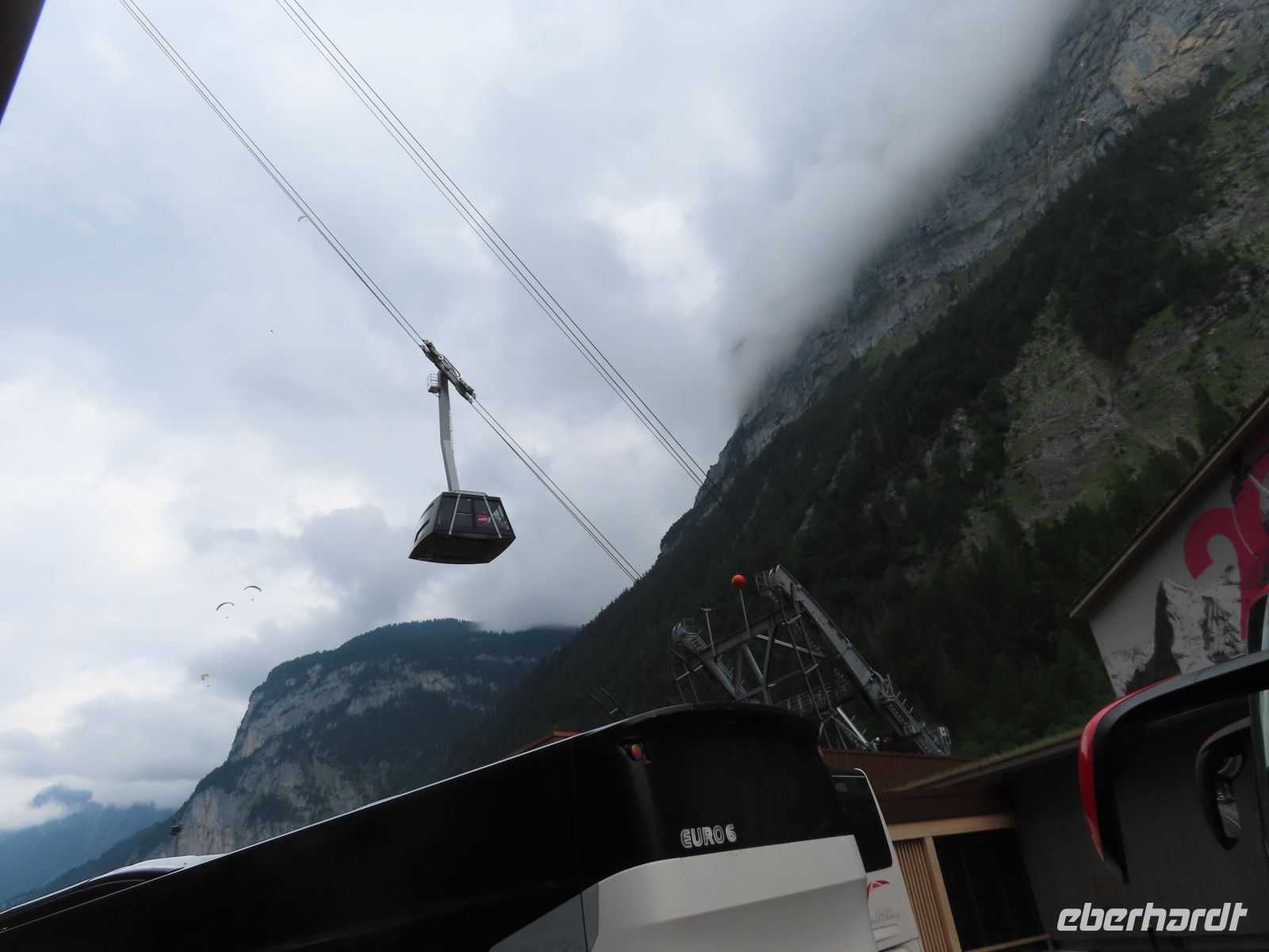 Heute steht ein besonderer Ausflug auf dem Programm: Es geht auf das Schilthorn. Zunächst reisen wir mit dem Bus durch das Lauterbrunnental hinauf nach Stechelberg. Nun erwartet uns alle eine spannende Fahrt mit drei neuen Kabinenbahnen auf das Schilthorn. Die Seilbahnen wurden und werden seit 2022 während des laufenden Betriebes der bestehenden Bahn parallel erbaut. Die im Dezember 2024 eröffnete Bahn von Stechelberg nach Mürren ist die steilste Seilbahn der Welt mit 159,4 % maximaler Steigung. In der Pendelbahn überwinden wir 775 Meter Höhendifferenz und einer Steckenlänge von 1.193 Metern erreichen Mürren nach nur 4 Minuten Fahrzeit. In der im März 2025 eröffneten Funifor-Bahn geht es über einen Höhenunterschied von 1.035 Metern und einer Streckenlänge von 2.774 Metern in nur 5 Minuten Fahrzeit weiter zur Station Birg in 2.677 Metern Höhe. Diese Bahn, ist wie die Bahn zum Gipfel eine herausragende Neuerung im Seilbahnbau. Die Großkabine hängt zwischen zwei Tragseilen und hat ein neu entwickeltes Antriebssystem, welches eine hohe Windstabilität, Sicherheit und Flexibilität garantiert. Die beiden Kabinen haben eigene Antriebe und können unabhängig voneinander betrieben werden. Wir legen eine Pause und genießen die Aussicht, die uns zumindest einen kleinen Teil der Berner Alpen gewährt. Der Skywalk, die Aussichtsterrasse ragt über dem Abgrund einer Felswand mit Blick auf das Dreigestirn Eiger, Mönch und Jungfrau und zum Breithorn. Anschließend wagen die mutigsten Gäste von uns auf den Thrillwalk. Dieser Steg führt über Gitter und Glasböden kombiniert mit einem Seil zum Balancieren und einem Schlauch aus Stahlnetzen entlang der steilen Felswand unterhalb der Aussichtsterrasse. In schwindelerregender Höhe an der Felswand führt Walk über einen tiefen Abgrund. Nun erwartet uns die nächste spektakuläre Seilbahn, ebenfalls eine Funifor-Bahn, welche im März 2025 eröffnet wurde. Sie verläuft zwischen Birg und dem Schilthorn über eine Mulde ohne Pfeiler auf einer Länge von 1.751 Metern und überwindet während der 5-minütigen Fahrt auf den Gipfel in 2.970 Metern Höhe eine Höhendifferenz von 283 Metern. Wir sind beeindruckt von dieser Meisterleistung der Seilbahnbauer. Auf der großen Aussichtsterrasse können wir leider nur wenige Teile des einmaligen 360° Panoramas genießen, die die Gipfel in den Wolken stecken. Wir sehen Teile der Berner Alpen zum Beispiel die Tschingelhörner und kurz die Jungfrau. Natürlich schauen wir in die Spy World, welche an den James-Bond-Film „Im Geheimdienst Ihrer Majestät“ erinnert. Das Schilthorn und Mürren waren 1968 Schauplatz für die Dreharbeiten dieses Filmes. Die kleine Ausstellung ist sehr kurzweilig und interessant gestaltet. Nach genügend Zeit auf dem Berg bringen uns die Seilbahnen nach Mürren und Stechelberg zurück ins Tal. Mit unserem Bus führt uns die Tour vorbei am Staubachfall, den bereits Johann Wolfgang von Goethe in einem Gedicht beschrieb, nach Interlaken zurück. Den Nachmittag gestalten wir nach unseren Wünschen in Interlaken.