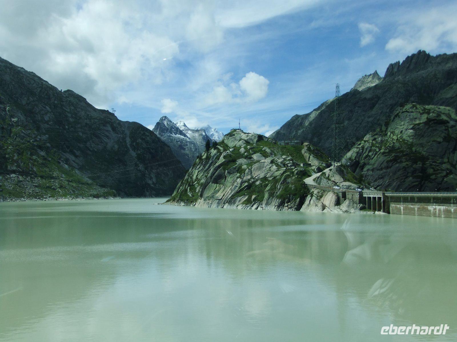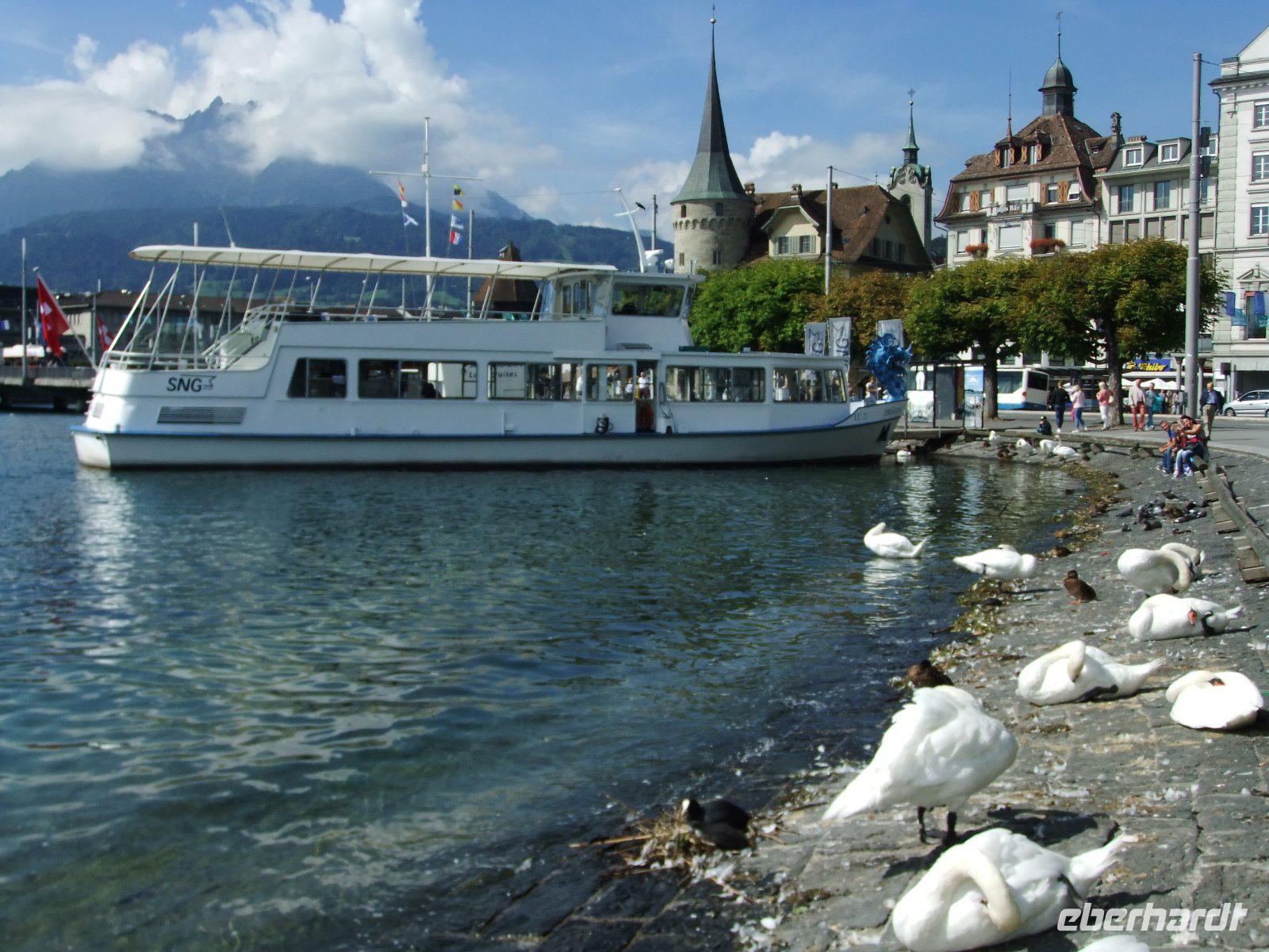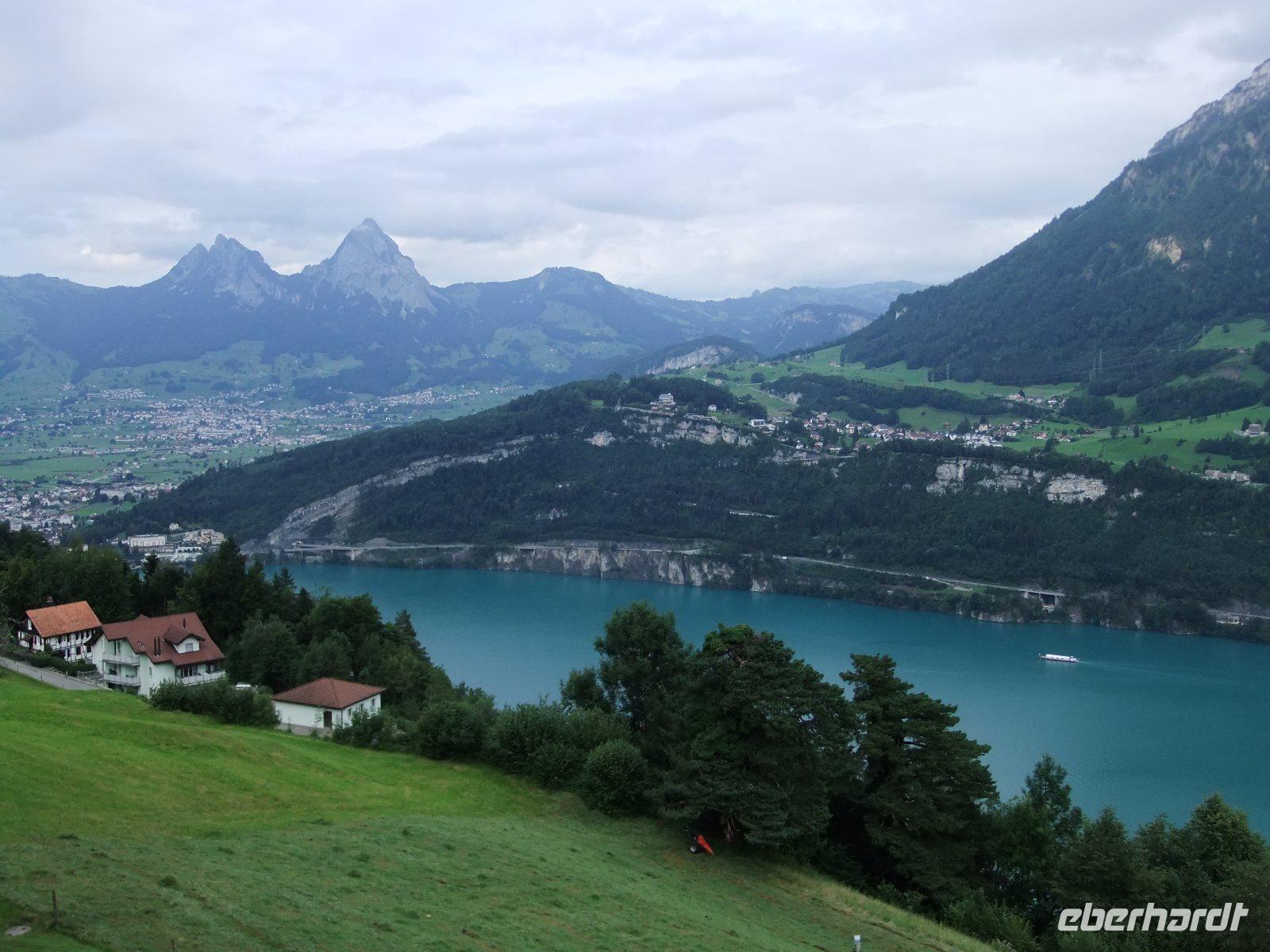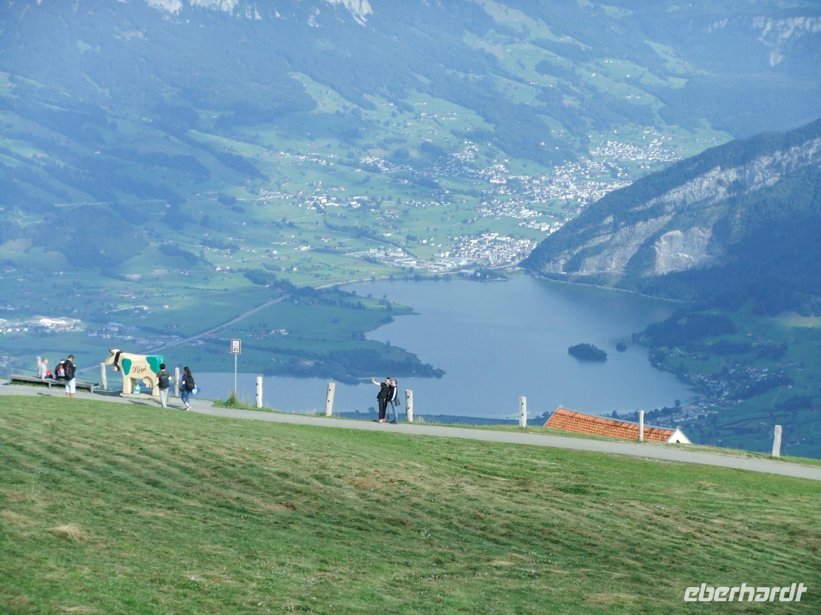 Die vergangen beiden Tage hat es in Deutschland fast nur geregnet. Deshalb sind wohl alle Eberhardt-Gäste, die heute mit mir und Chauffeur Jürgen in die Schweiz fahren wollen, froh über den regenfreien Morgen. Pünktlich 6 Uhr starten wir in Dresden. Nach drei weiteren Zustiegen ist unsere Reisegruppe in Münchberg bereits komplett. Vorbei an Nürnberg und Ulm fahren wir, teilweise allerdings schon wieder bei Regen, Richtung Bodensee. Hier verlassen wir Deutschland, durch den 6,7 km langen Pfändertunnel geht es nach Österreich. Doch nur für kurze Zeit, denn an der Grenze Lustenau reisen wir schon in die Schweiz ein. Weiter führt unsere Reise - bei endlich schönem Wetter - durch das Rheintal, dann vorbei an Walensee, Zürichsee und Schwyz. Über dem Urner See, einem Teil des Vierwaldstättersees, liegt der Ort Seelisberg. Wir erreichen ihn durch den gleichnamigen Tunnel.