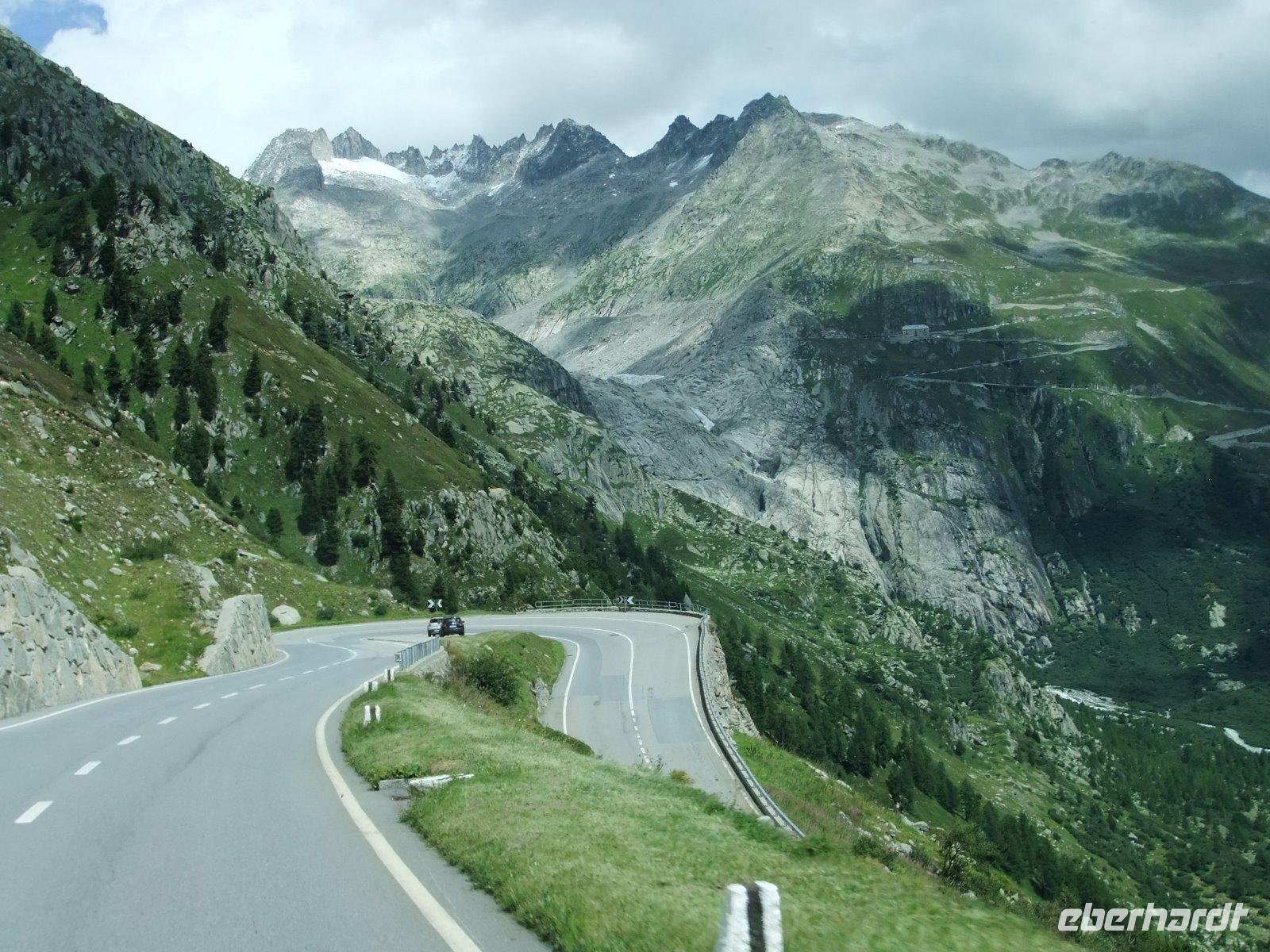 Heute nehmen wir Abschied von Leukerbad. Ein letztes Mal fahren wir hinunter ins Rhonetal. In Mörel wartet schon unser Wandergast Herr Blietsch und es geht weiter durchs Goms nach Gletsch. Nach zahlreichen Serpentinen erreichen wir den Furkapass. In 2434 Meter Höhe lassen wir uns das Mittagessen schmecken. Dann fahren wir mit immer wieder beeindruckenden Ausblicken hinunter nach Andermatt und weiter durch die Schöllenenschlucht. Wir erreichen den Vierwaldstättersee. Bei Fahrt auf der Axenstraße sehen wir u.a. die bekannte Rütli-Wiese und den Schillerstein.
