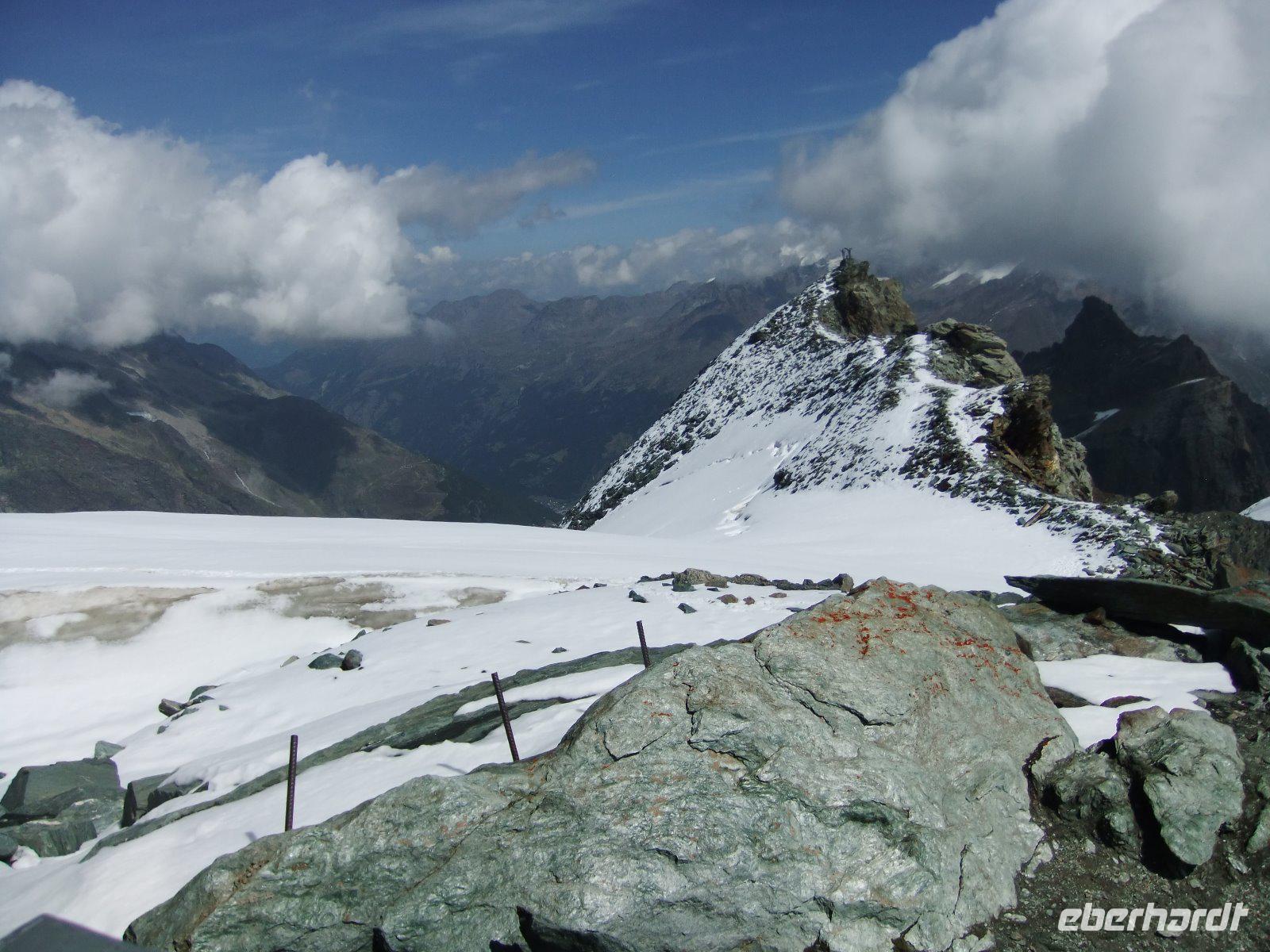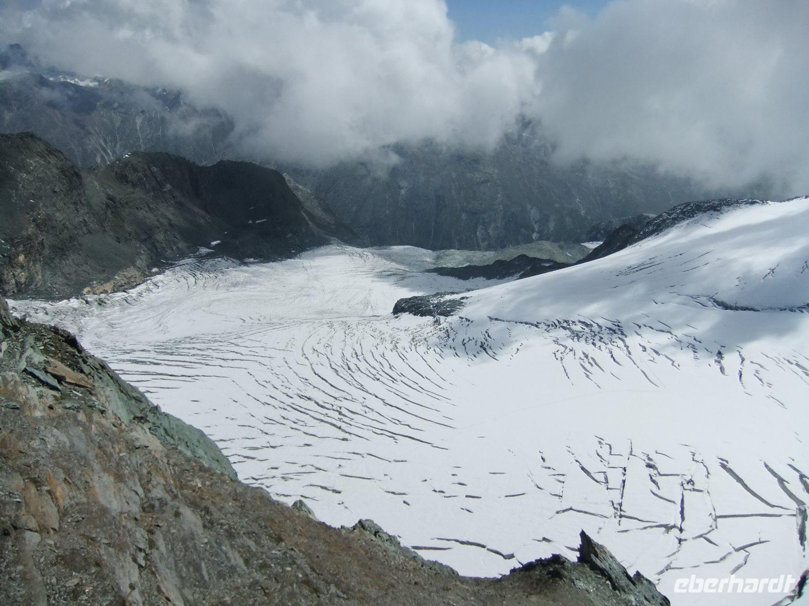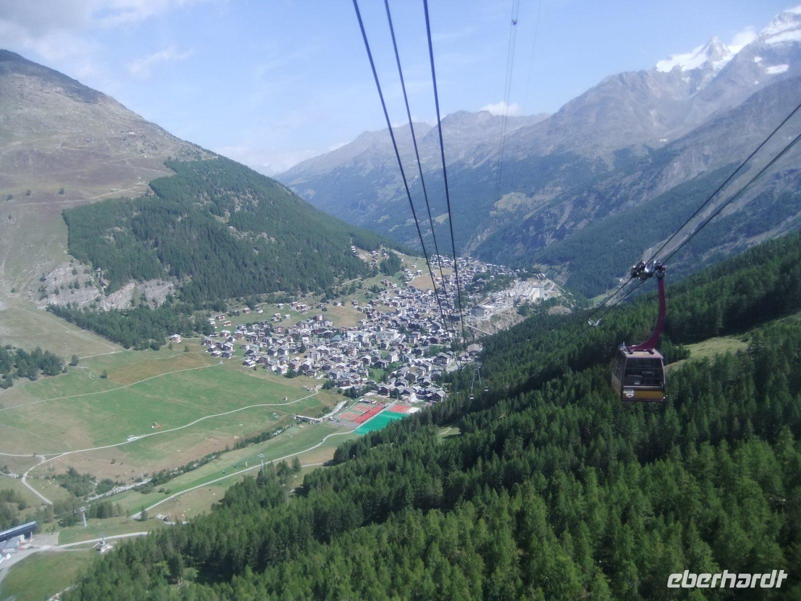 Heute geht es mit dem Bus zunächst nach Visp. Von hier fahren wir bis Stalden durch das Vispertal, dann biegen wir ins Saastal ein. Es ist bekannt durch die Ski-Orte Saas-Grund, Saas-Almagell und Saas-Fee. Letzterer ist unser Ziel. Hier wollen wir hoch hinaus. Dazu gibt es viele Möglichkeiten, wir haben uns für den Mittalallalin entschieden. Vom Busparkplatz laufen wir über die Saaser Vispa zur Talstation. Mit der Kabinenbahn geht es in 10 Minuten hinauf zur Station Morenia und dann weiter bis Felskinn. Hier steigen wir in die Metroalpin. Dabei handelt es sich um die höchste unterirdische Standseilbahn der Welt. In 4 Minuten bringt sie uns zum Allalin auf eine Höhe von 3500 m. Bei strahlendem Sonnenschein genießen wir den Blick auf das Allalinhorn und viele weitere Berge der Schweizer Alpen. Wir machen einen kleinen Spaziergang im Schnee, beobachten die Schneeraupen und schauen auf die dicken Eisgletscher. Die meisten Gäste drehen eine Runde mit dem Restaurant und besuchen den Eispavillon. Es bleibt auch noch Zeit für ein Sonnenbad im Liegestuhl auf der Aussichtsterrasse.