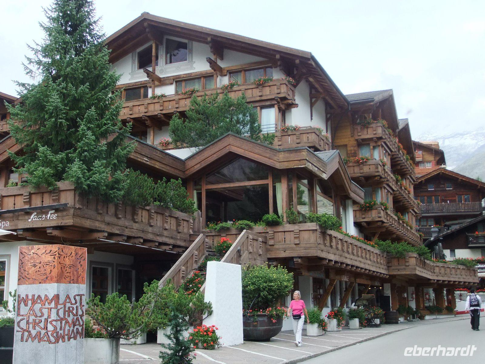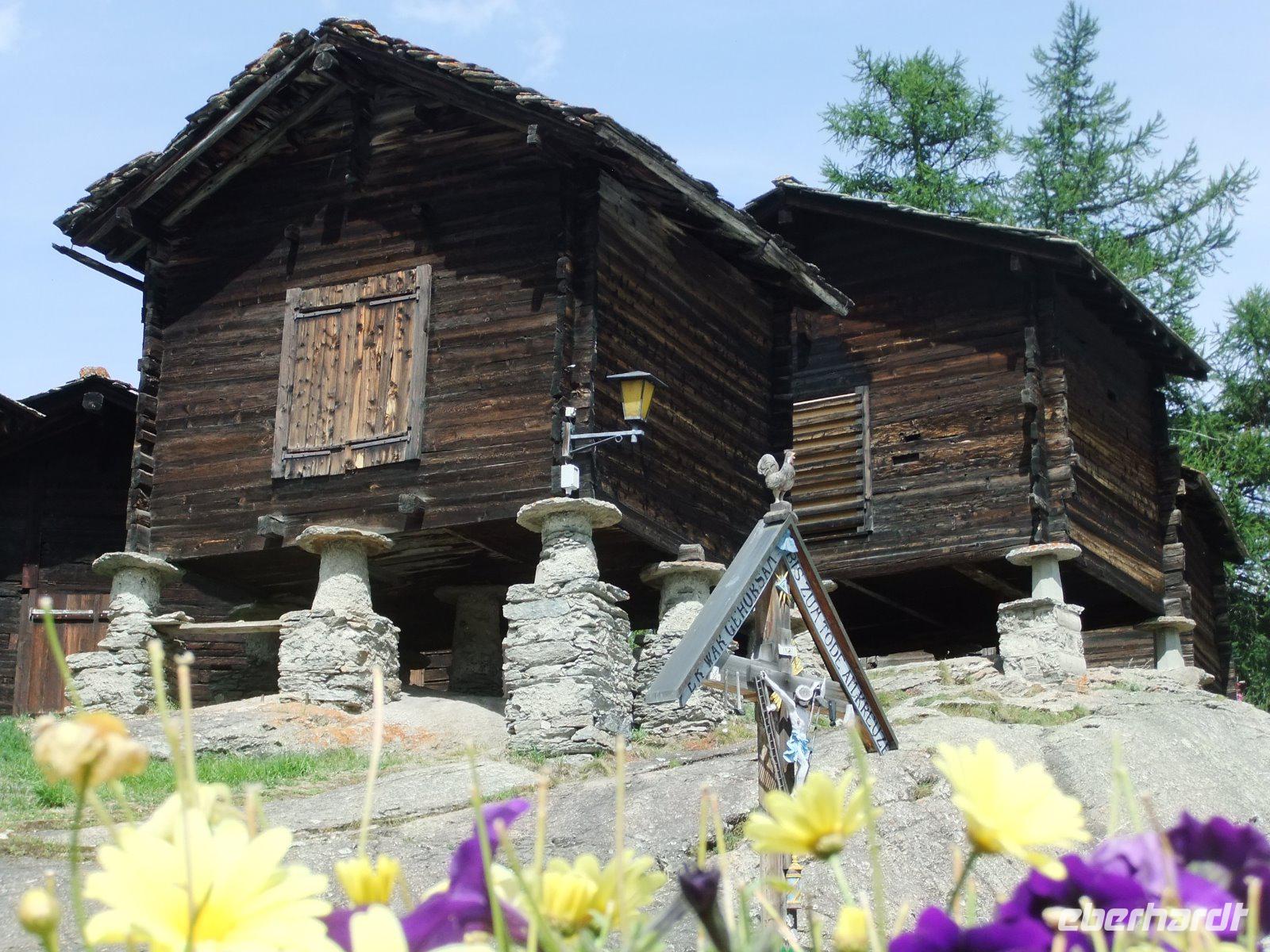 Wieder unten in Saas-Fee schauen wir uns noch die typischen Walliser Holzspeicher mit den Mäuseplatten an. Einige Gäste spazieren zum Friedhof, wo sich das Grab des Schriftstellers Carl Zuckmayer befindet.