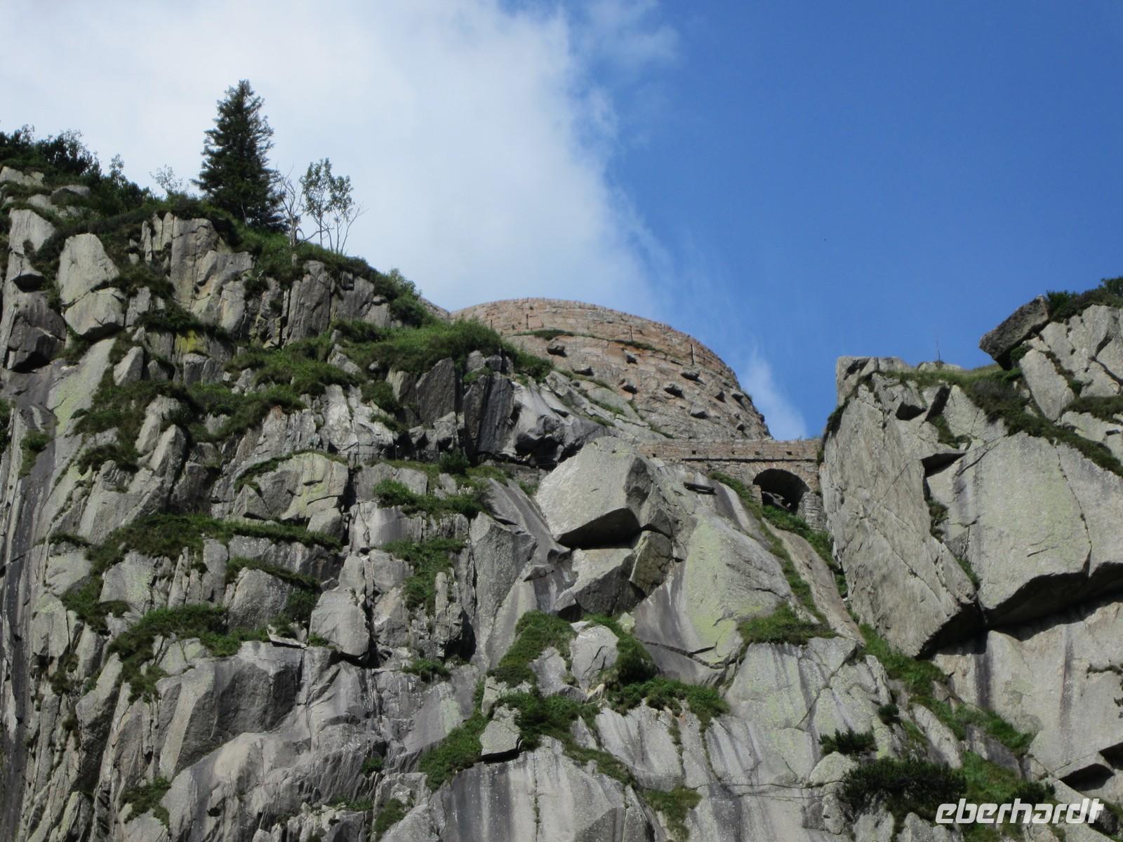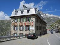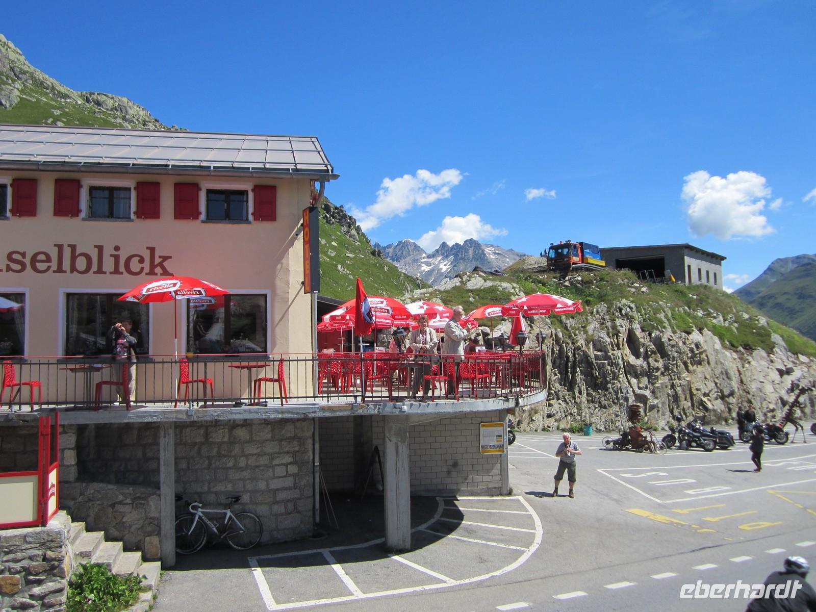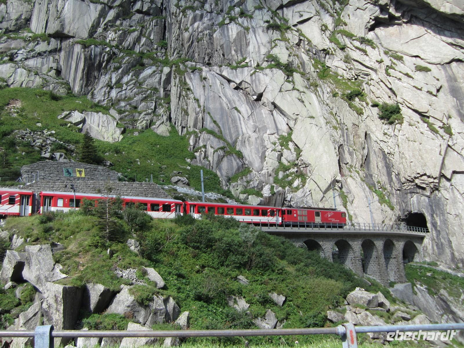 Bevor wir dort ankommen, halten wir an der 1956 eröffneten Teufelsbrücke an der wir den 30 m hohen Wasserfall der Reuss überqueren. Nach unserer Pause fahren wir durch Andermatt. Die Baukräne zeugen von der Investion des ägyptische Milliardär, Samih Sawiris, der ein unwirtliches Schweizer Alpental in ein luxuriöses Ferienresort umwandeln will. Nach Andermatt nehmen wir mit dem Bus Anlauf um den Furkapass (2431 m) zu erklimmen.