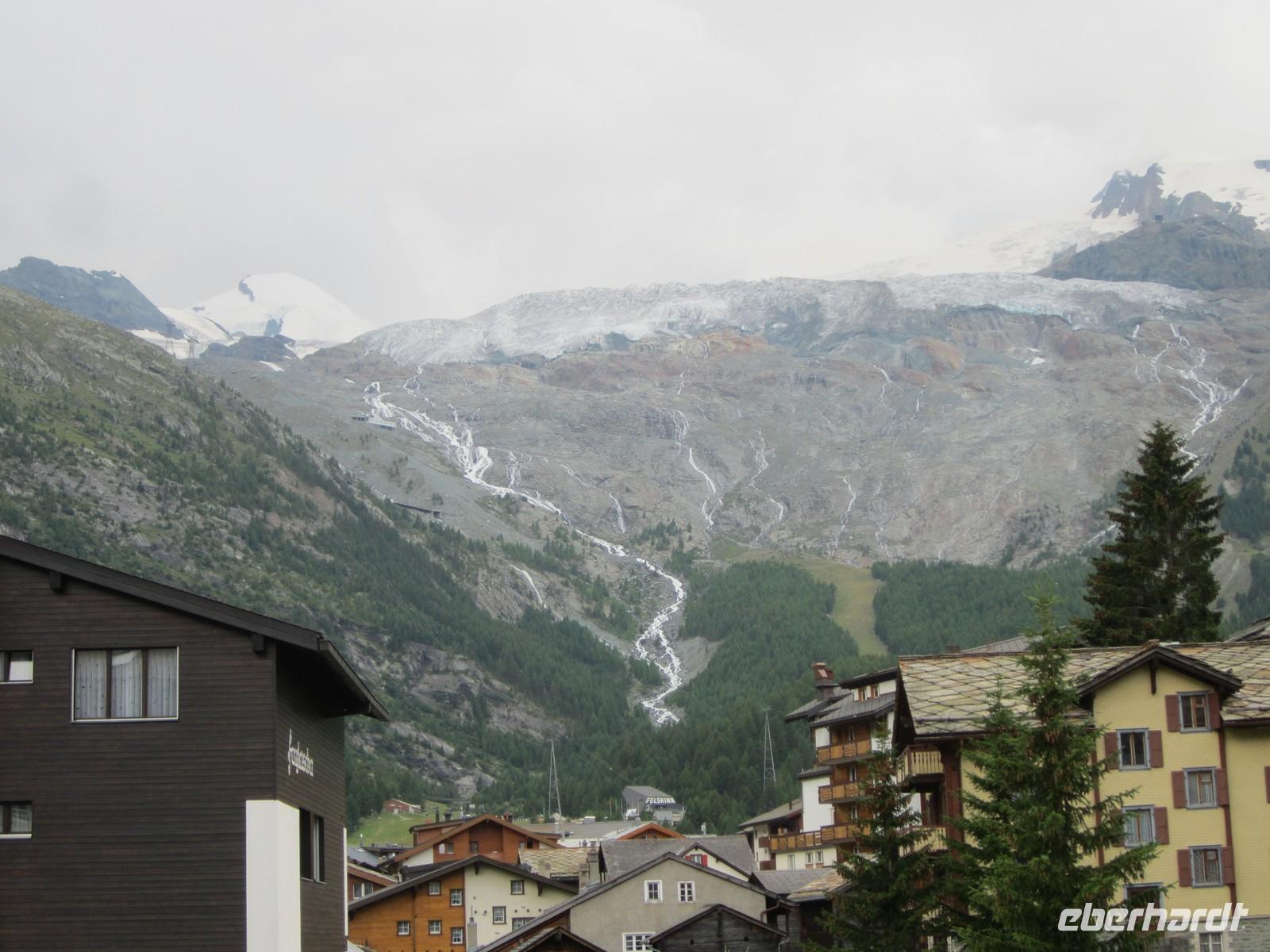 Heute steht unser Bus. Wir erkunden Saas-Fee. Herr Kalbermatten wartet vor dem Hotel auf uns und wir spazieren durch den Ort bei schönem Wetter. Dabei erfahren wir vieles zur Geschichte. Dabei erfahren wir, dass eine Reihe Namen wie z. B. der Allalin und Mischabel.