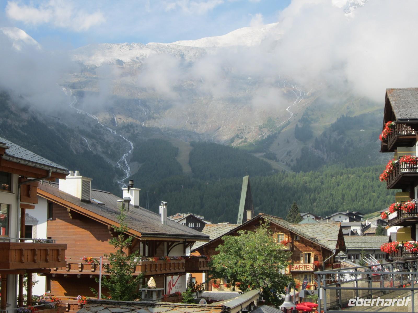 An Brig und Visp vorbei fahren wir ins Vispertal. Stalden ist der Ort, in dem wir die Killerbrücke überqueren und in das ca 20 km lange und enge Saas Tal fahren. Geben 15.45 Uhr, treffen wir auf dem Parkplatz von Saas-Fee ein. Der Ort ist autofrei und somit werden unsere Koffer zum Hotel mit einem Elektroauto gefahren. Wir laufen durch den Ort und sind nach ca 10 min am Hotel „Glacier“. Der Nachmittag bietet noch ausreichend Zeit um den Ort auf eigene Faust zu erkunden, bevor wir uns am Abend zum Abendessen treffen.