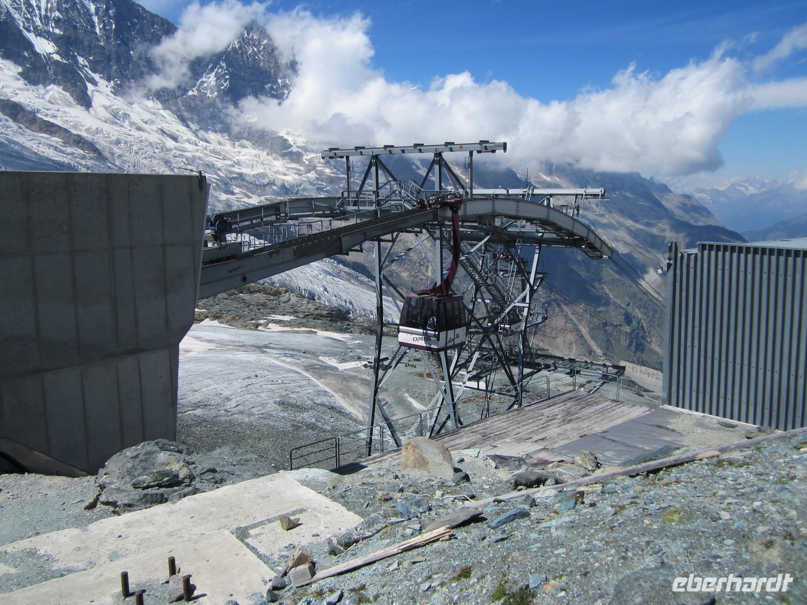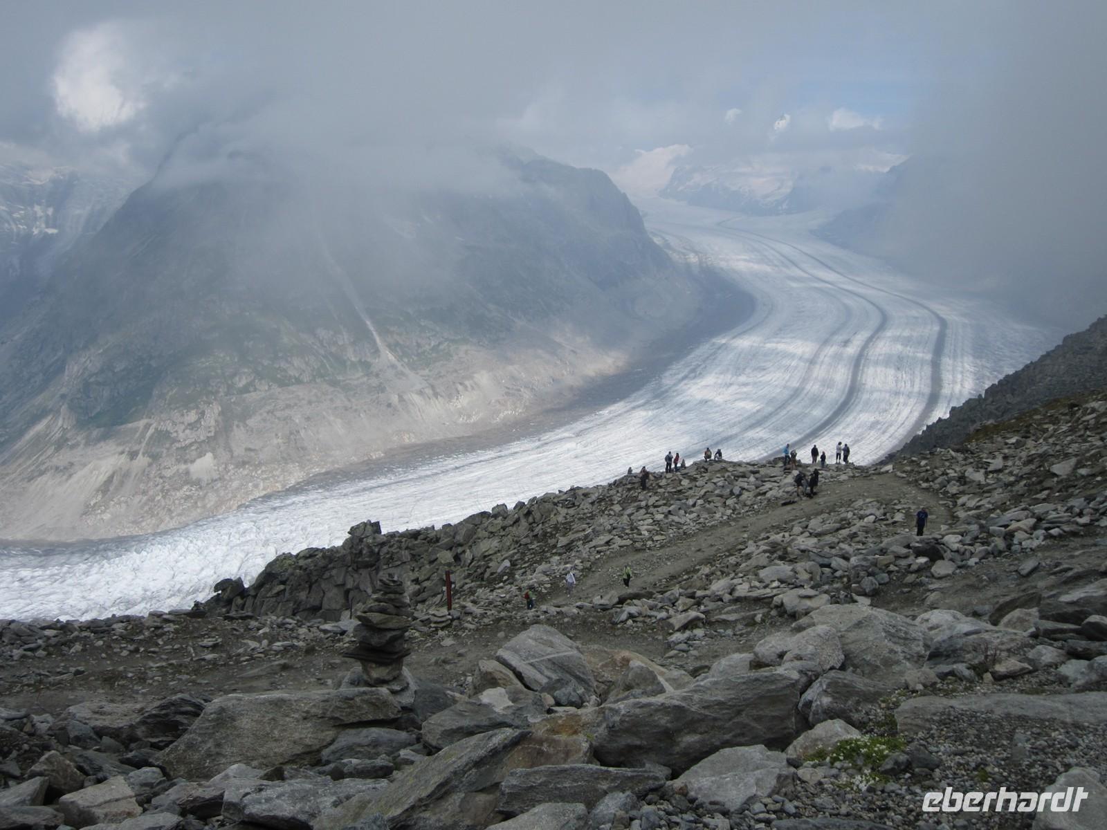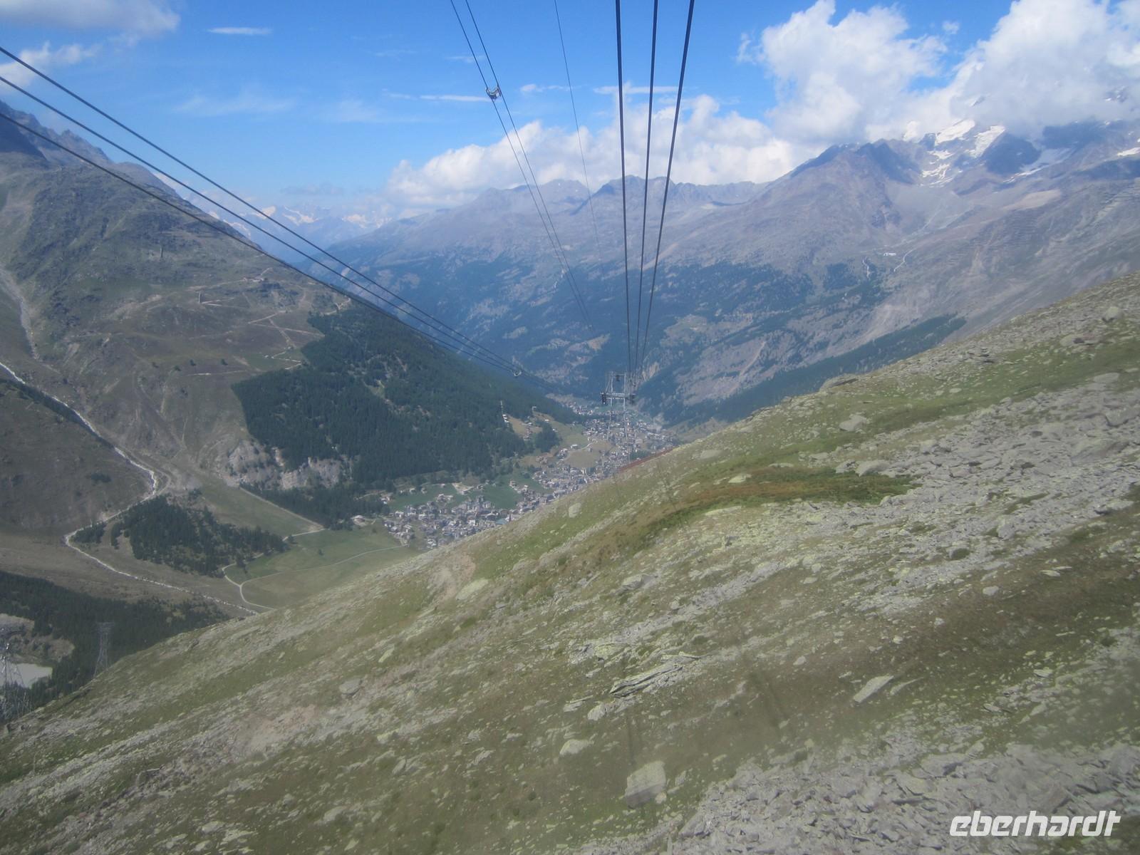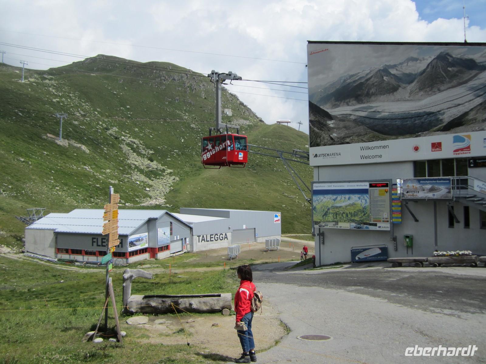 10.00 Uhr fahren wir mit der Kabinenbahn, die 100 Personen fasst, zur Fieschalp. Weiter geht es mit einer Kabinenbahn die 45 Personen aufnehmen kann zum Eggishorn. Insgesamt sind wir 20 min mit den Bahnen unterwegs.